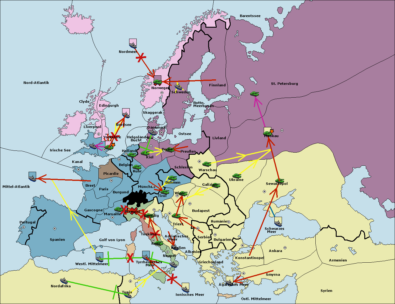 • Die Flotte in Tunis support move nach Tyrrhenisches Meer von westl. Mittelmeer. (gescheitert)