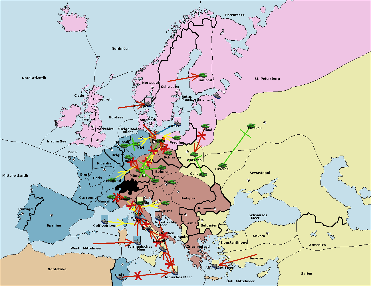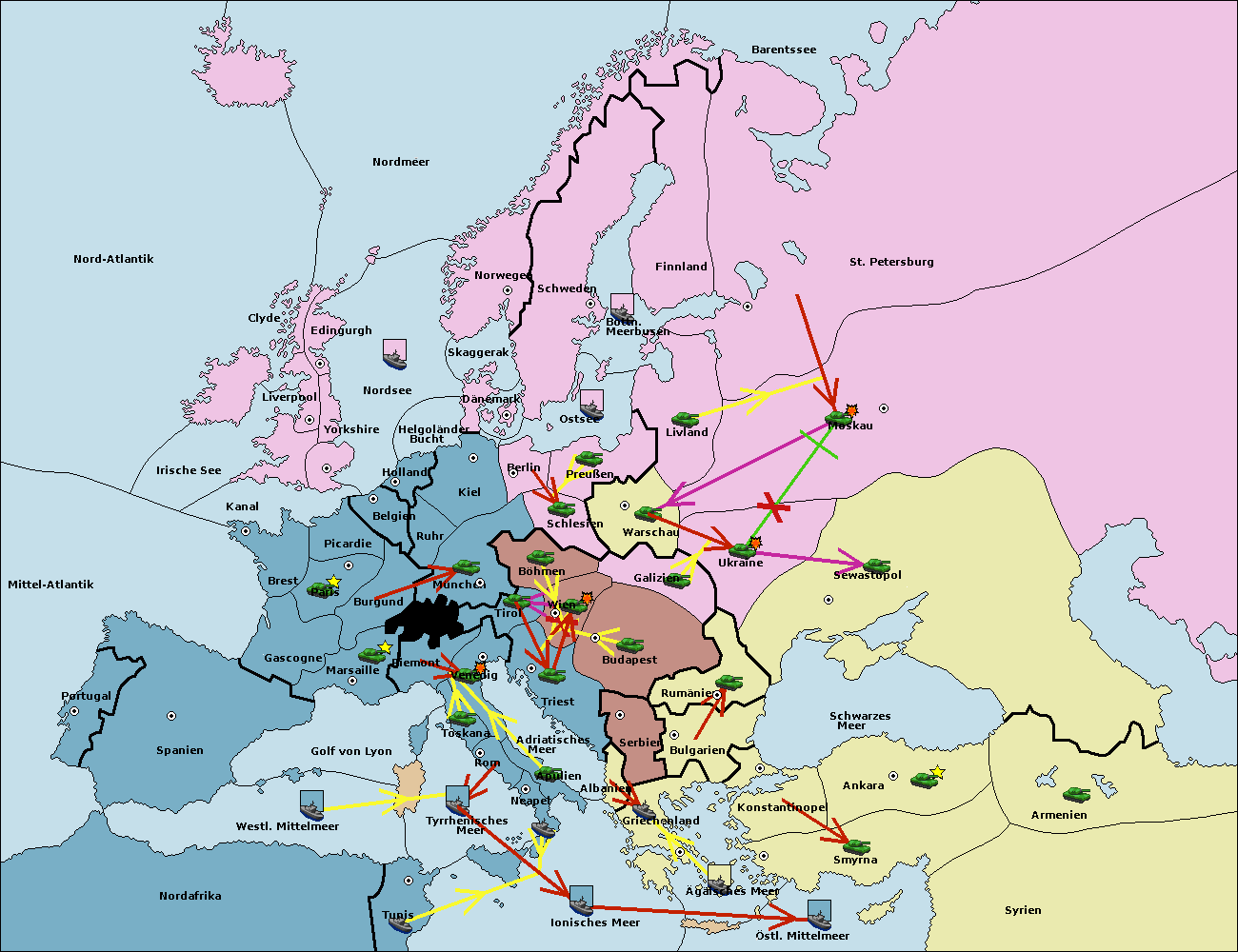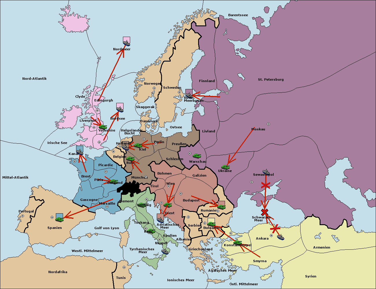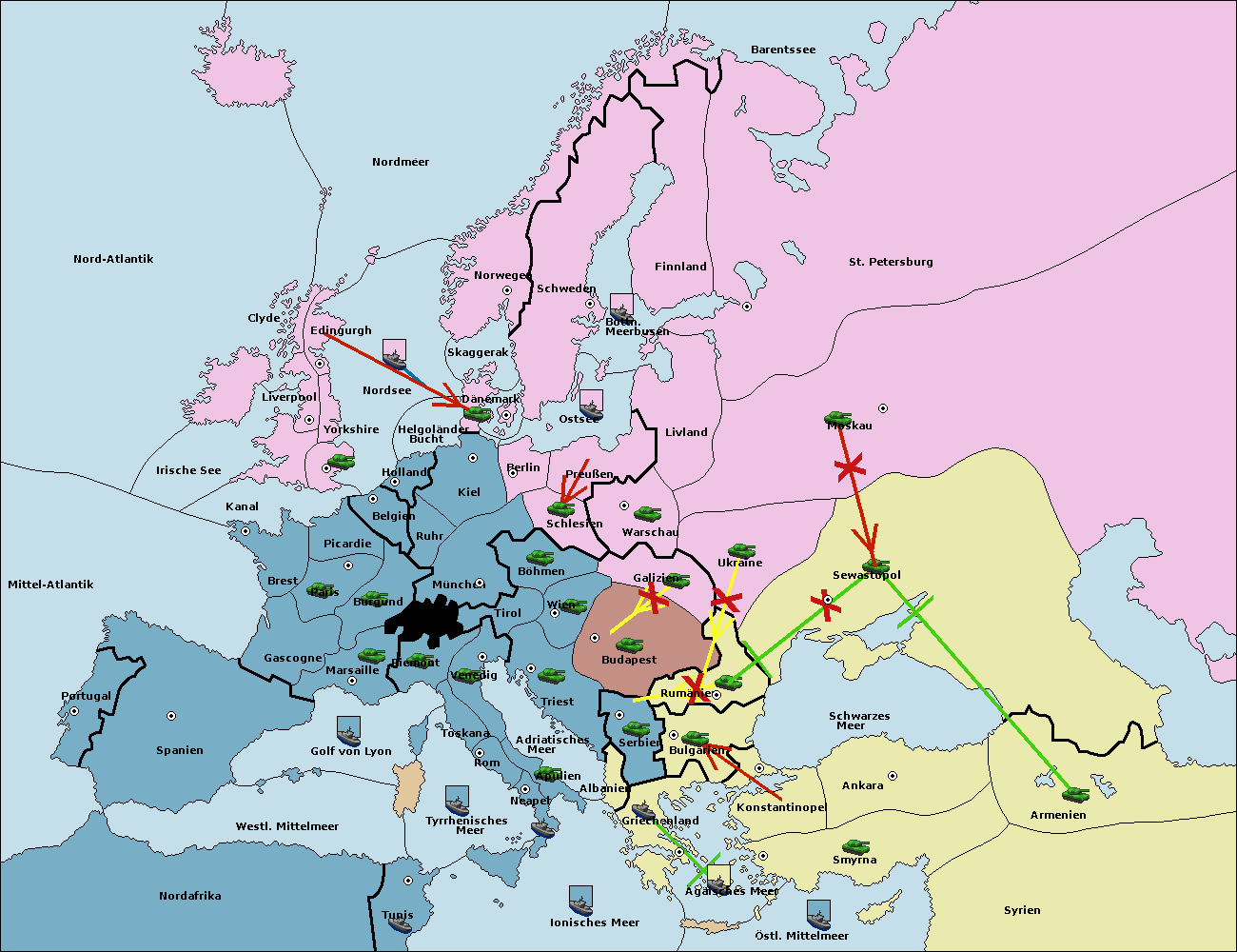 • Die Armee in Sewastopol support move nach Ukraine von Galizien. (gescheitert)