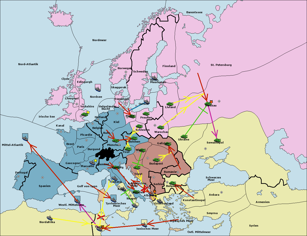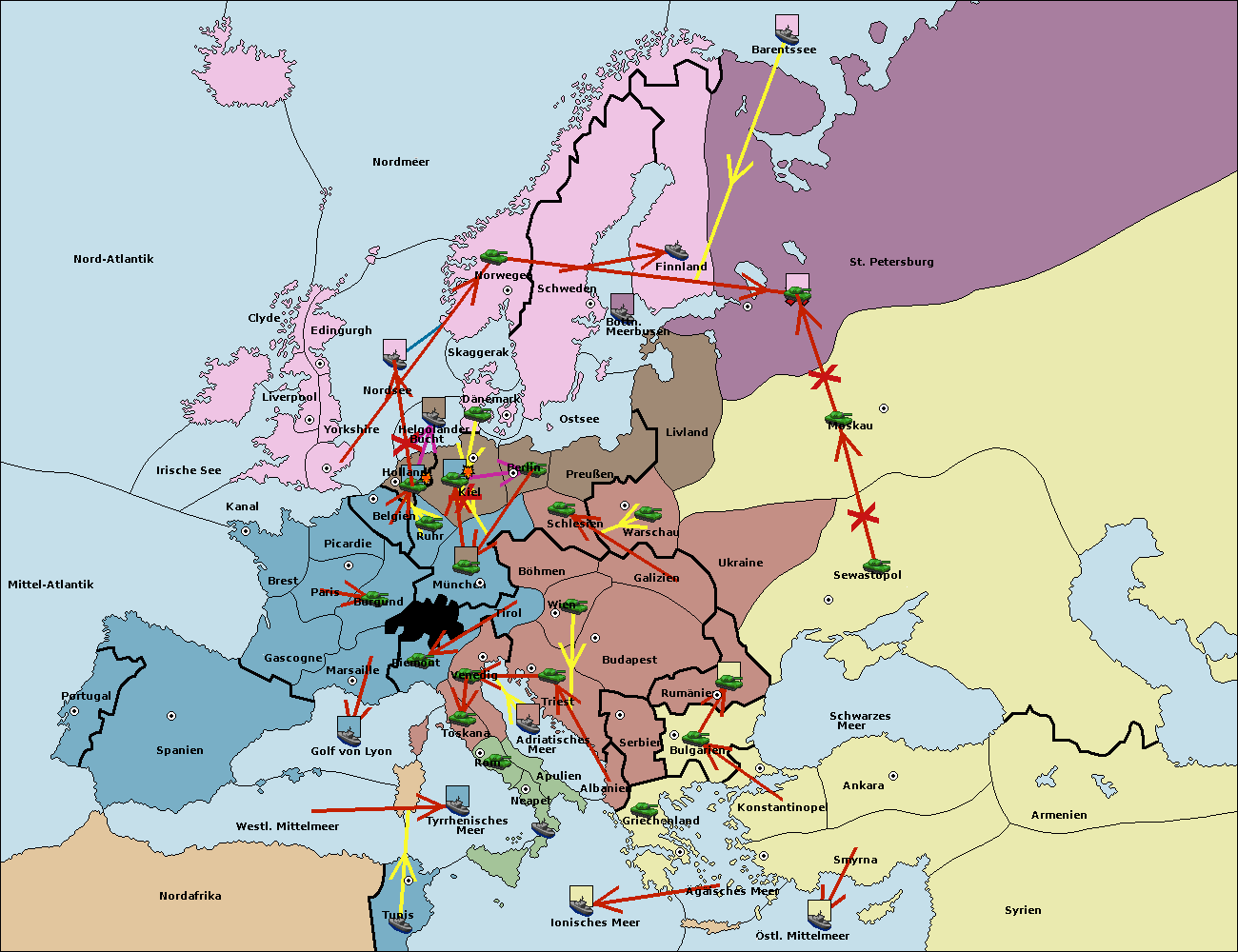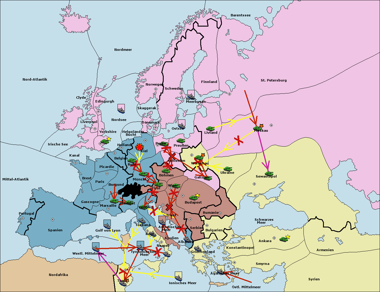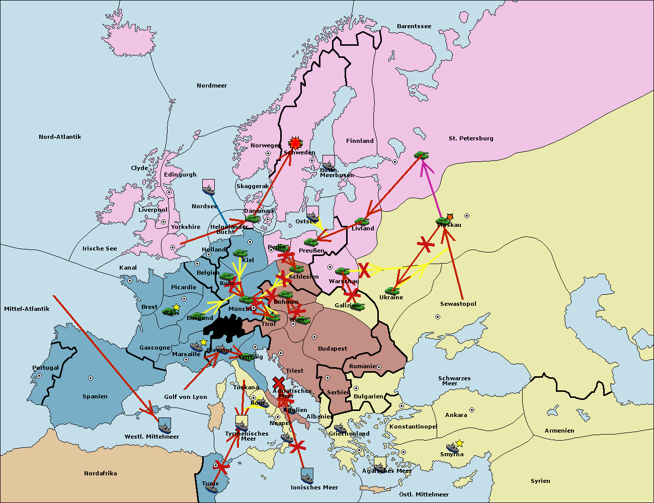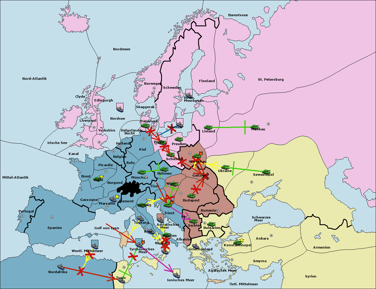 • Die Armee in Sewastopol support move nach Ukraine von Galizien. (gescheitert)