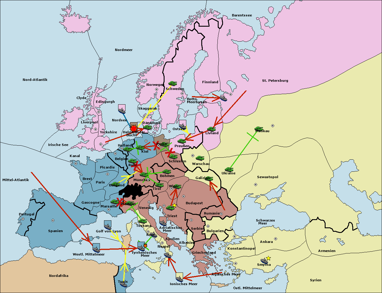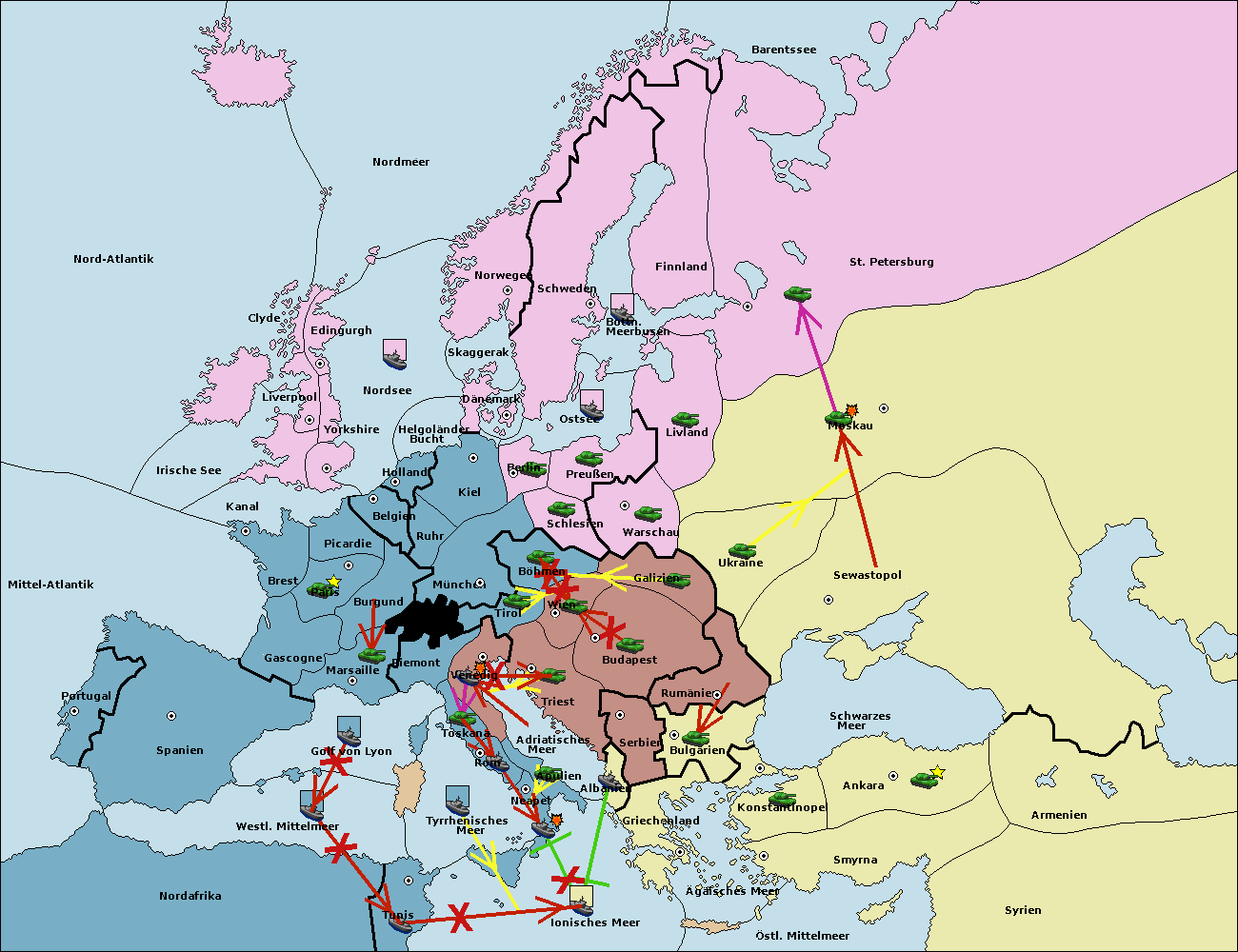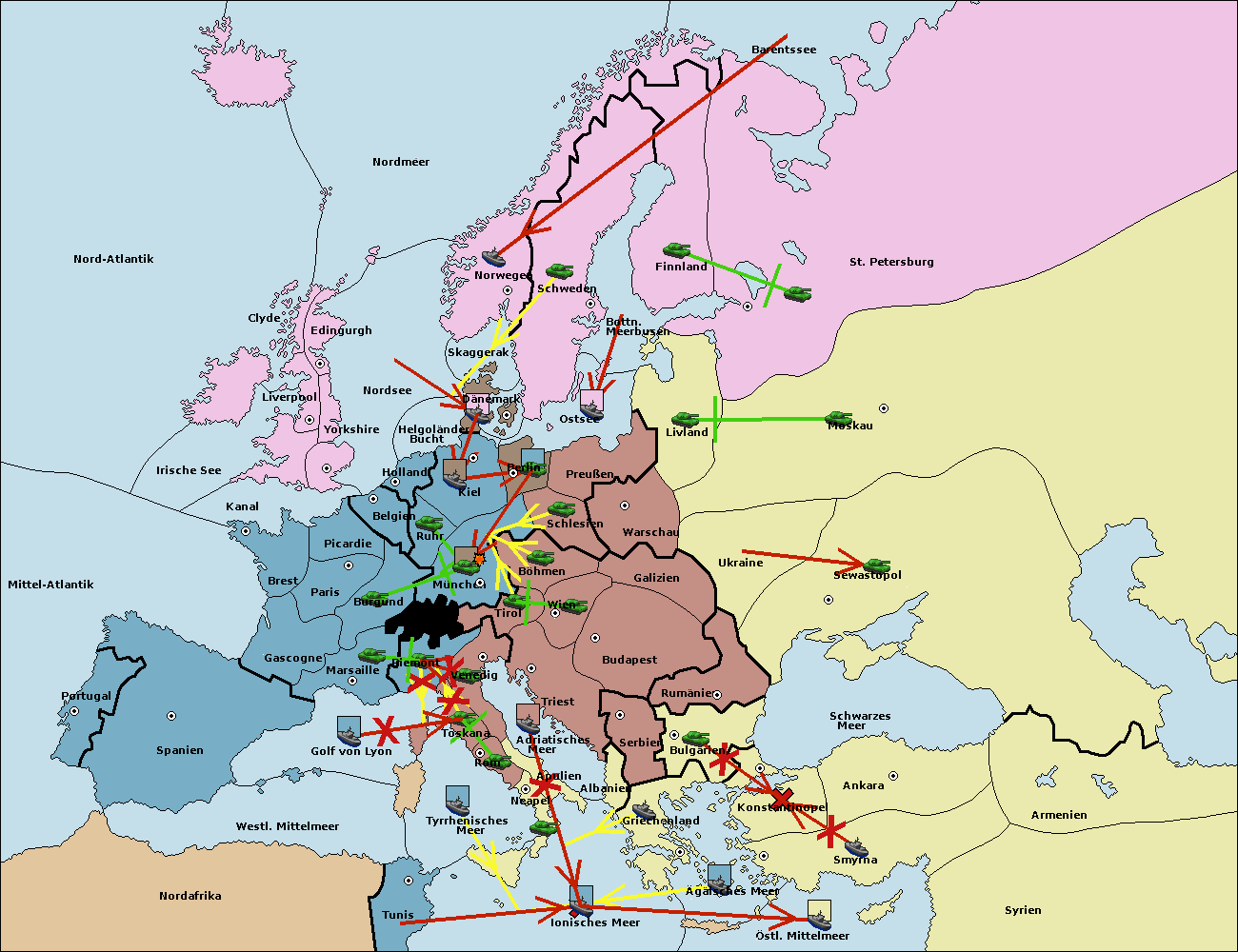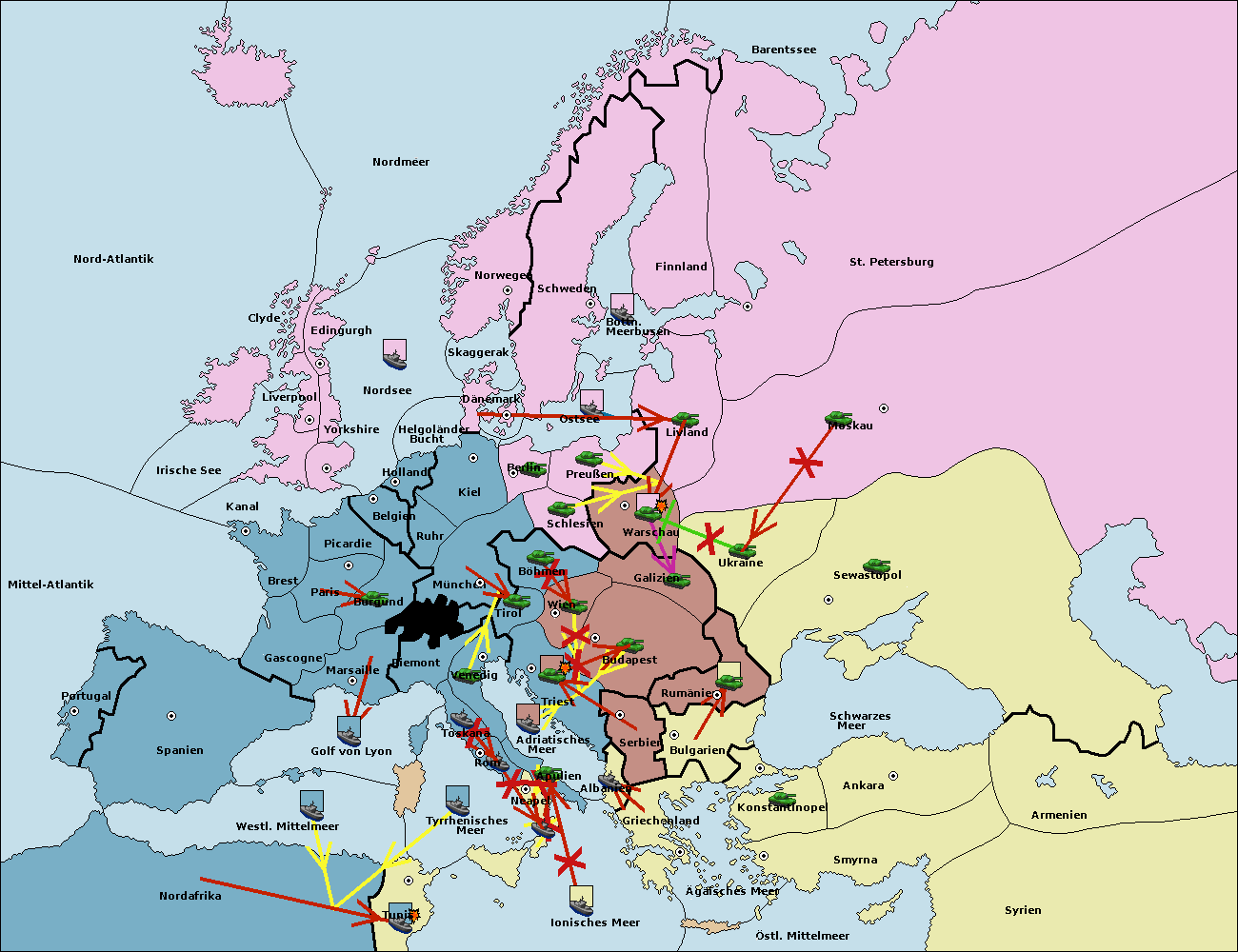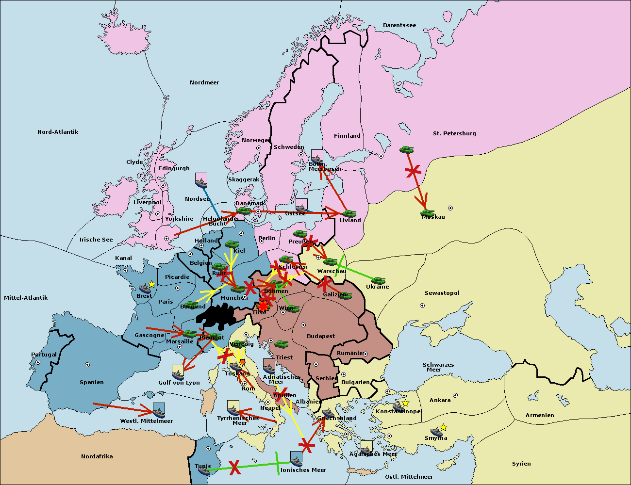• Die Armee in Triest support move nach Wien von Tirol.