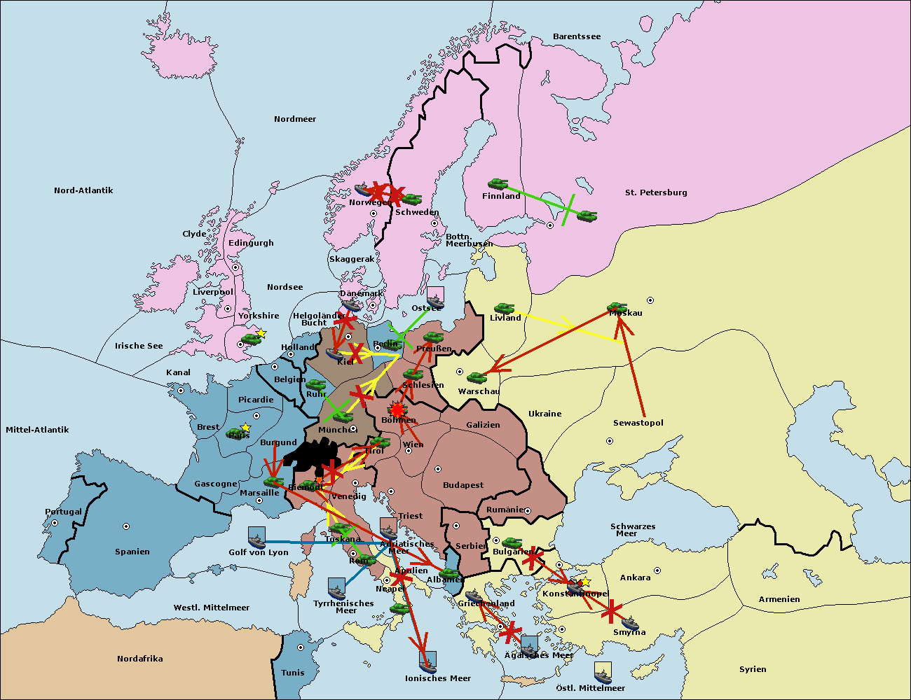 • Die Armee in Böhmen wird zerstörtFlotte in Böhmen gebaut.