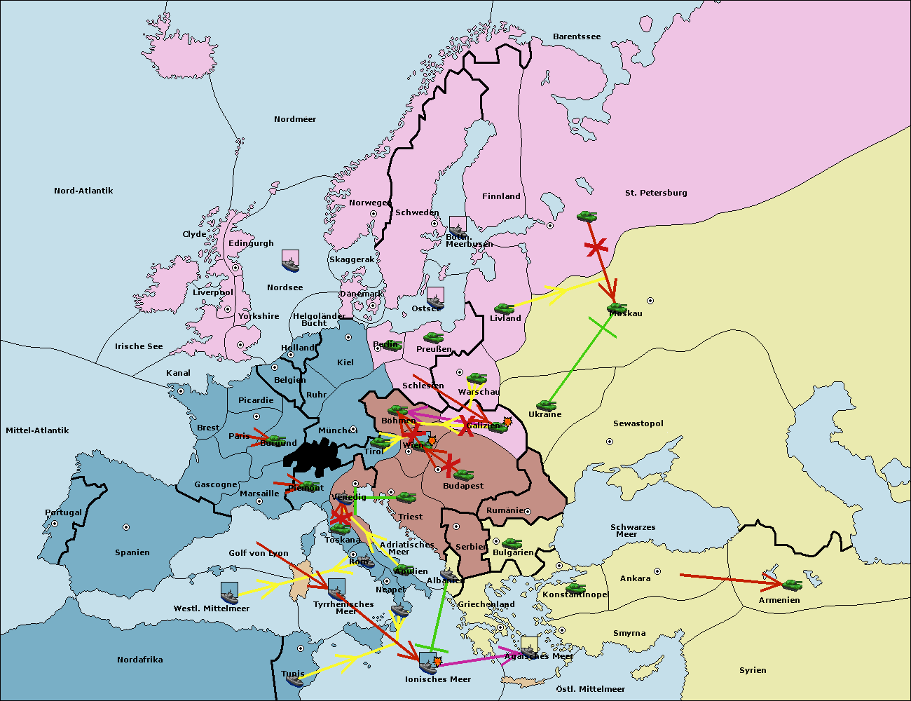 • Die Armee in Galizien support move nach Budapest von Wien. (gescheitert)