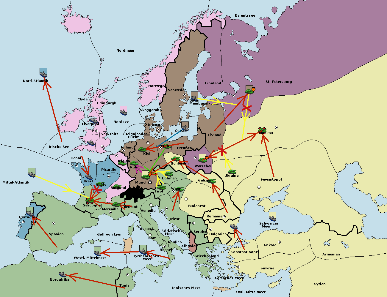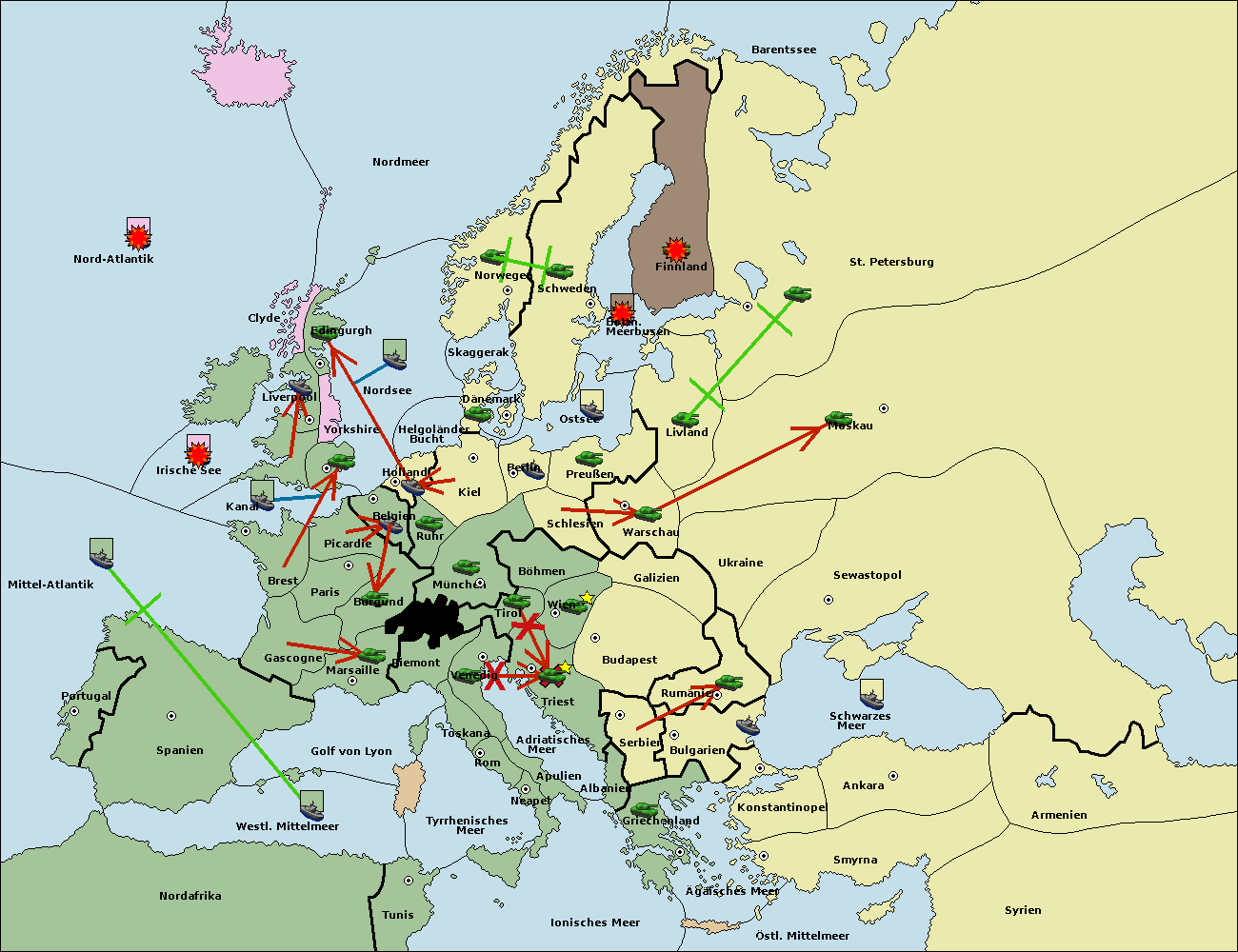 • Die Flotte in St. Petersburg (Südküste) move nach Finnland.