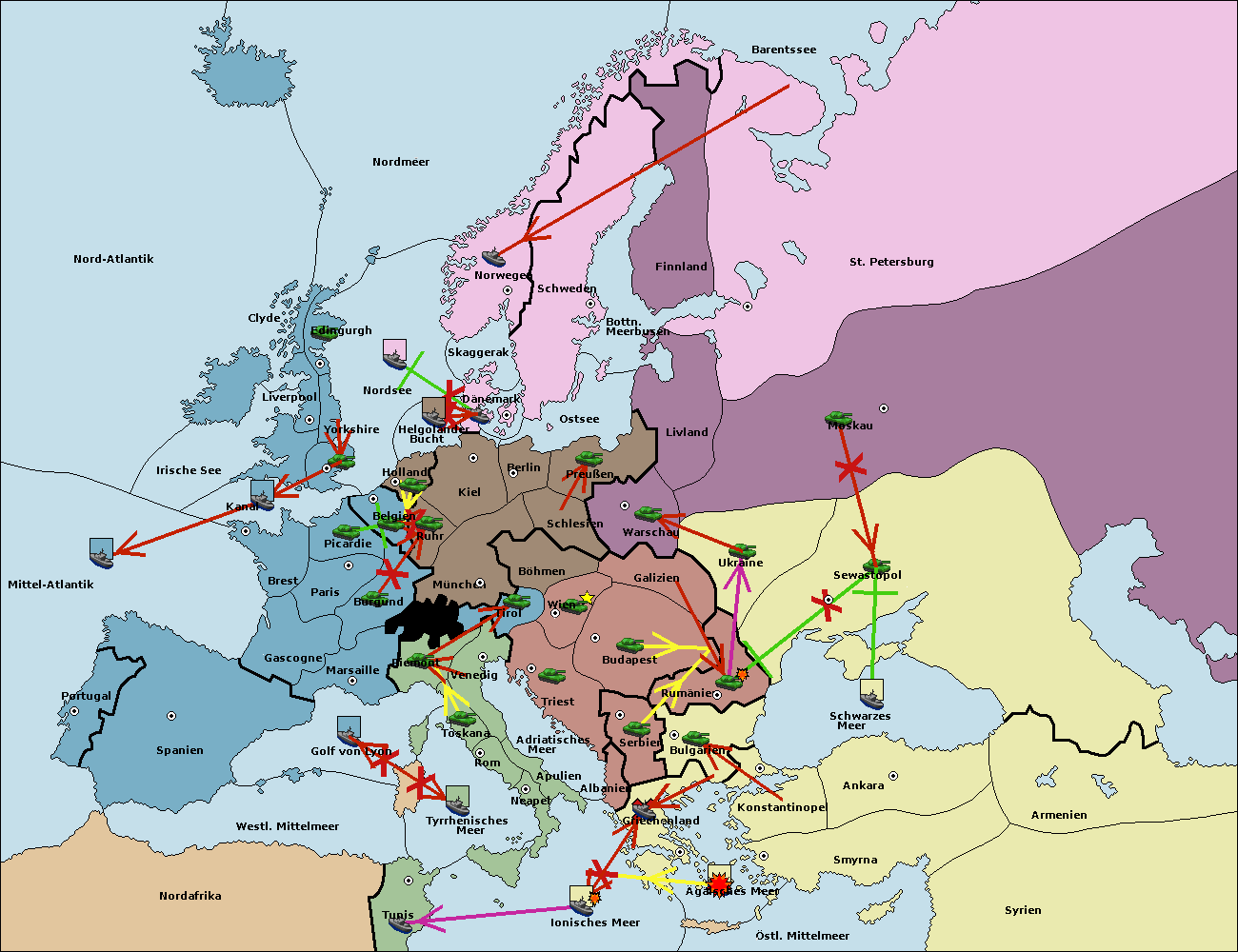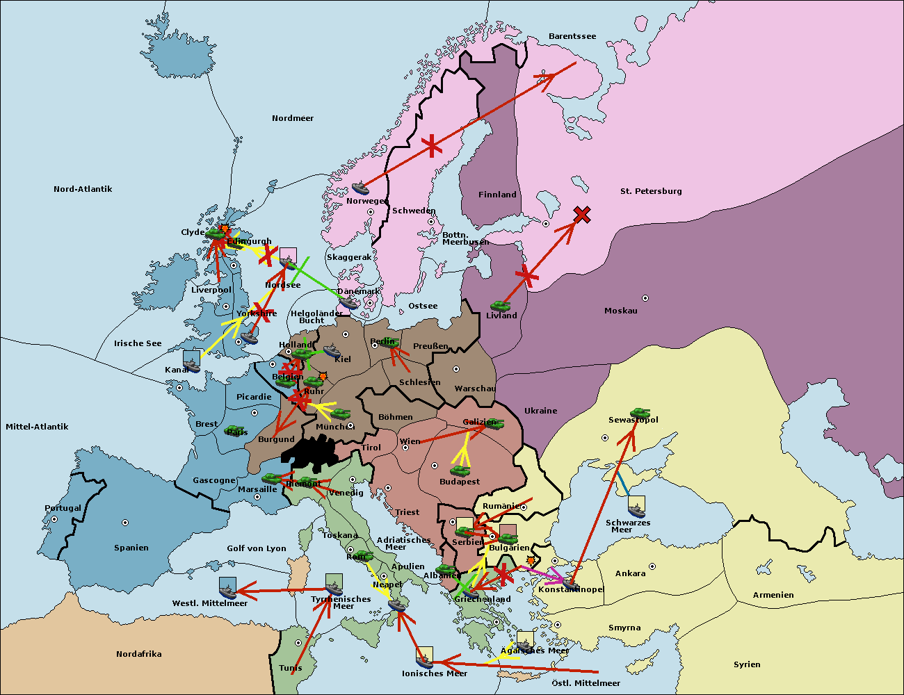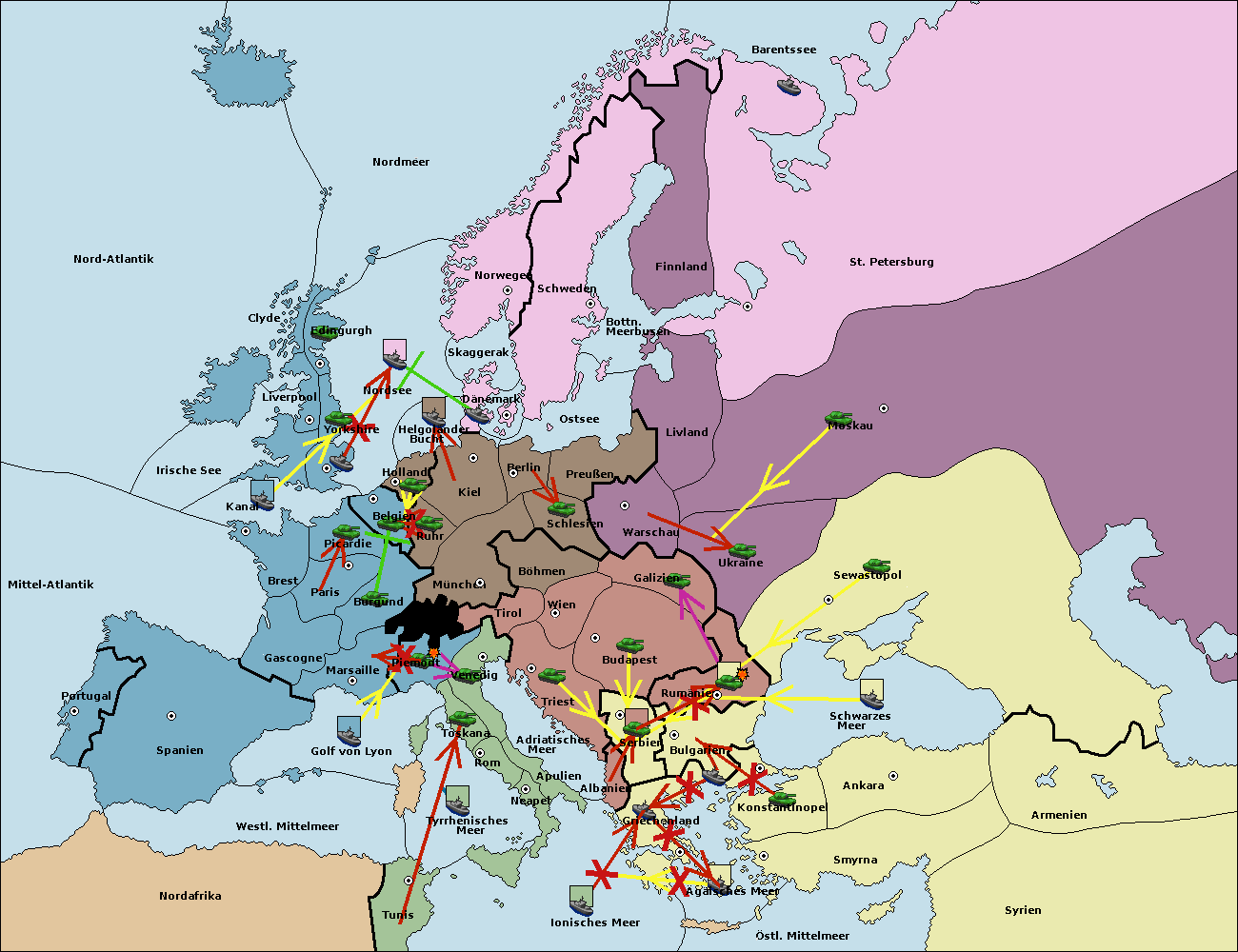 • Die Flotte in Bulgarien (Südküste) support hold nach Griechenland. (gescheitert)