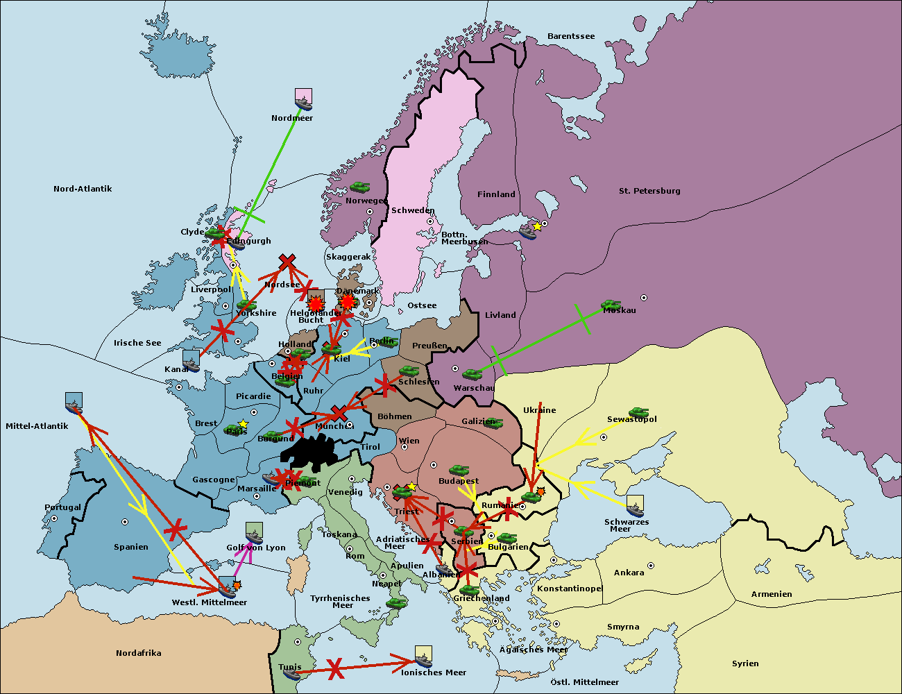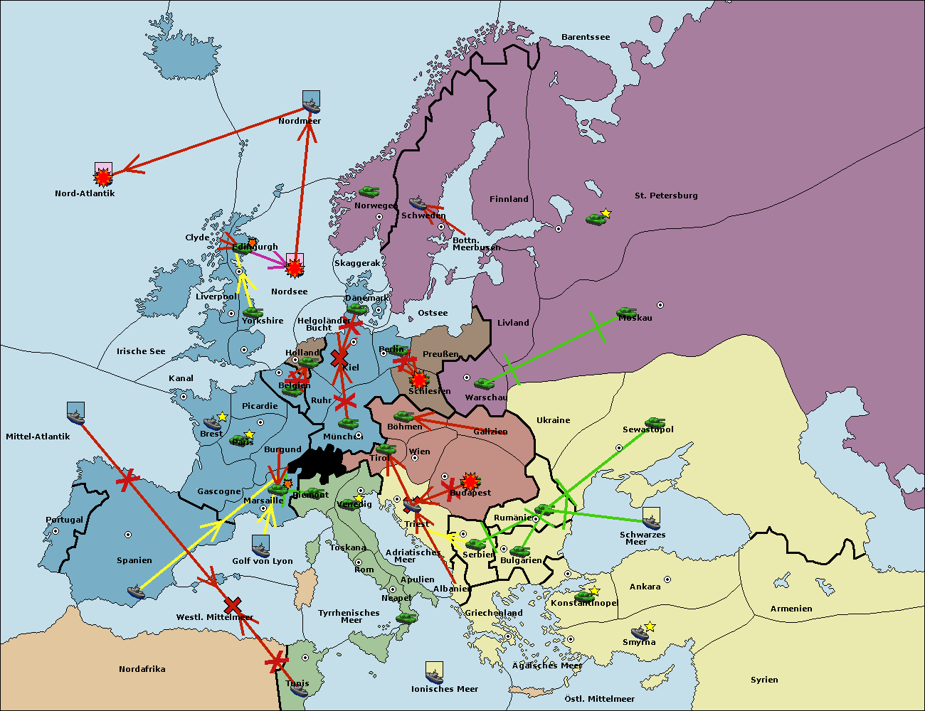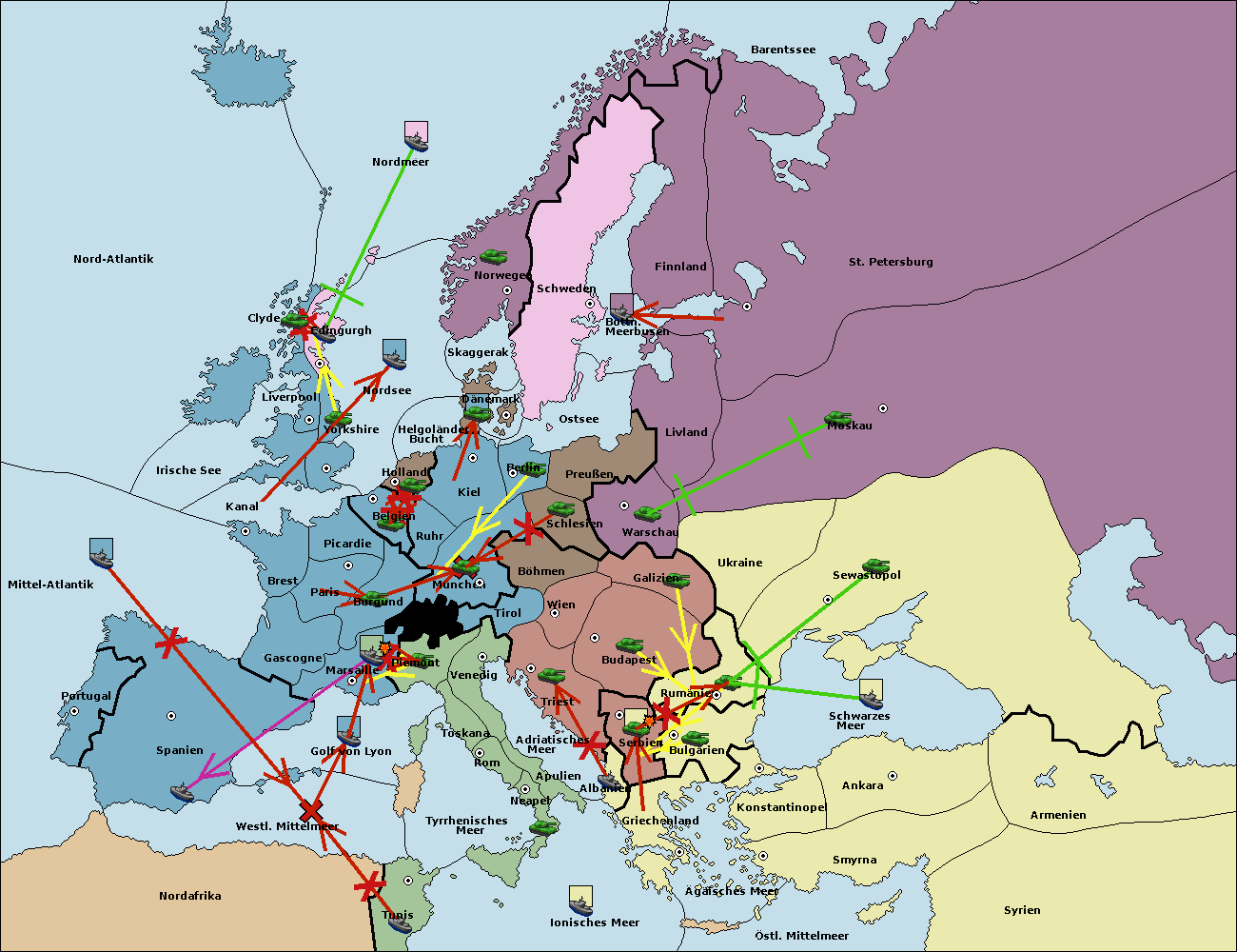 • Die Flotte in Bulgarien (Südküste) support hold nach Griechenland. (gescheitert)