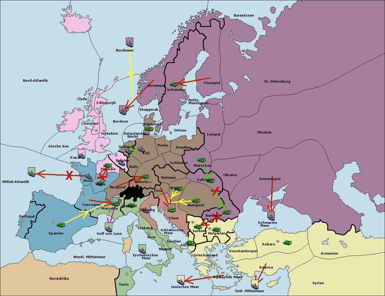 • Die Armee in Konstantinopel support hold nach Bulgarien.