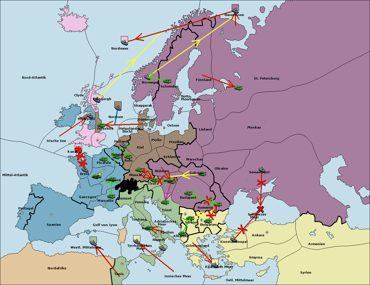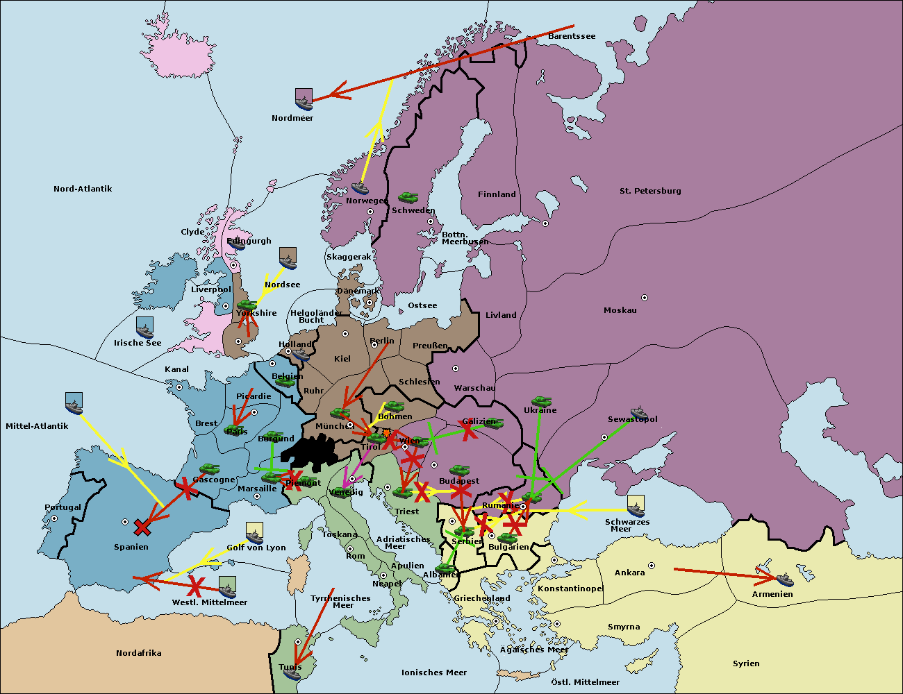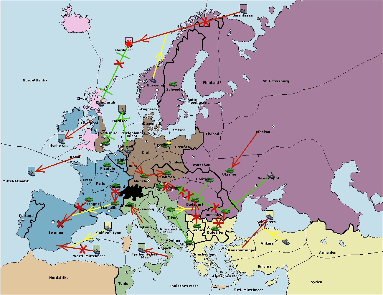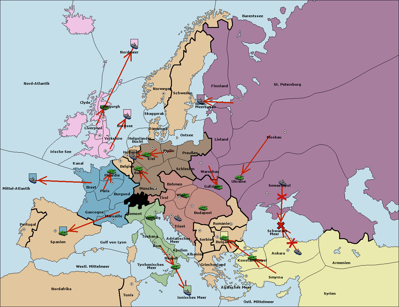 • Die Flotte in Schwarzes Meer support move nach Rumänien von Serbien. (gescheitert)