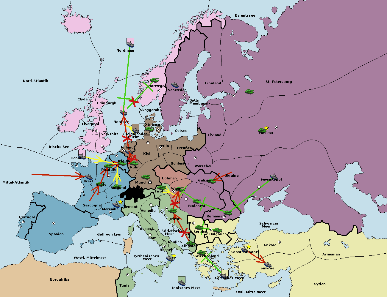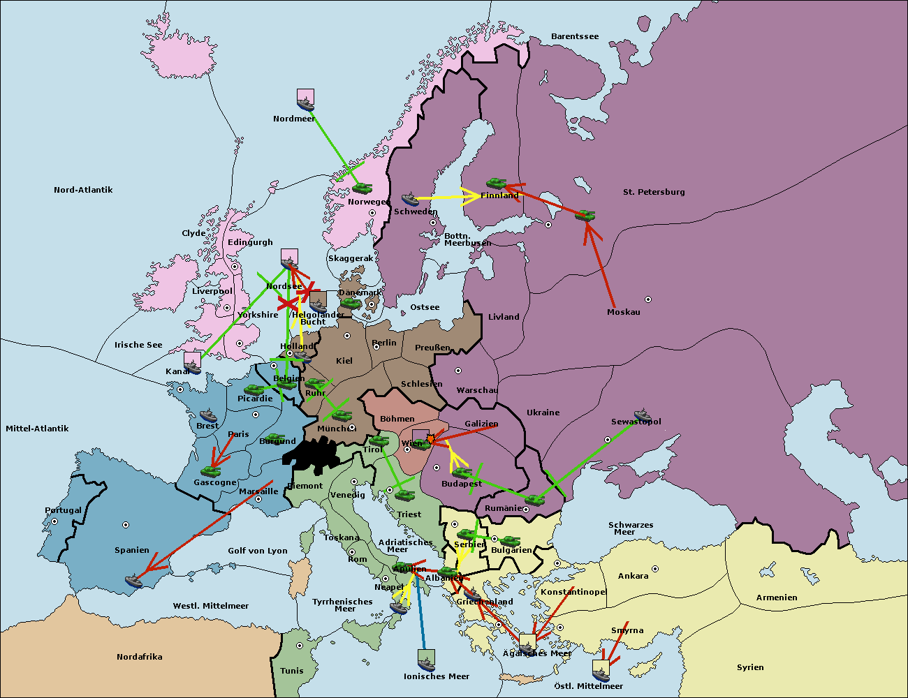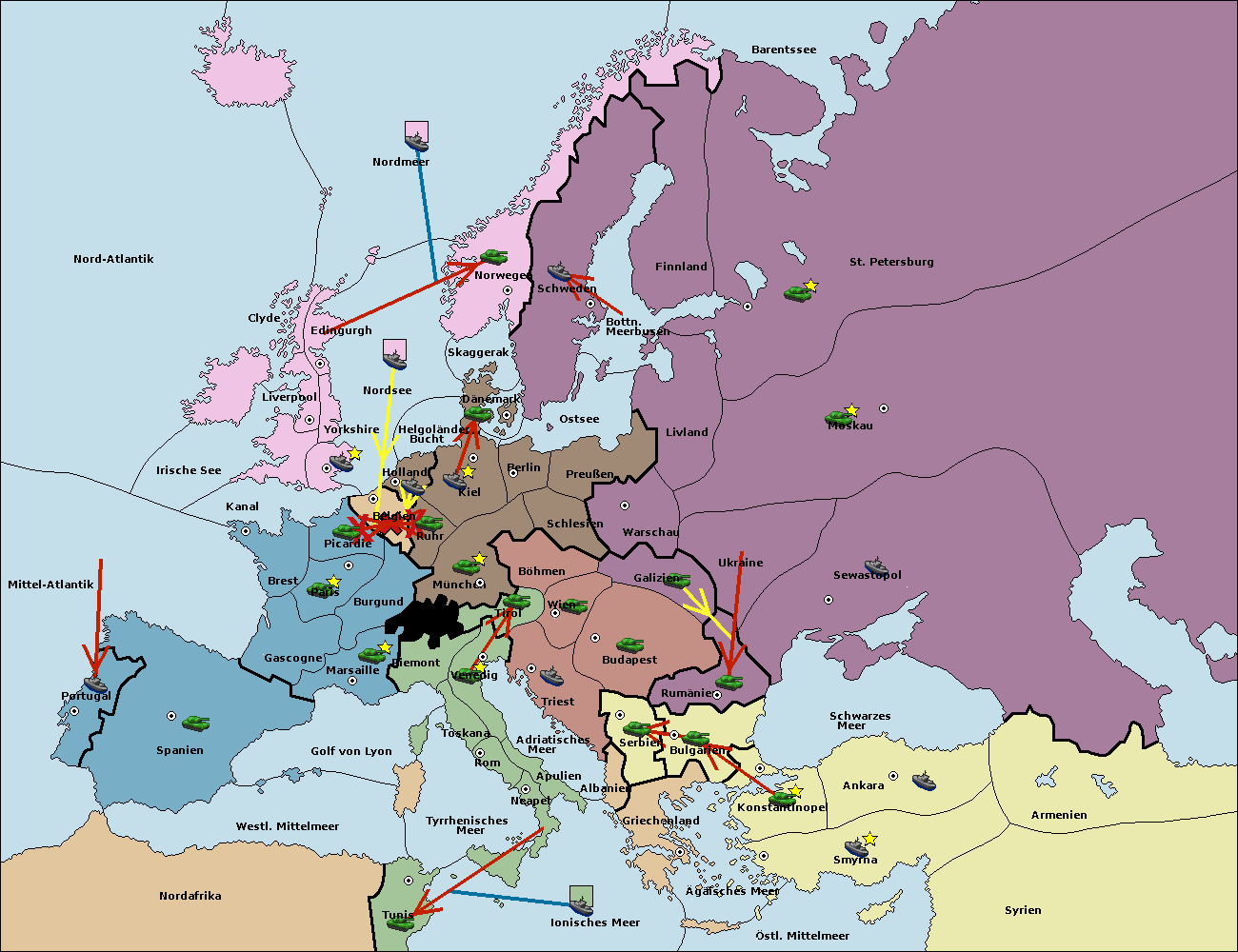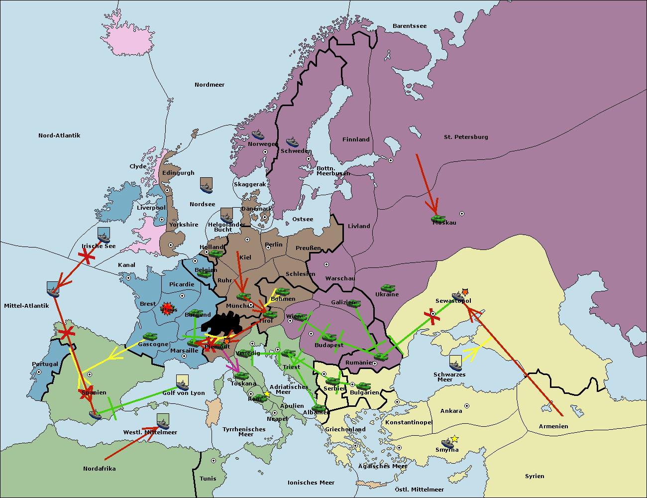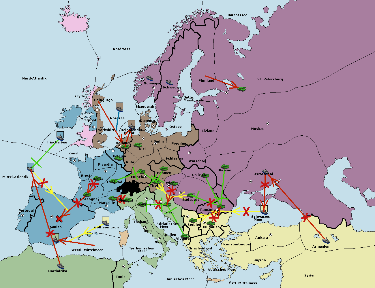 • Die Flotte in Schwarzes Meer support move nach Rumänien von Serbien. (gescheitert)