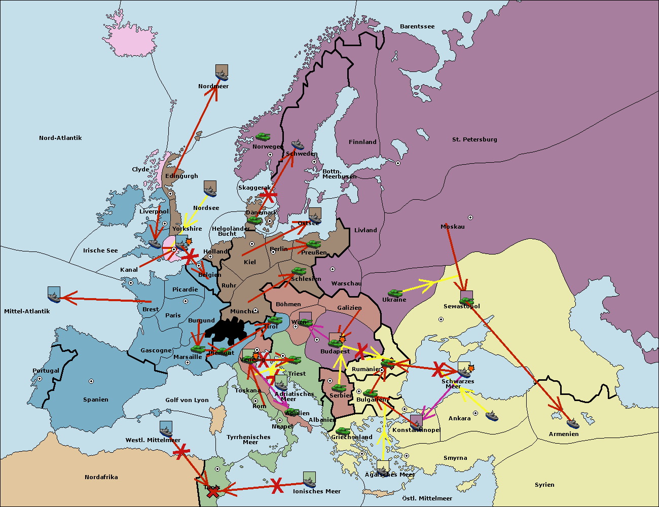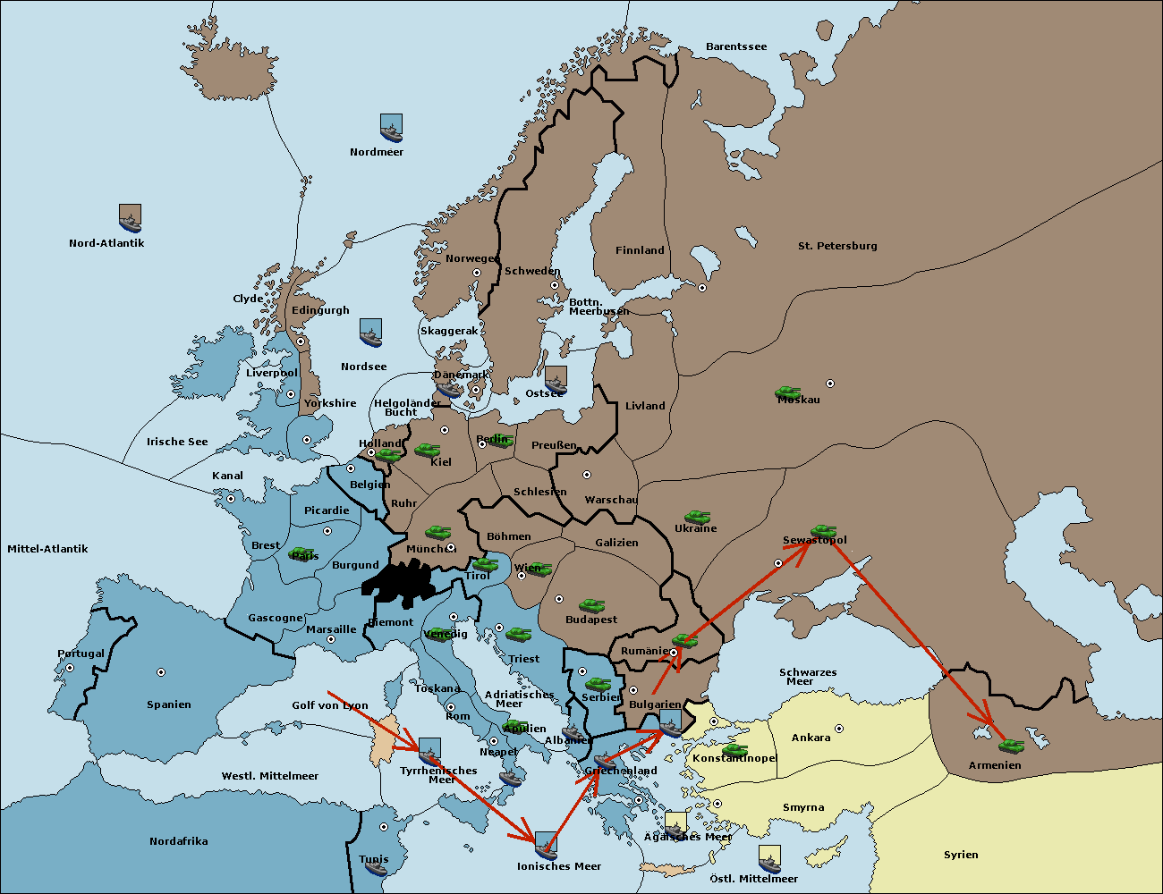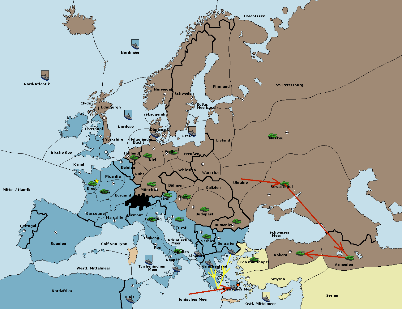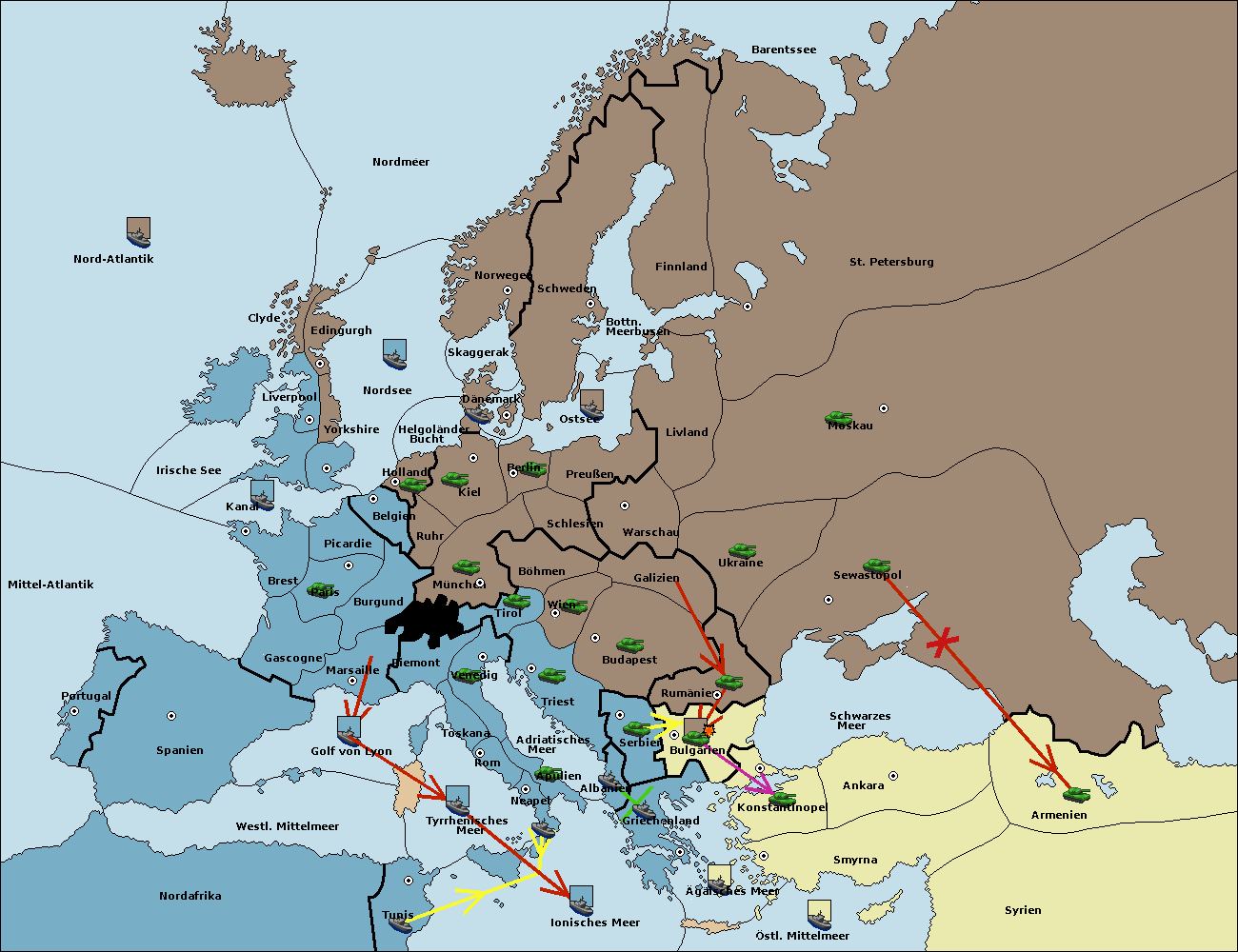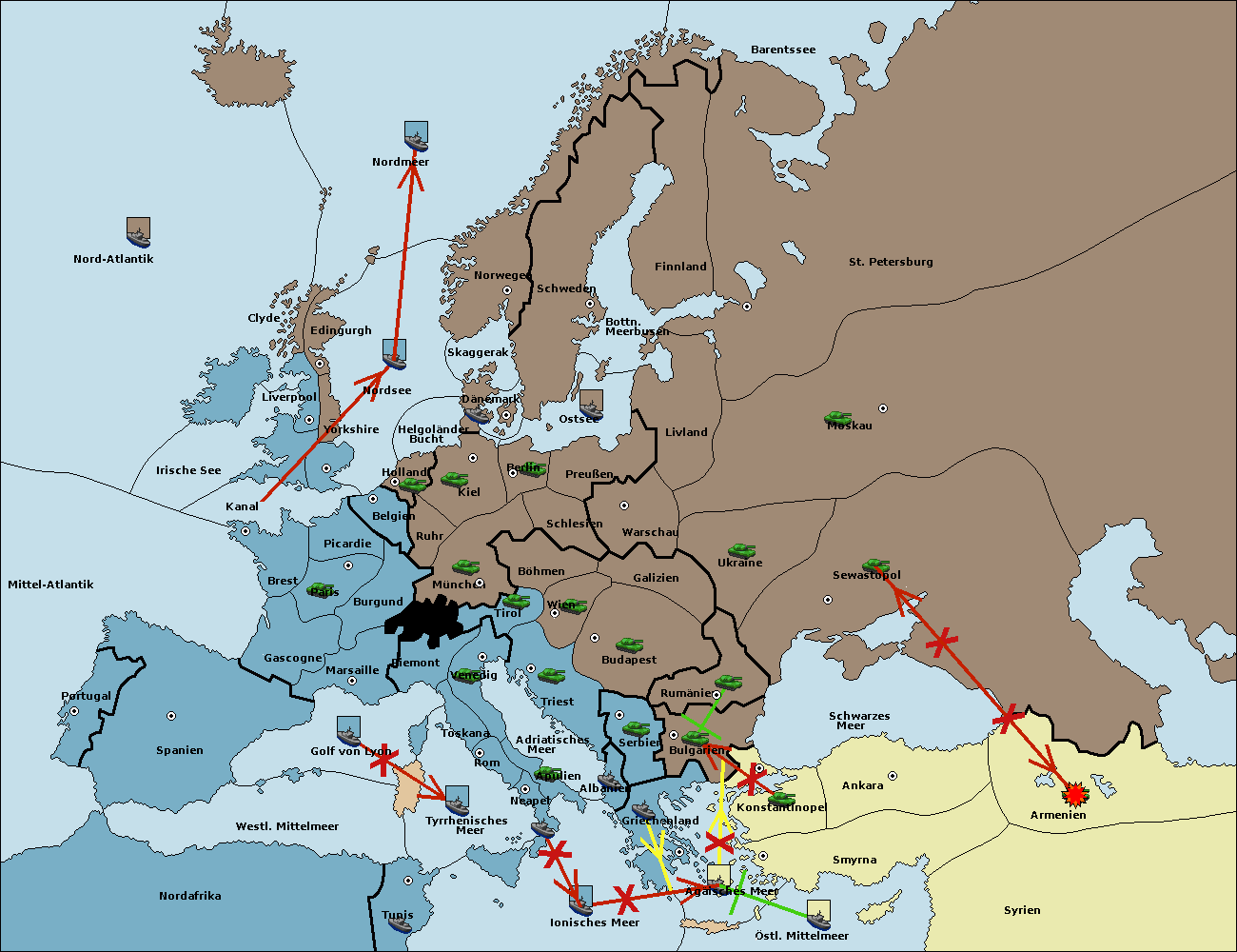 • Die Flotte in Ägäisches Meer support move nach Bulgarien von Konstantinopel. (gescheitert)