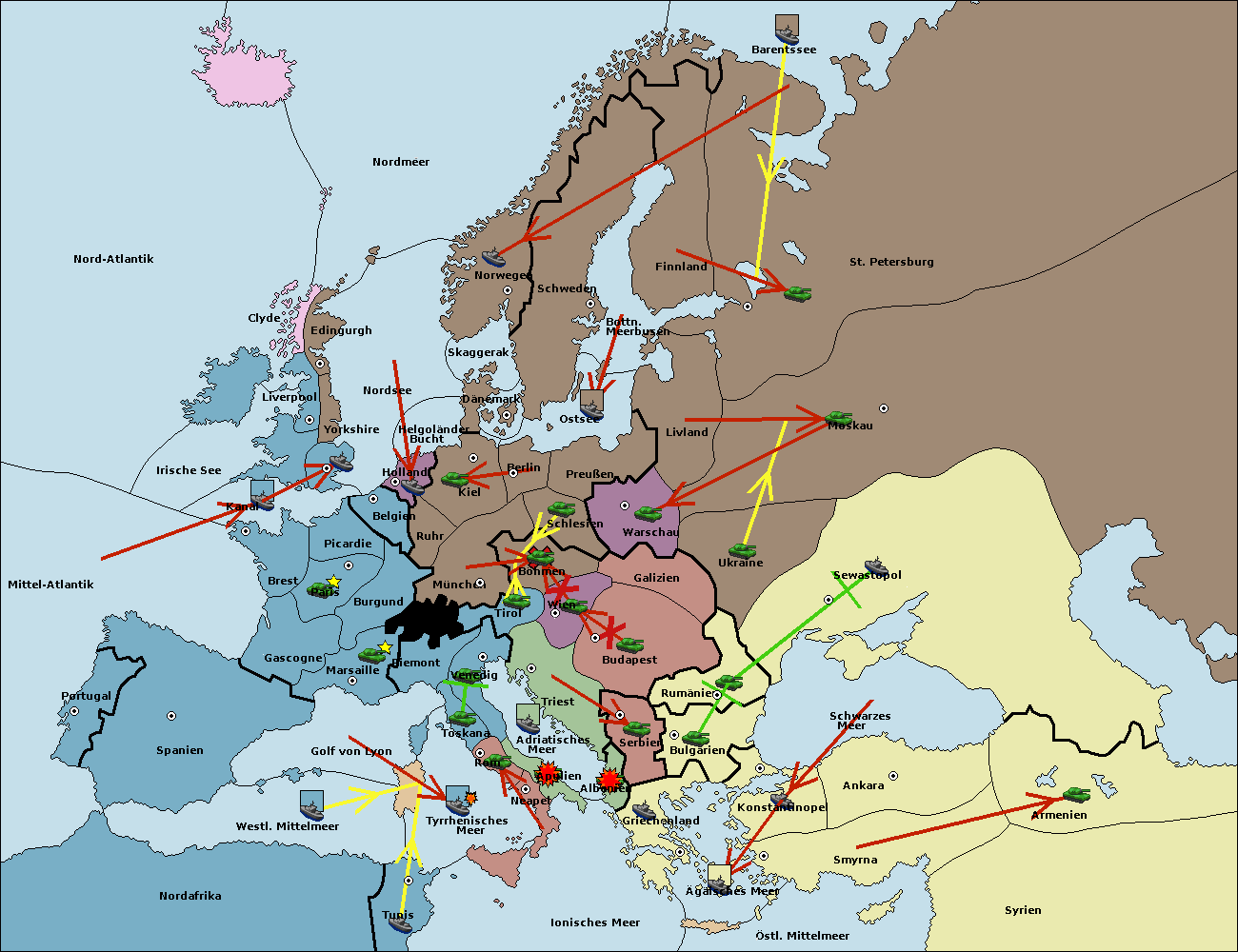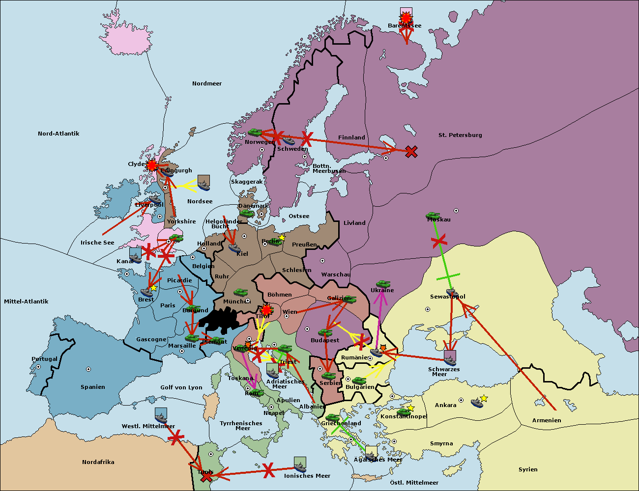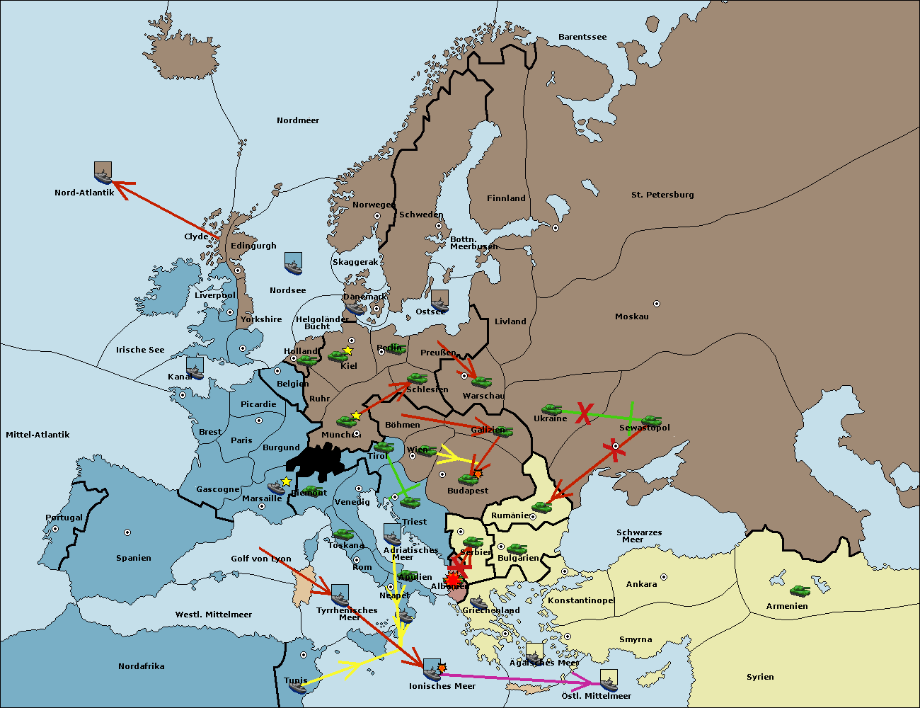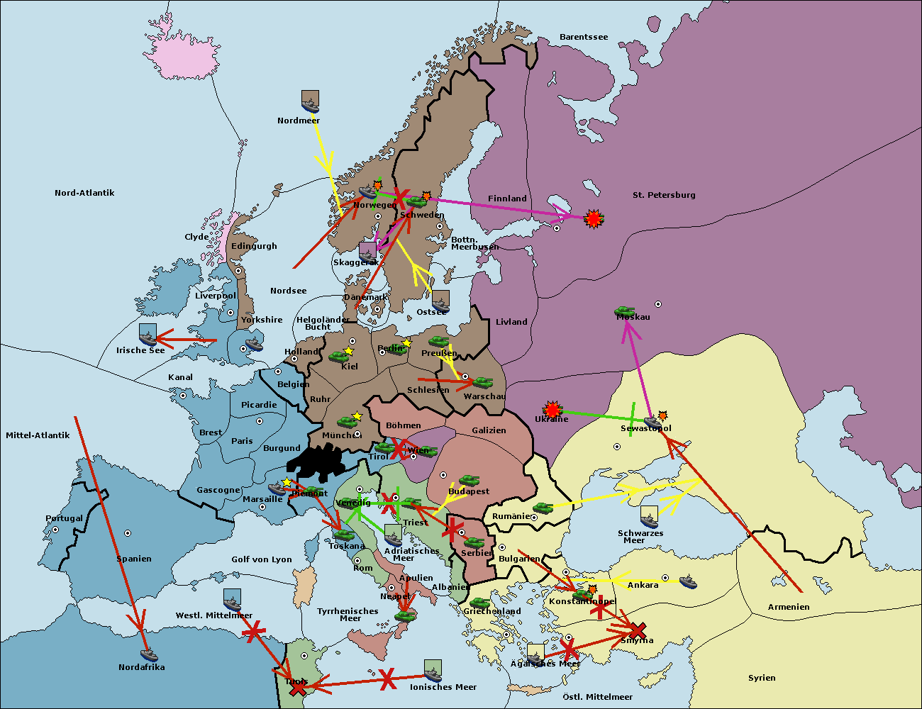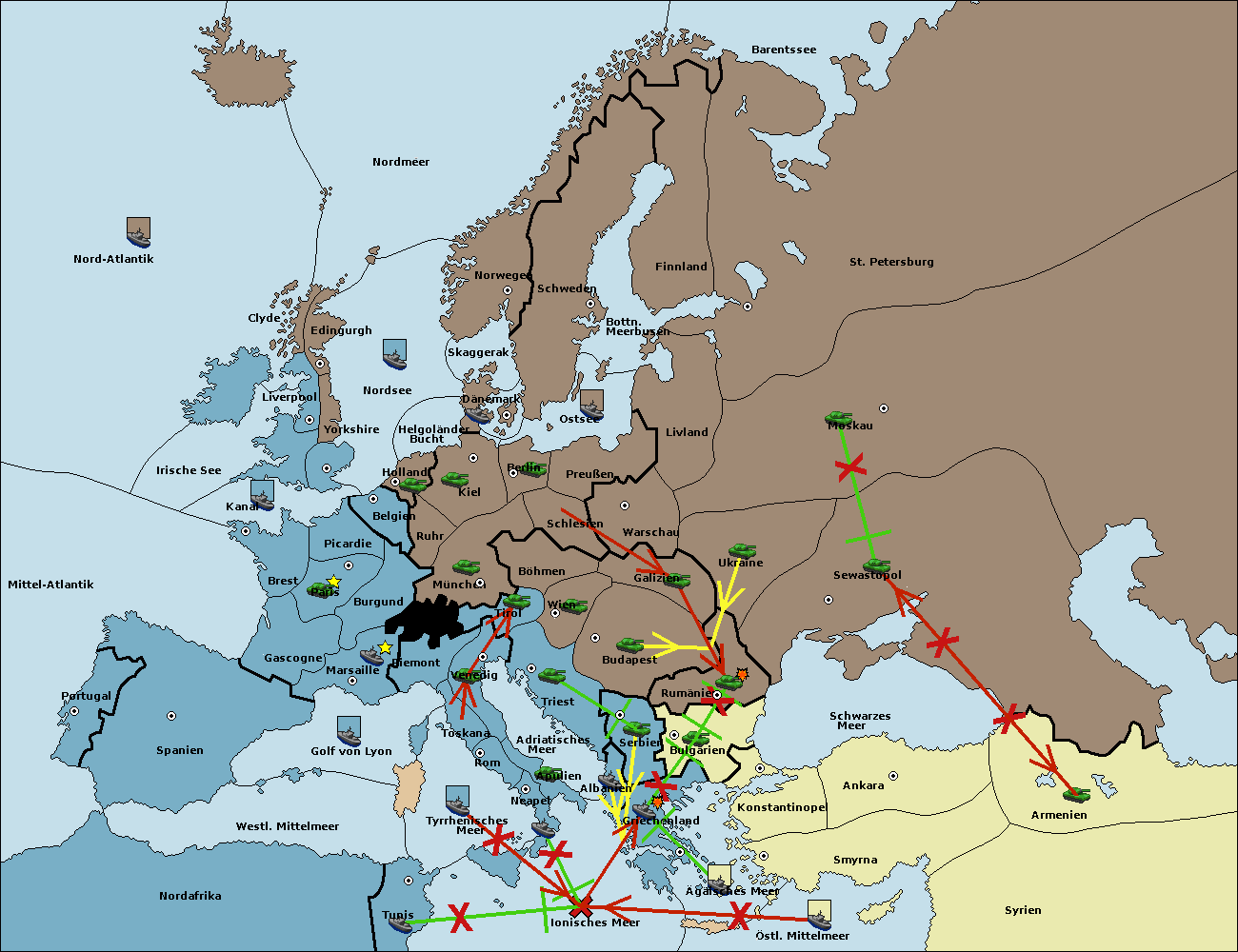 • Die Flotte in Ägäisches Meer support move nach Bulgarien von Konstantinopel. (gescheitert)