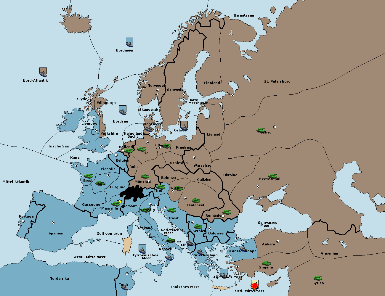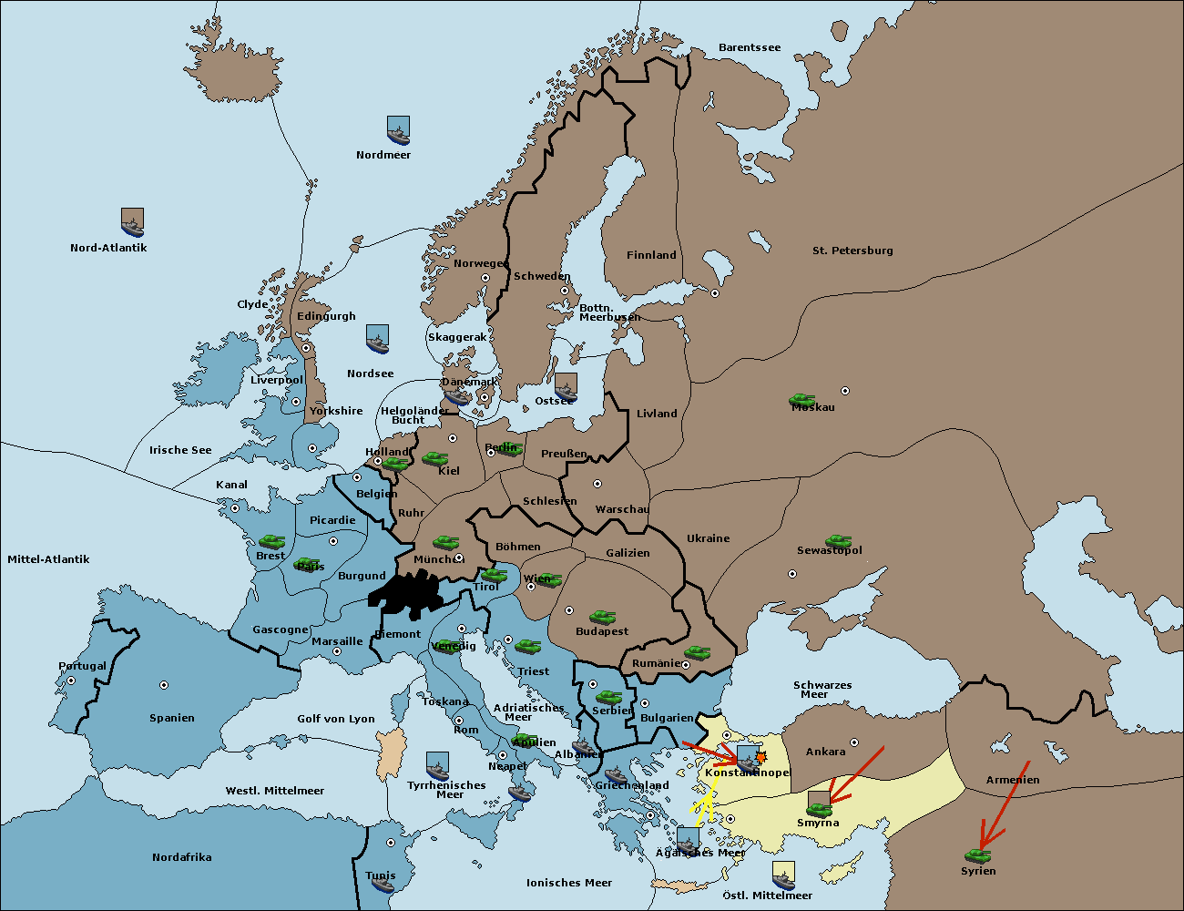 • Die Flotte in Bulgarien (Südküste) move nach Konstantinopel.