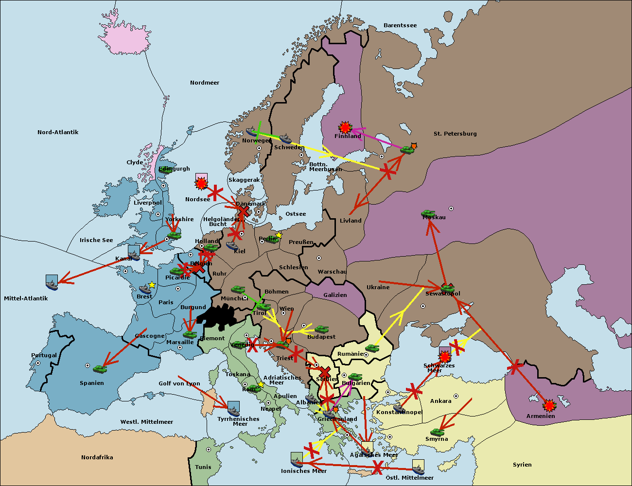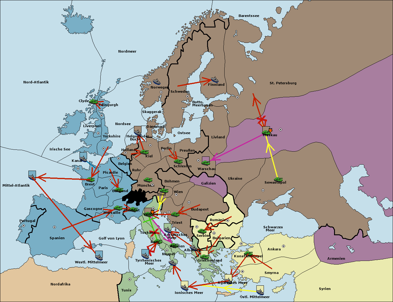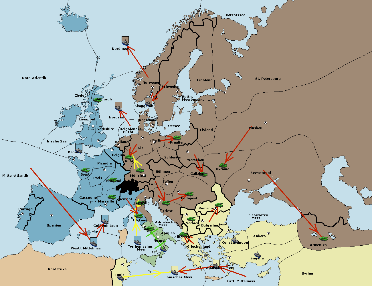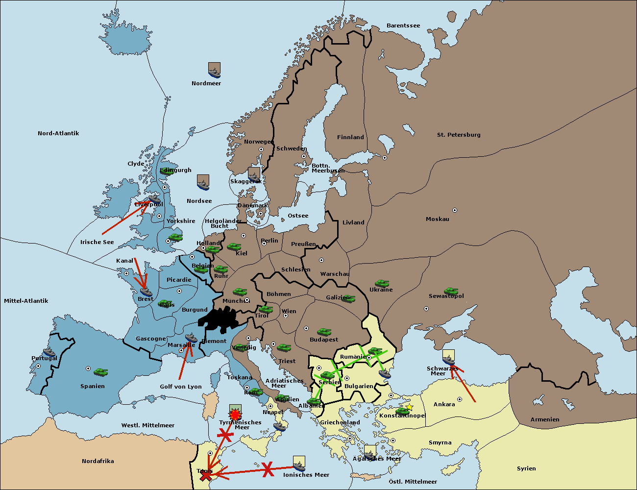 • Die Flotte in Bulgarien (Südküste) move nach Griechenland.