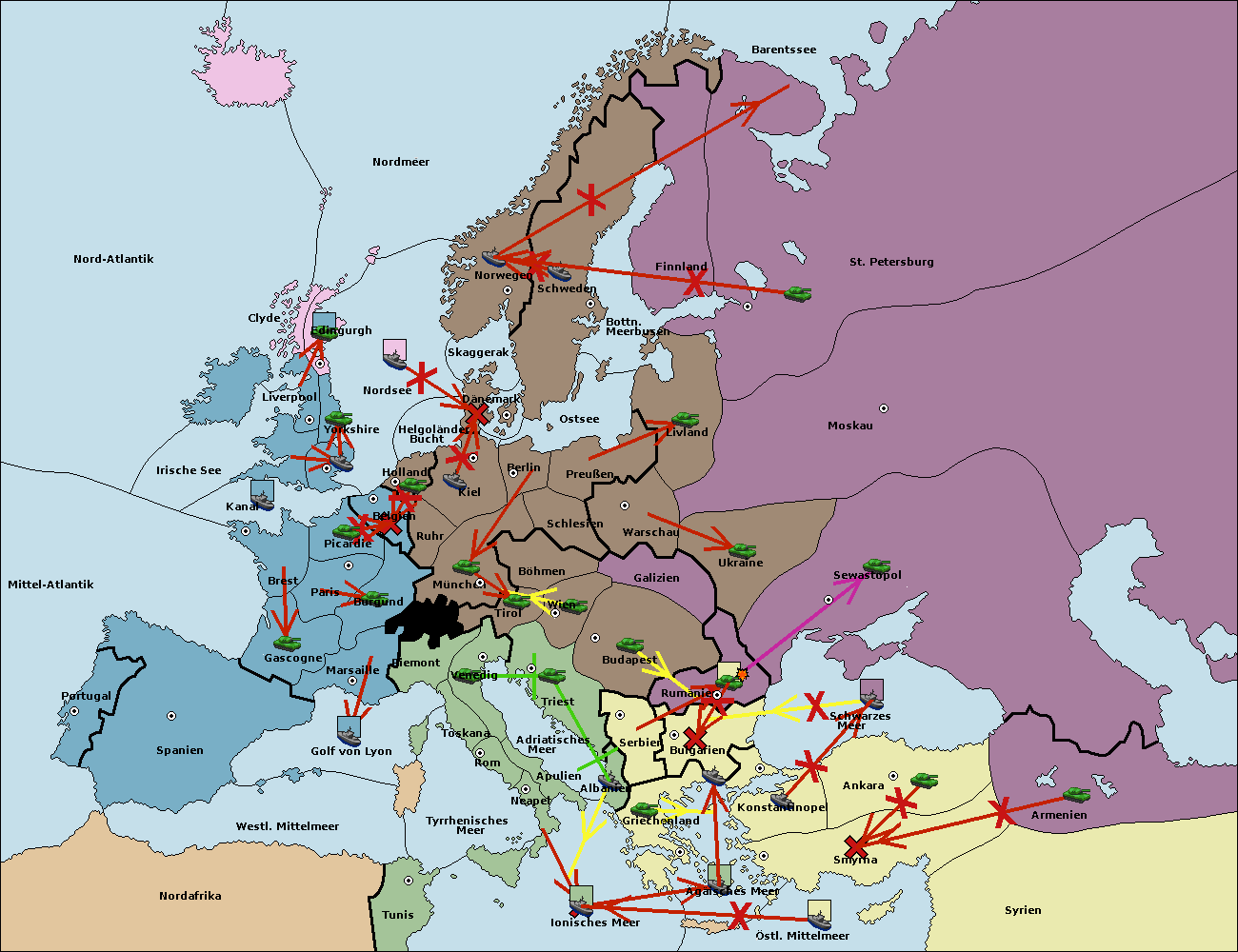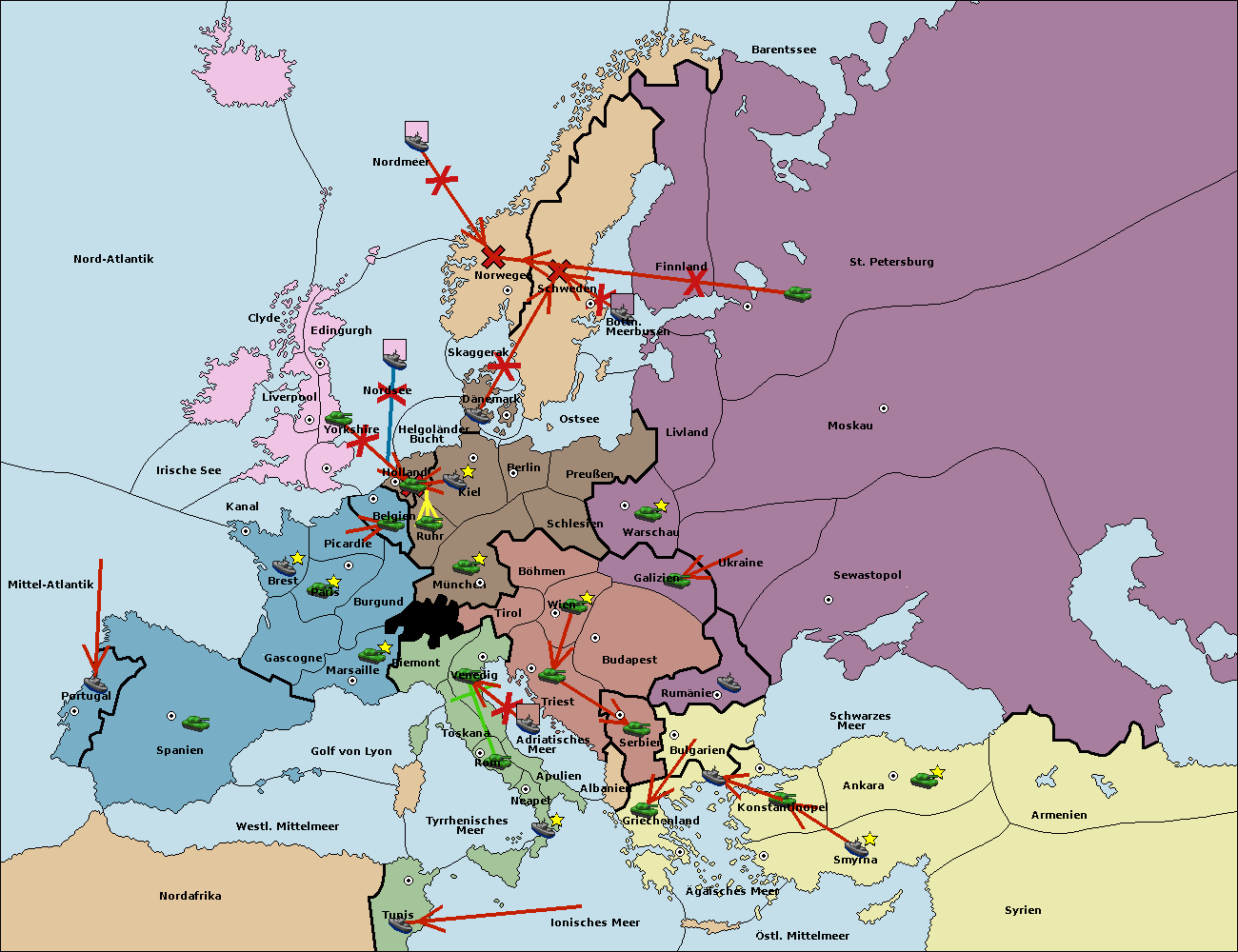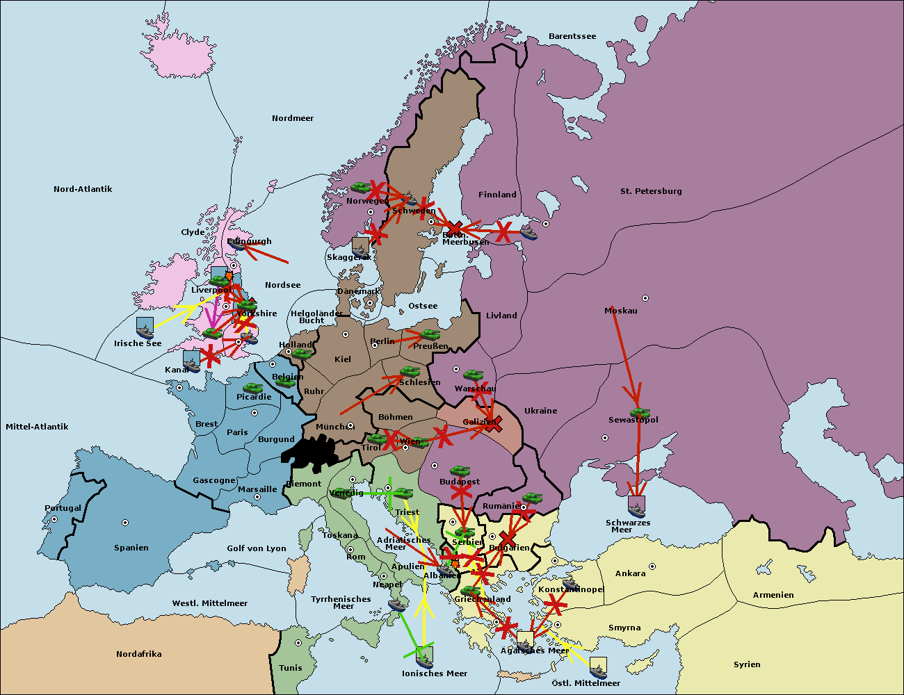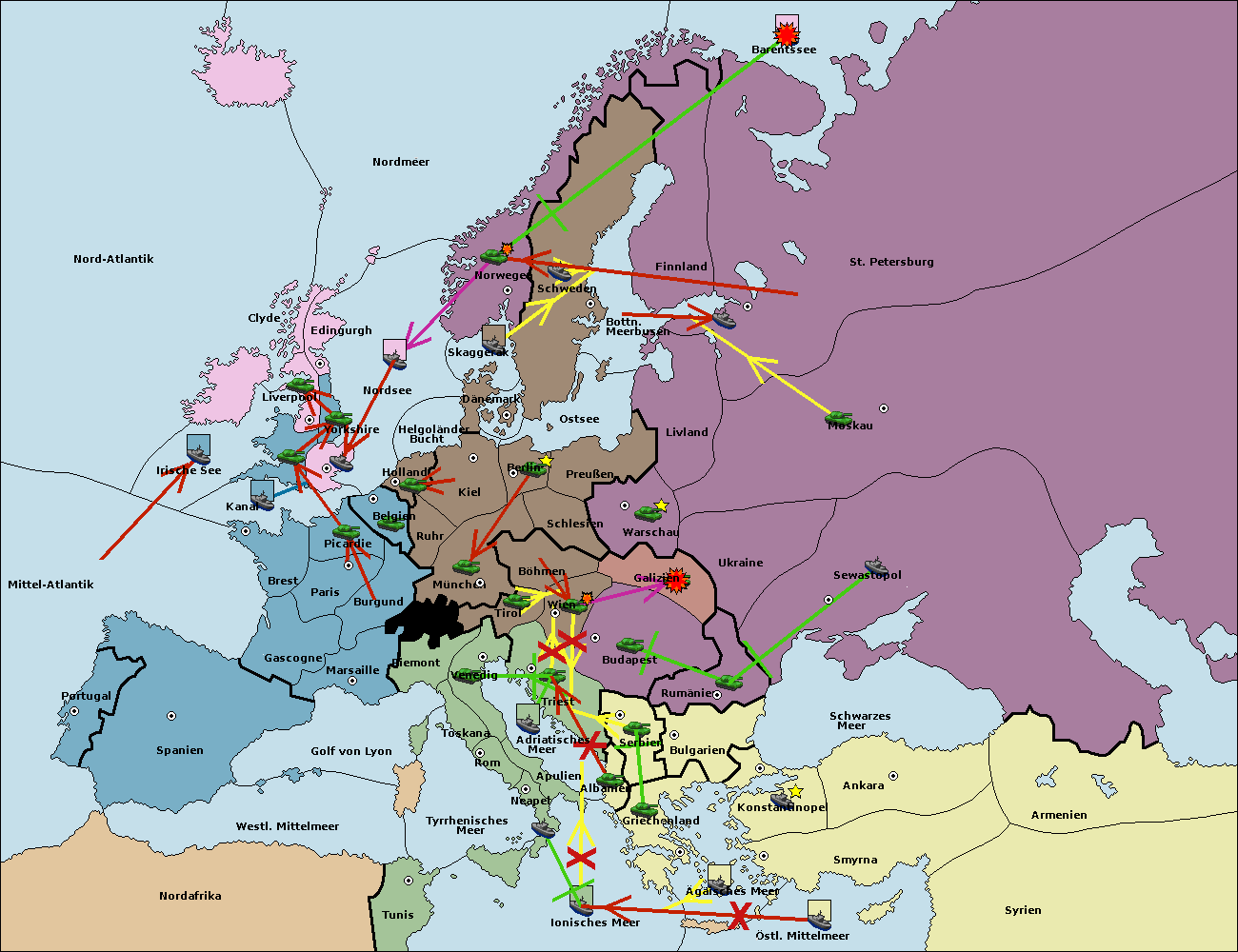 • Die Flotte in Bulgarien (Südküste) move nach Griechenland.