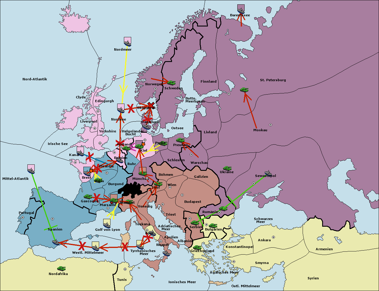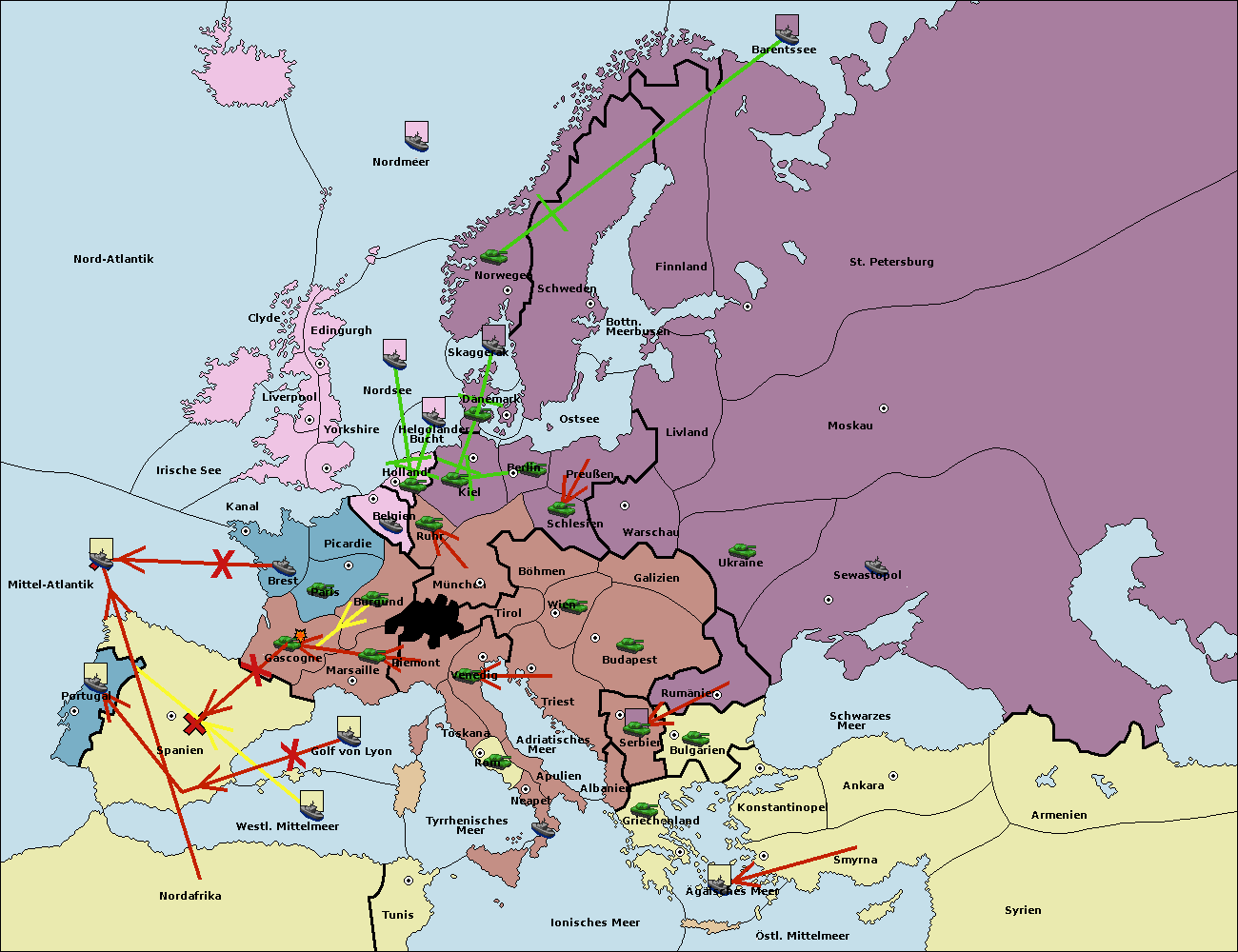 • Die Flotte in Helgoländer Bucht support move nach Kiel von Dänemark. (gescheitert)
