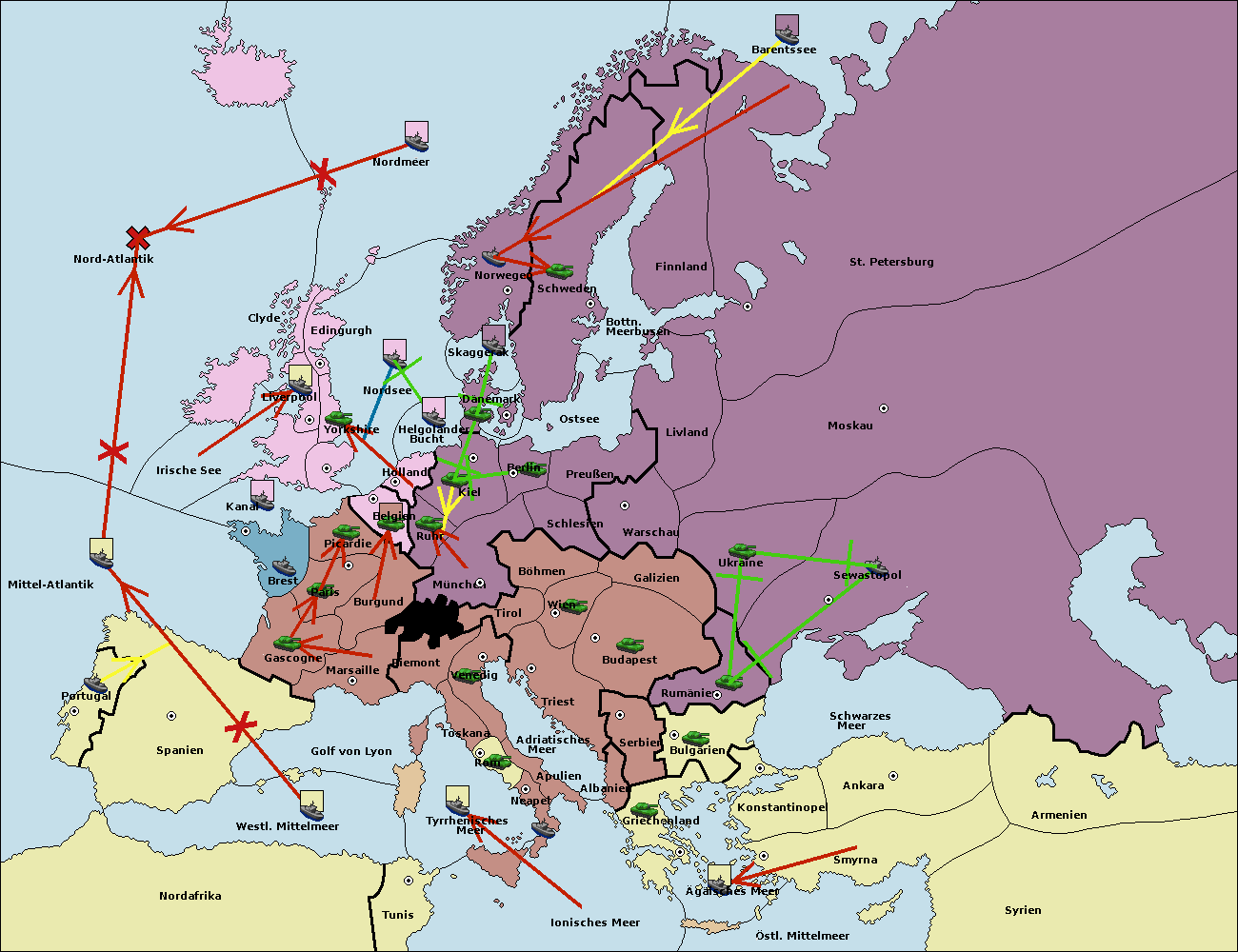 • Die Flotte in Belgien move nach Holland. (gescheitert)
