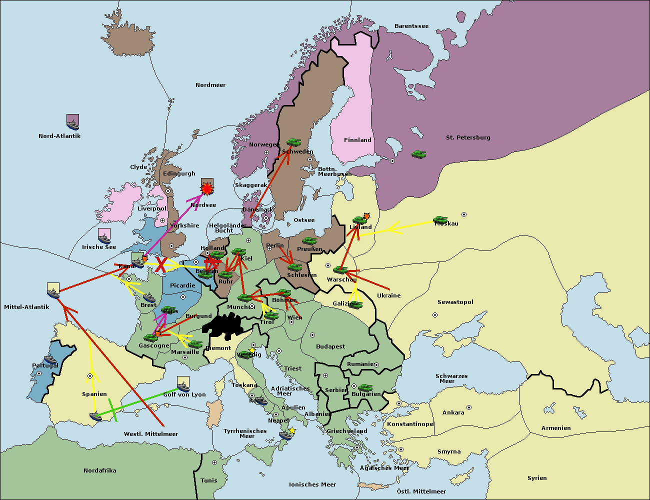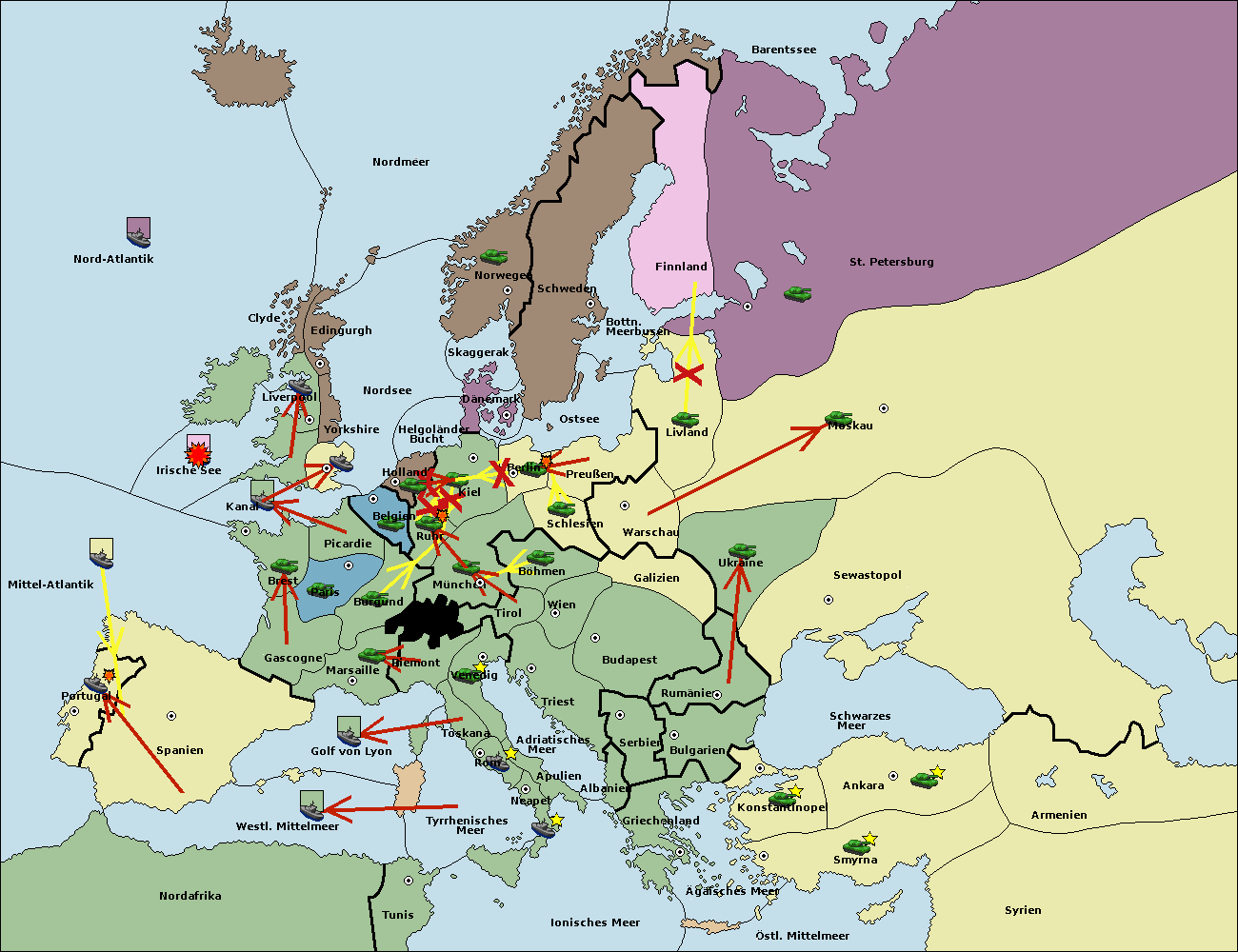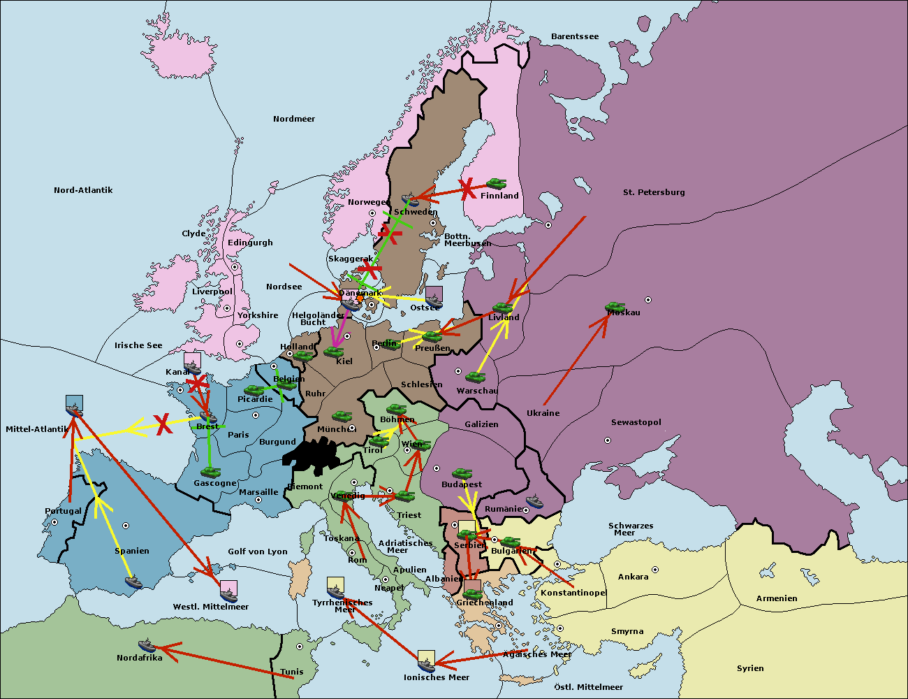 • Die Flotte in Spanien (Südküste) move nach Portugal.