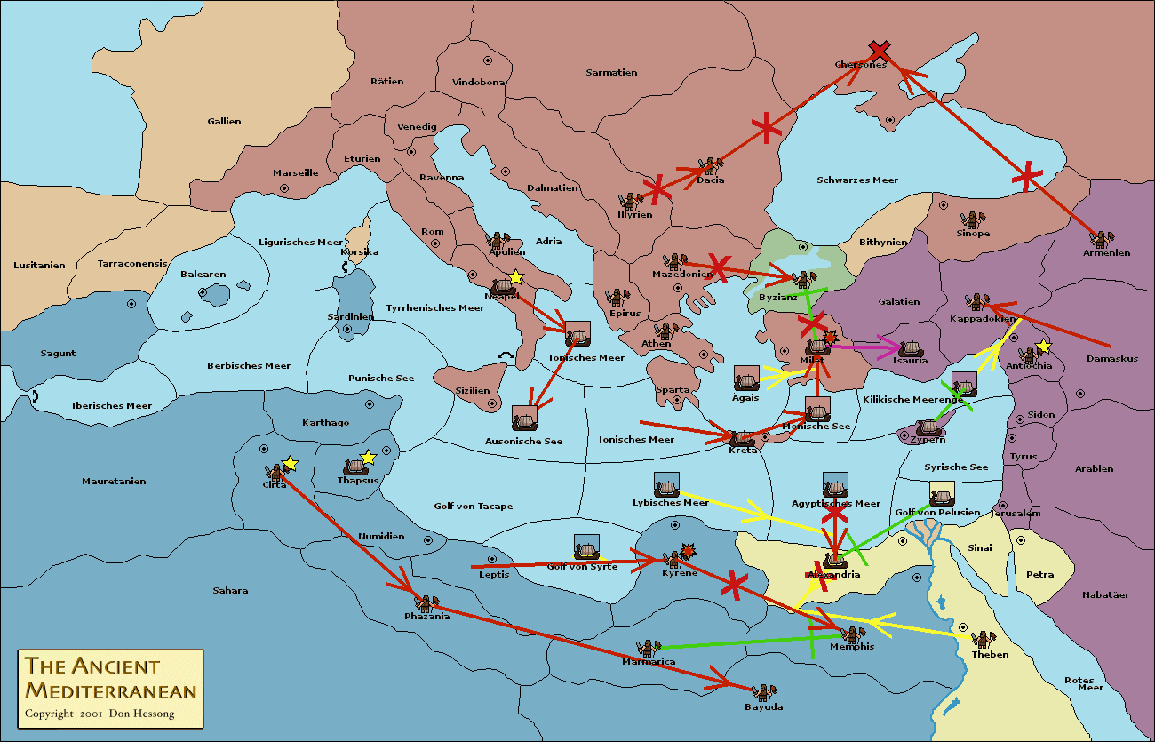 • Die Armee in Leptis move nach Marmarica. (gescheitert)