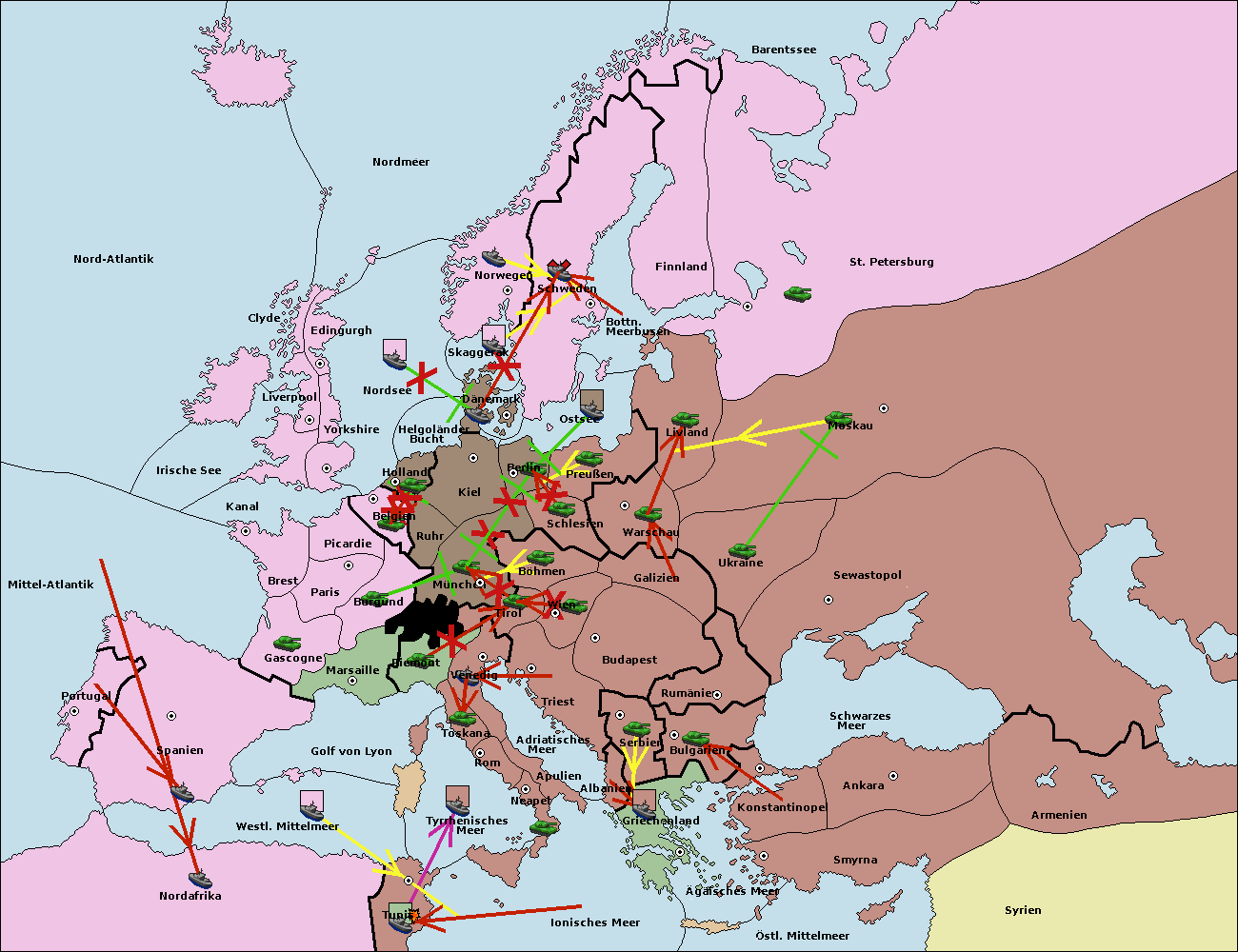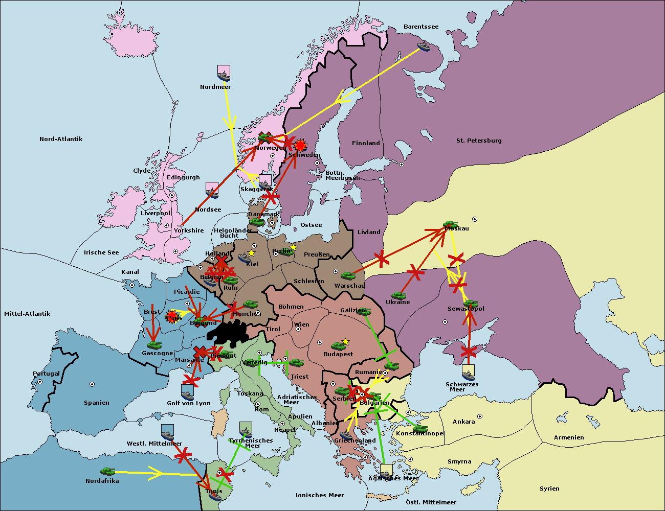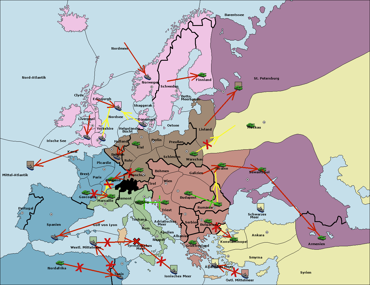 • Die Flotte in Spanien (Südküste) support hold nach westl. Mittelmeer.