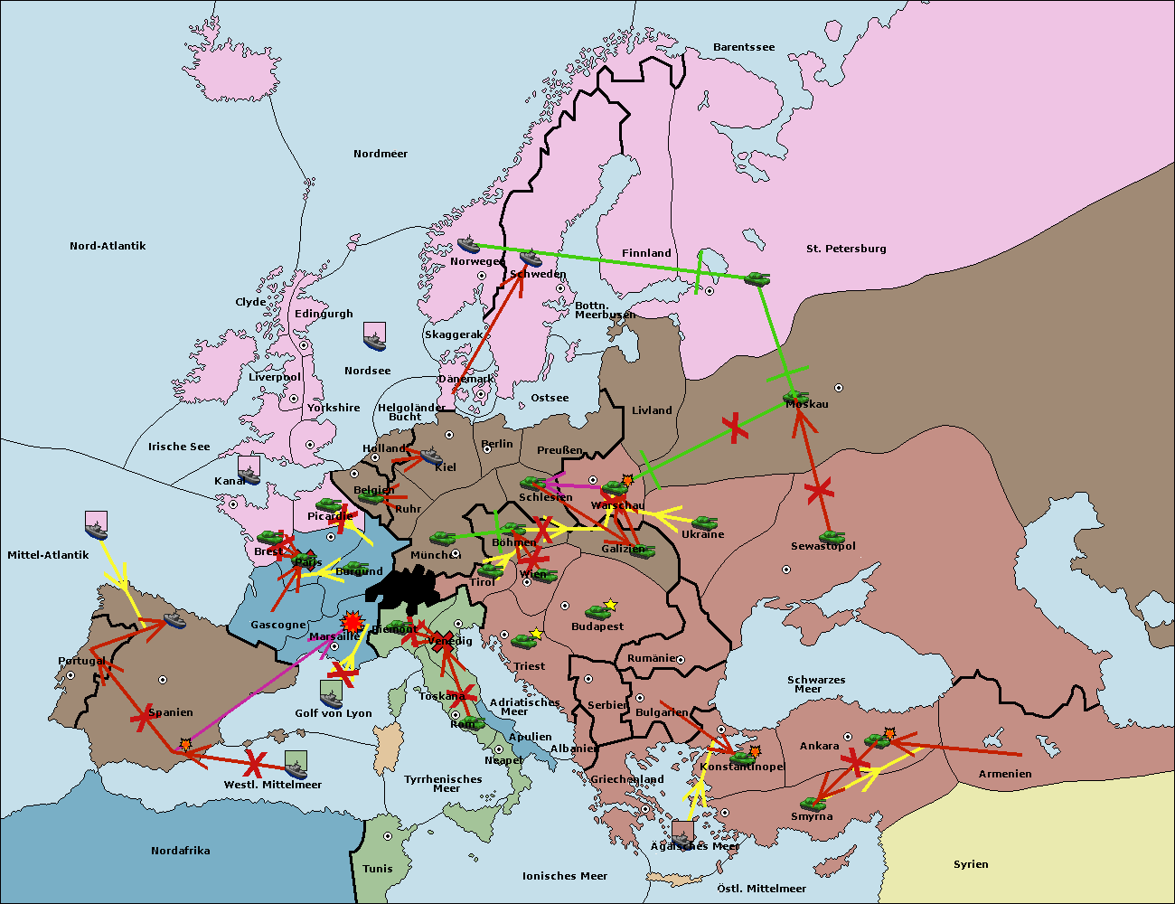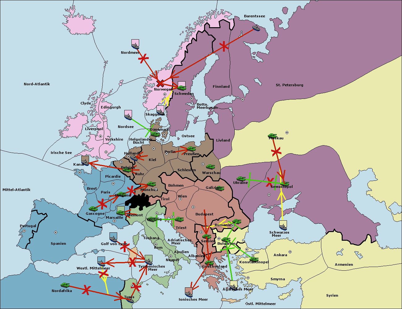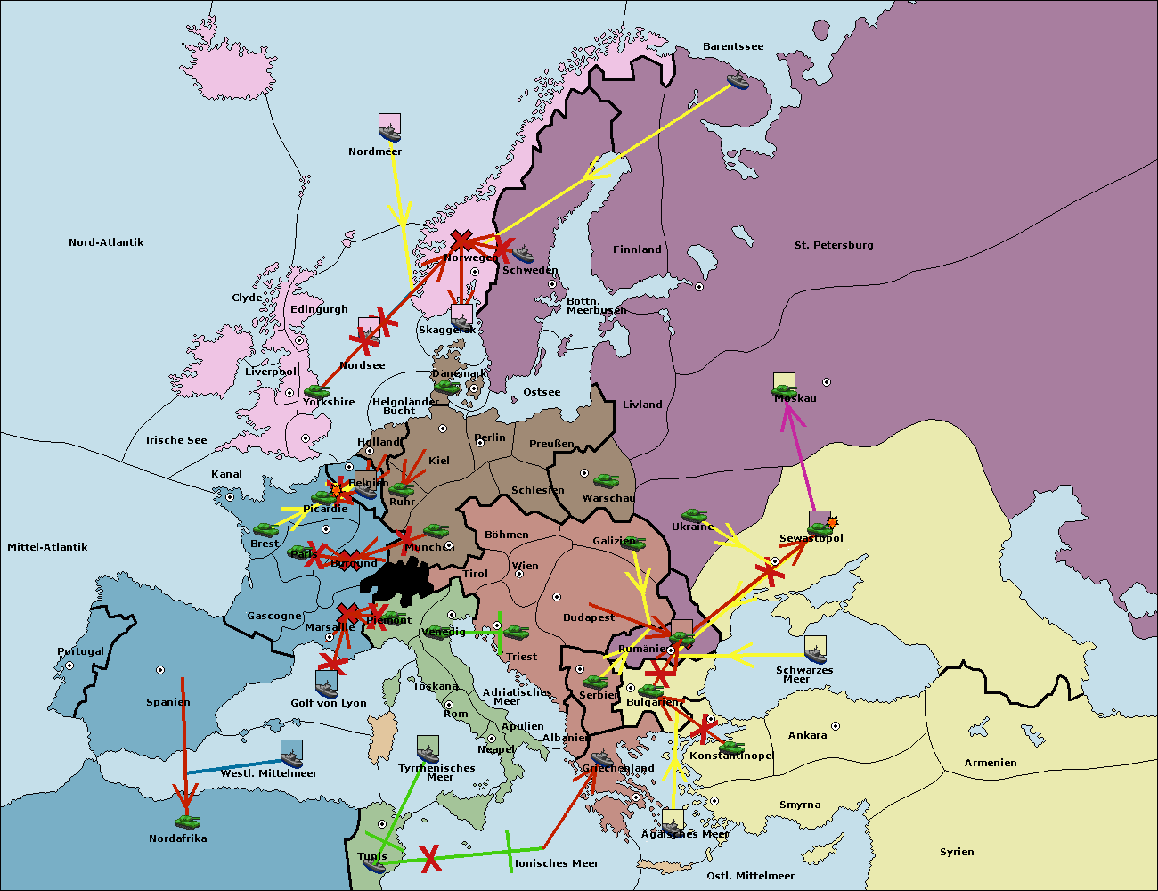 • Die Flotte in Spanien (Südküste) support hold nach westl. Mittelmeer.
