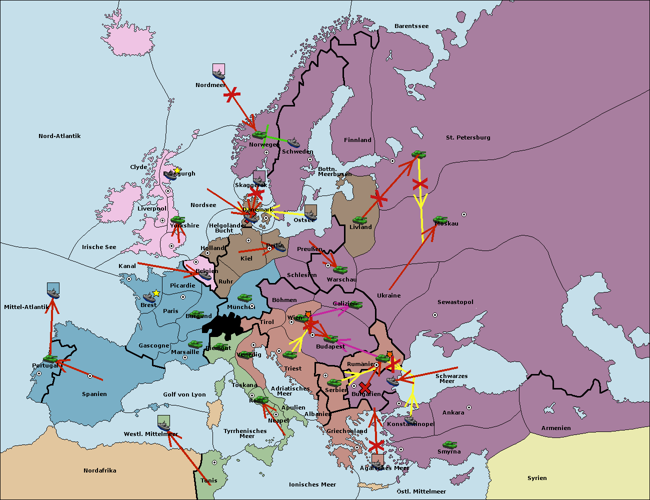 • Die Flotte in Bulgarien (Nordküste) support hold nach Rumänien. (gescheitert)