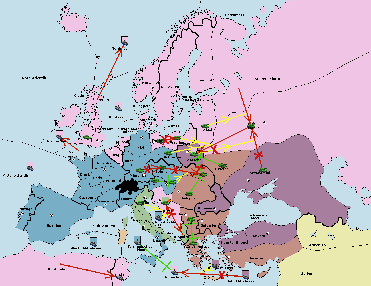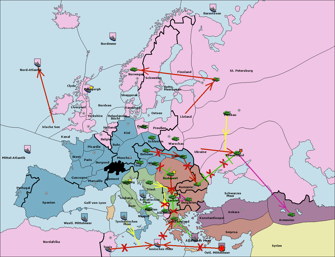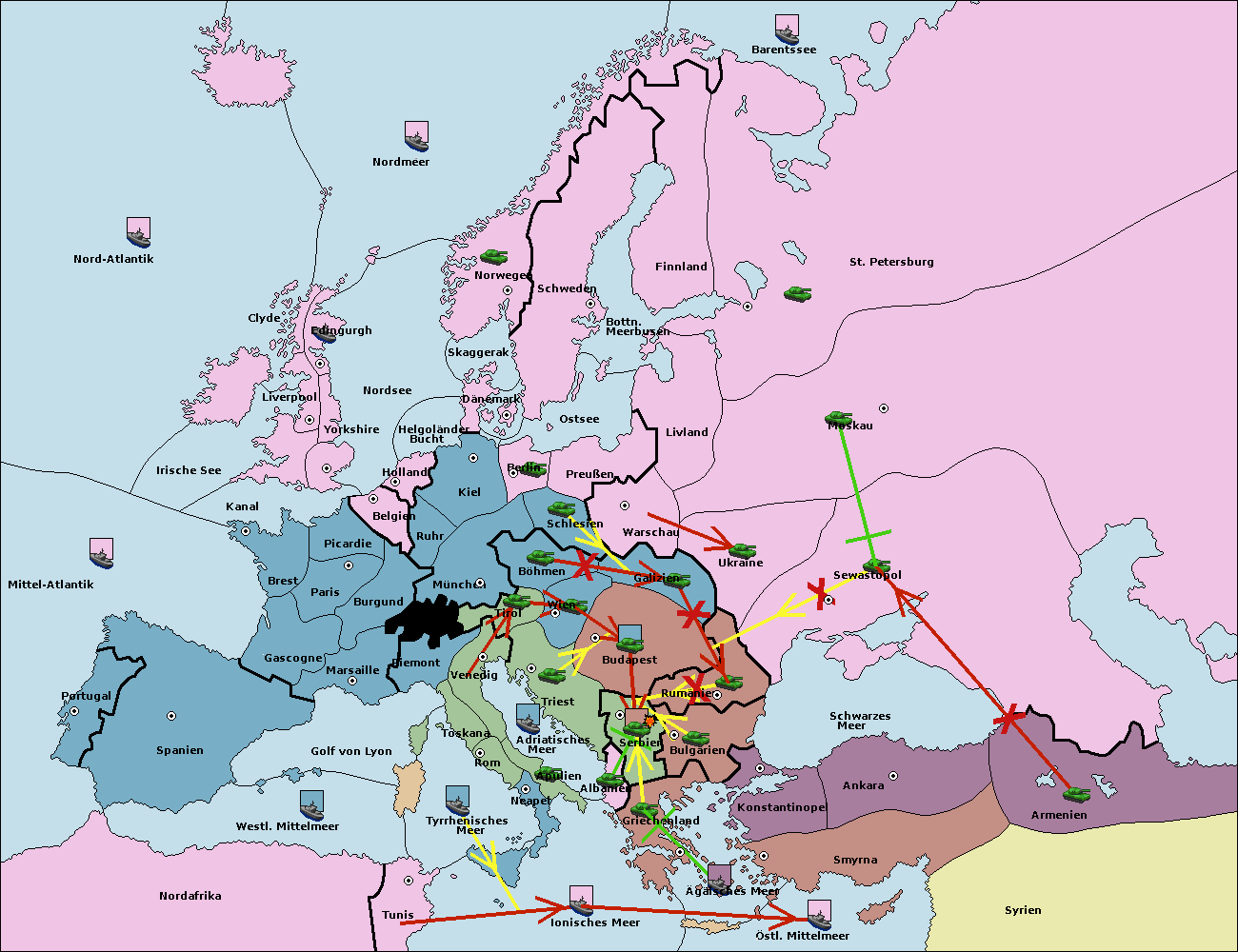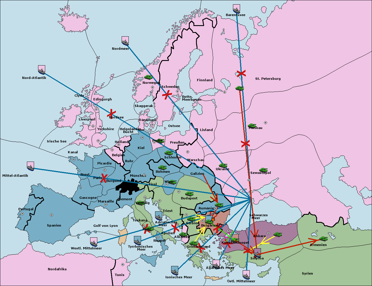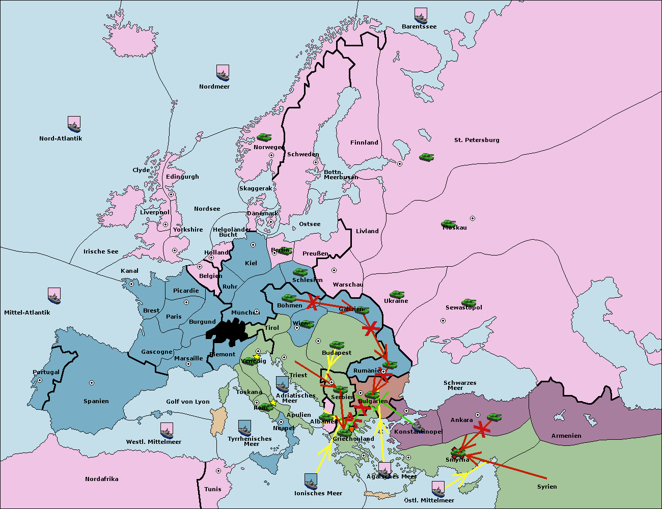 • Die Armee in Bulgarien wird zerstörtFlotte in Bulgarien gebaut.