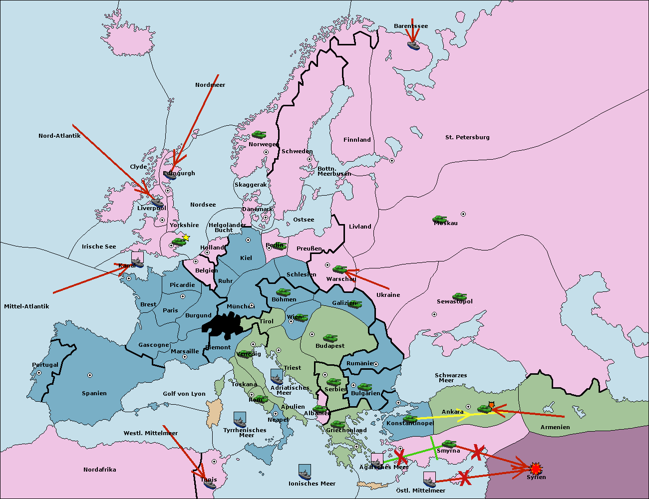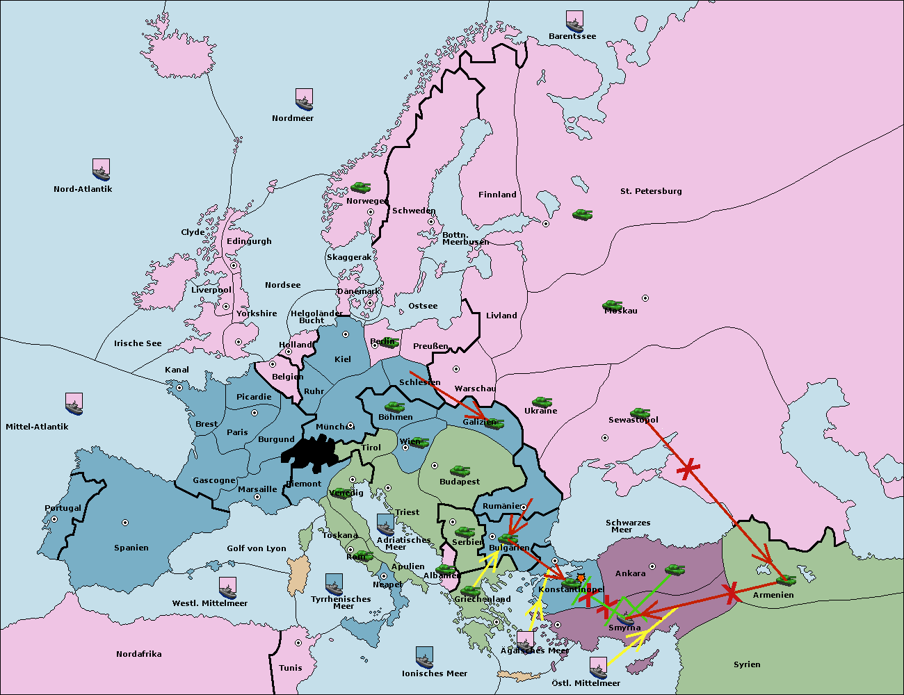 • Die Flotte in Smyrna support hold nach Konstantinopel. (gescheitert)
