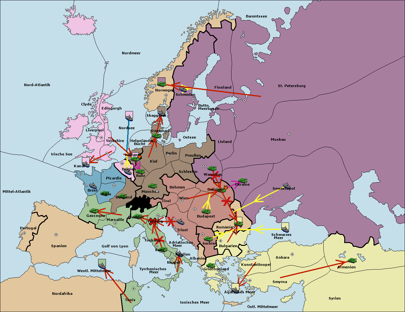 • Die Armee in Budapest support move nach Galizien von Wien.