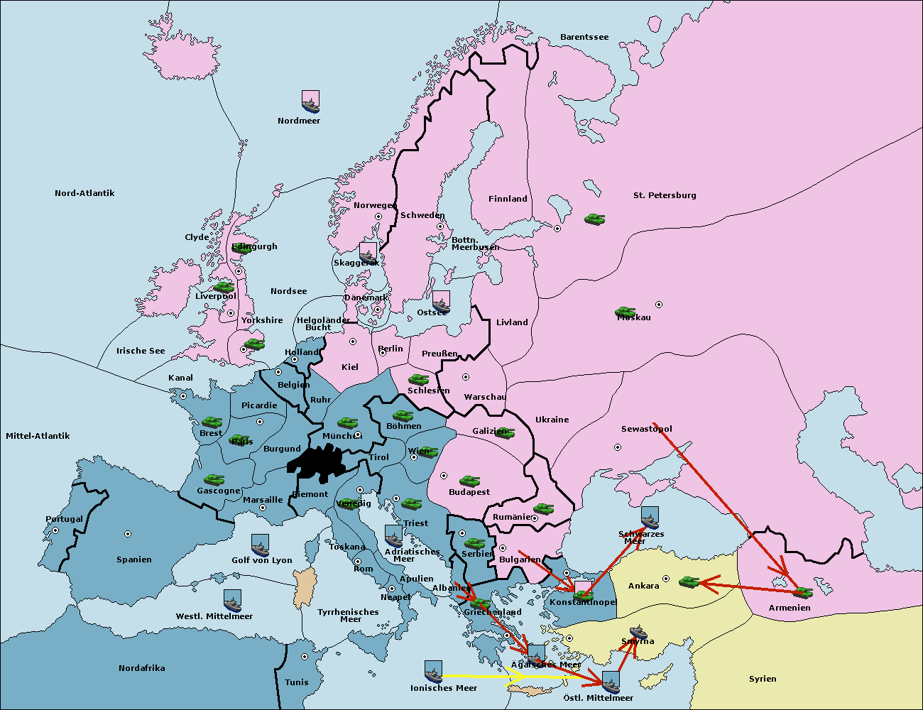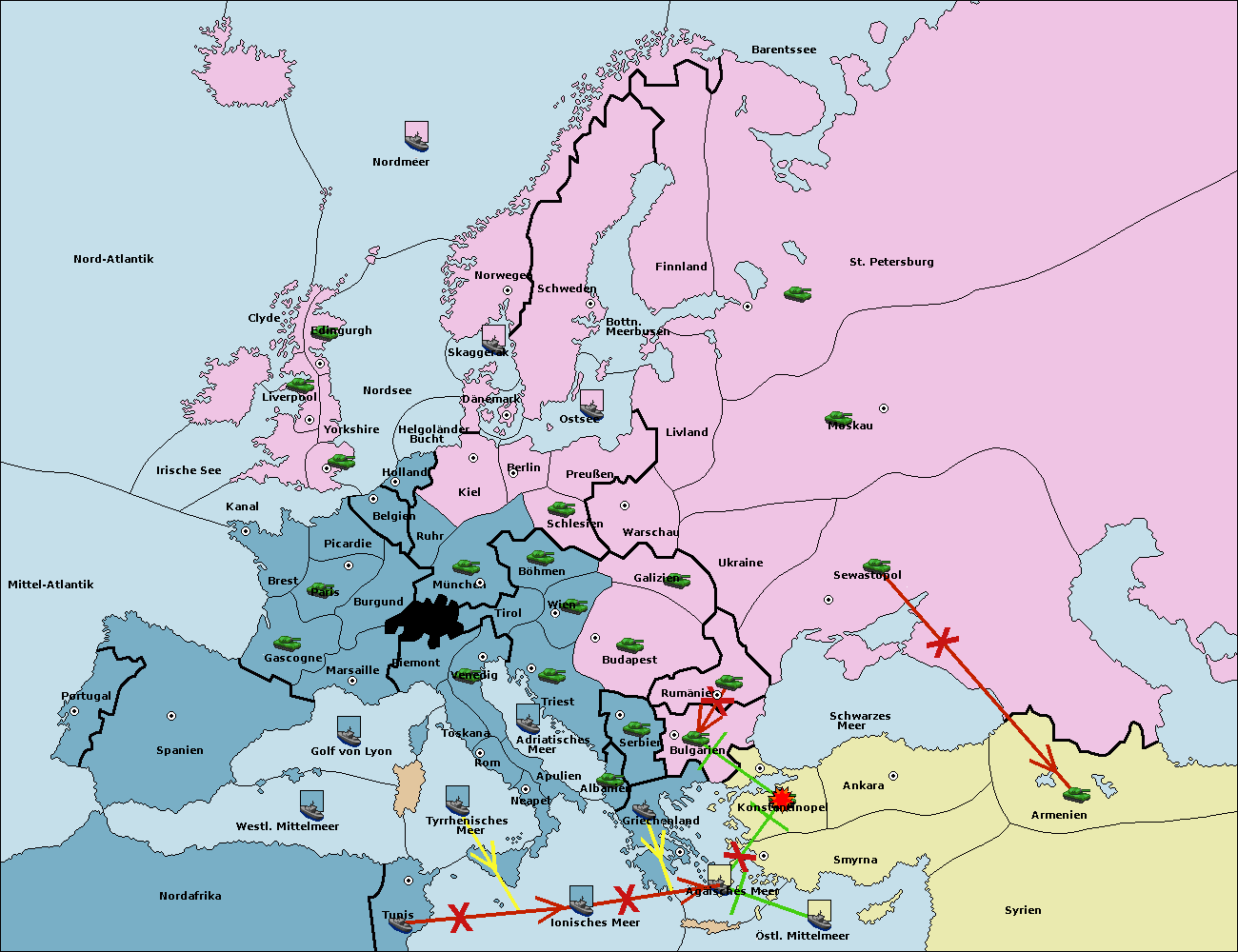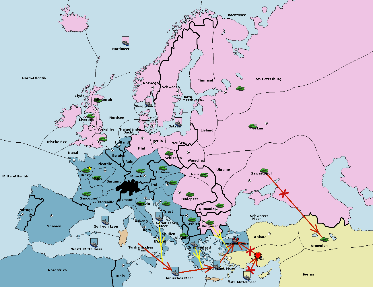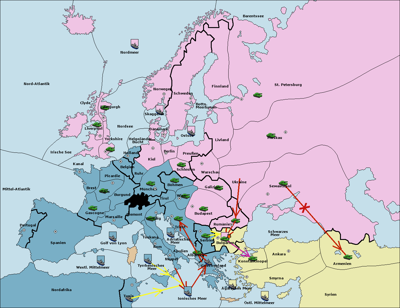 • Die Armee in Konstantinopel support hold nach Bulgarien.