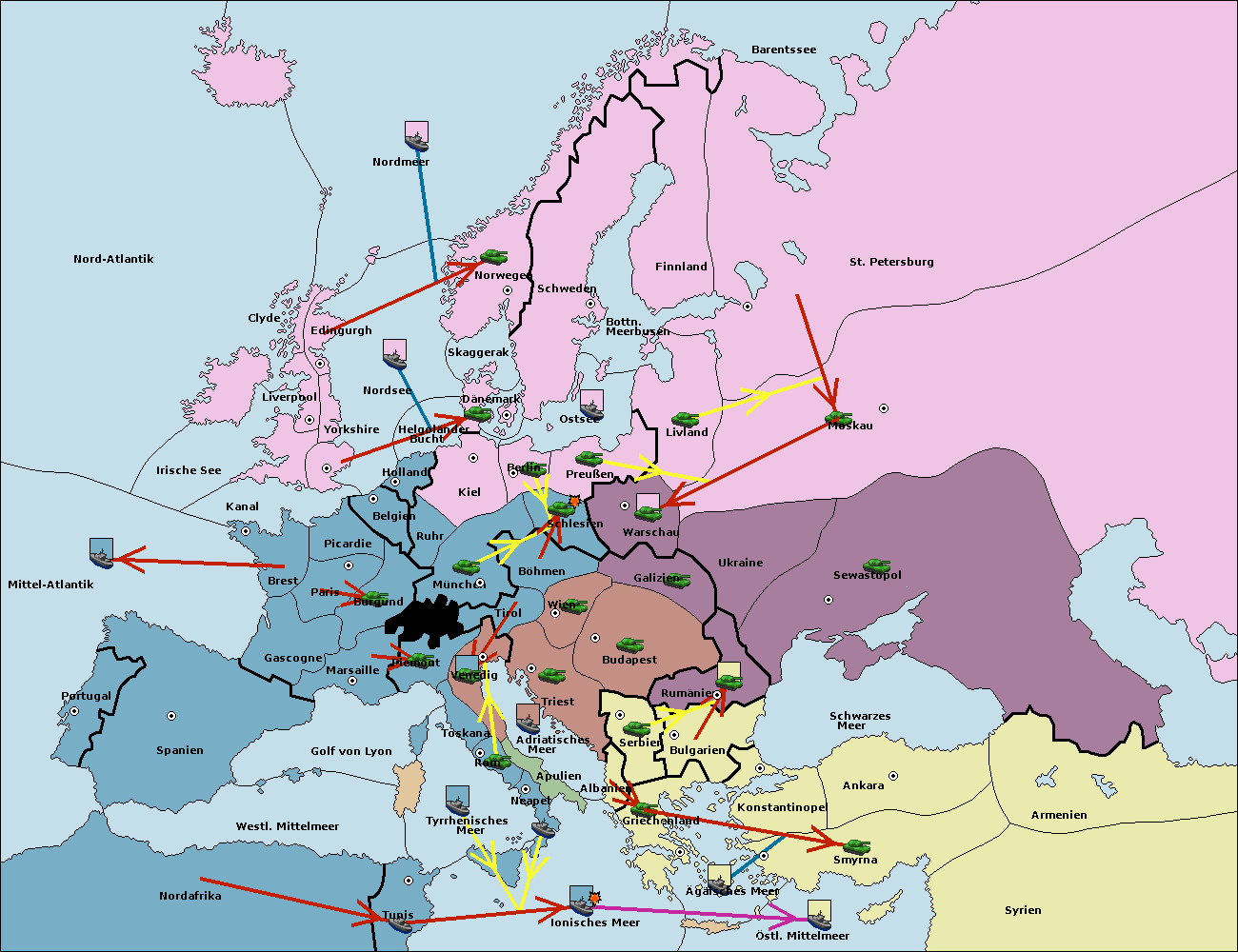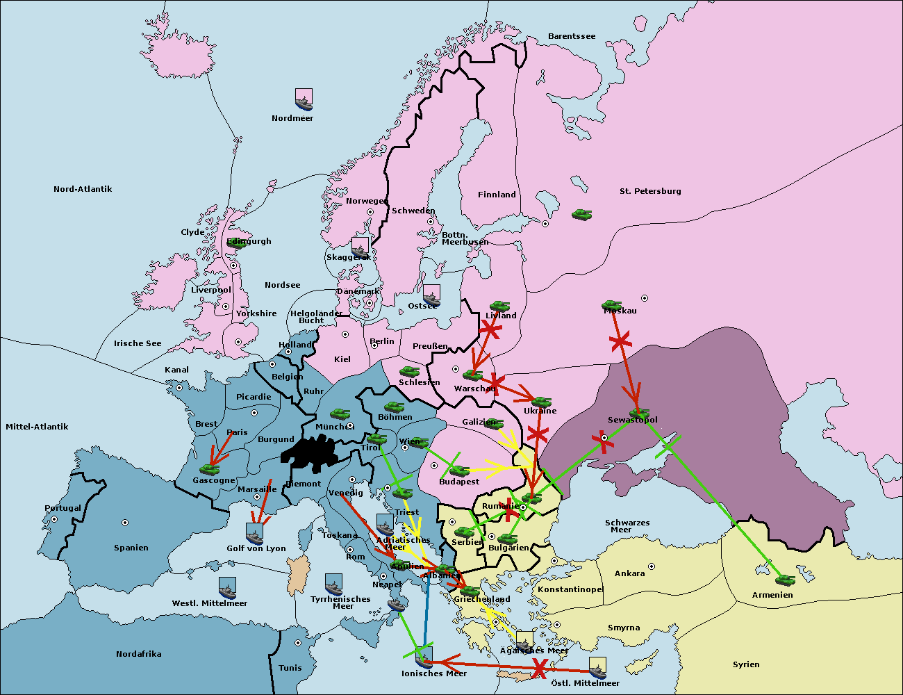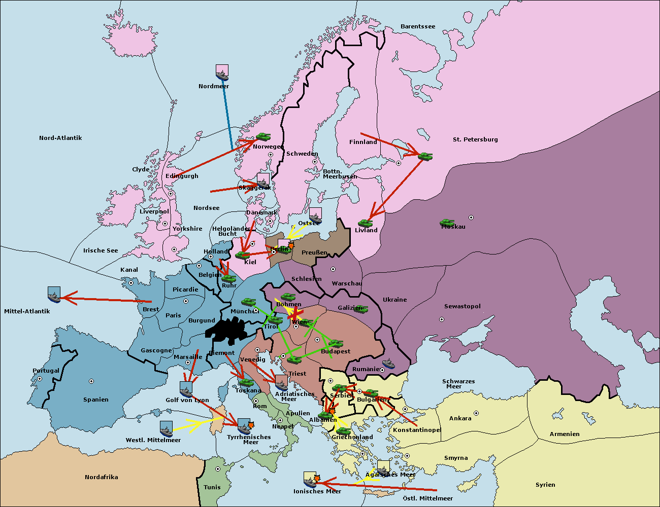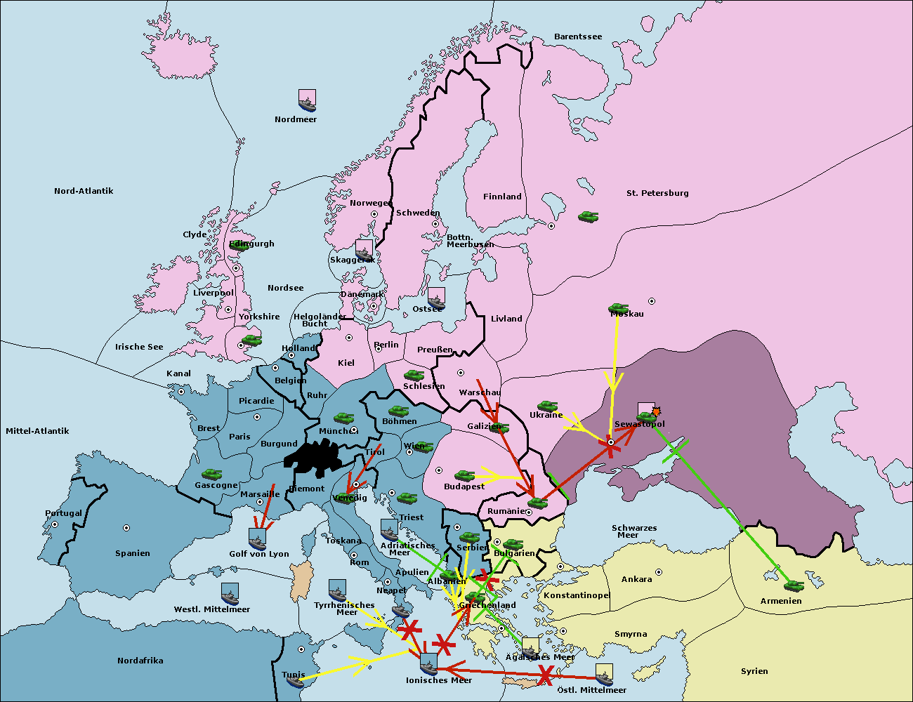 • Die Armee in Konstantinopel support hold nach Bulgarien.