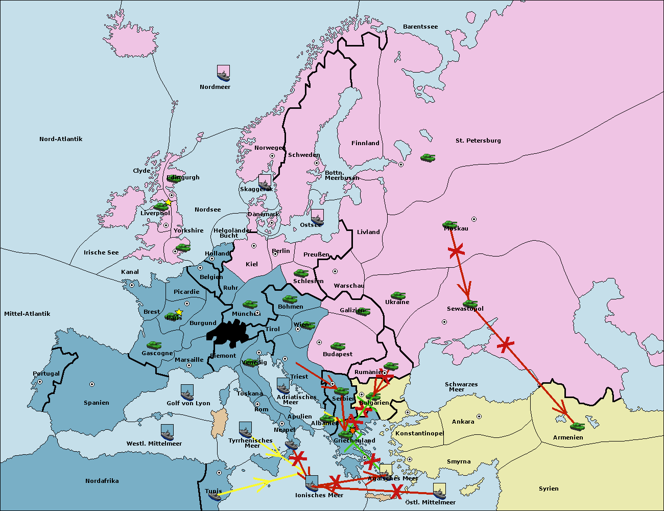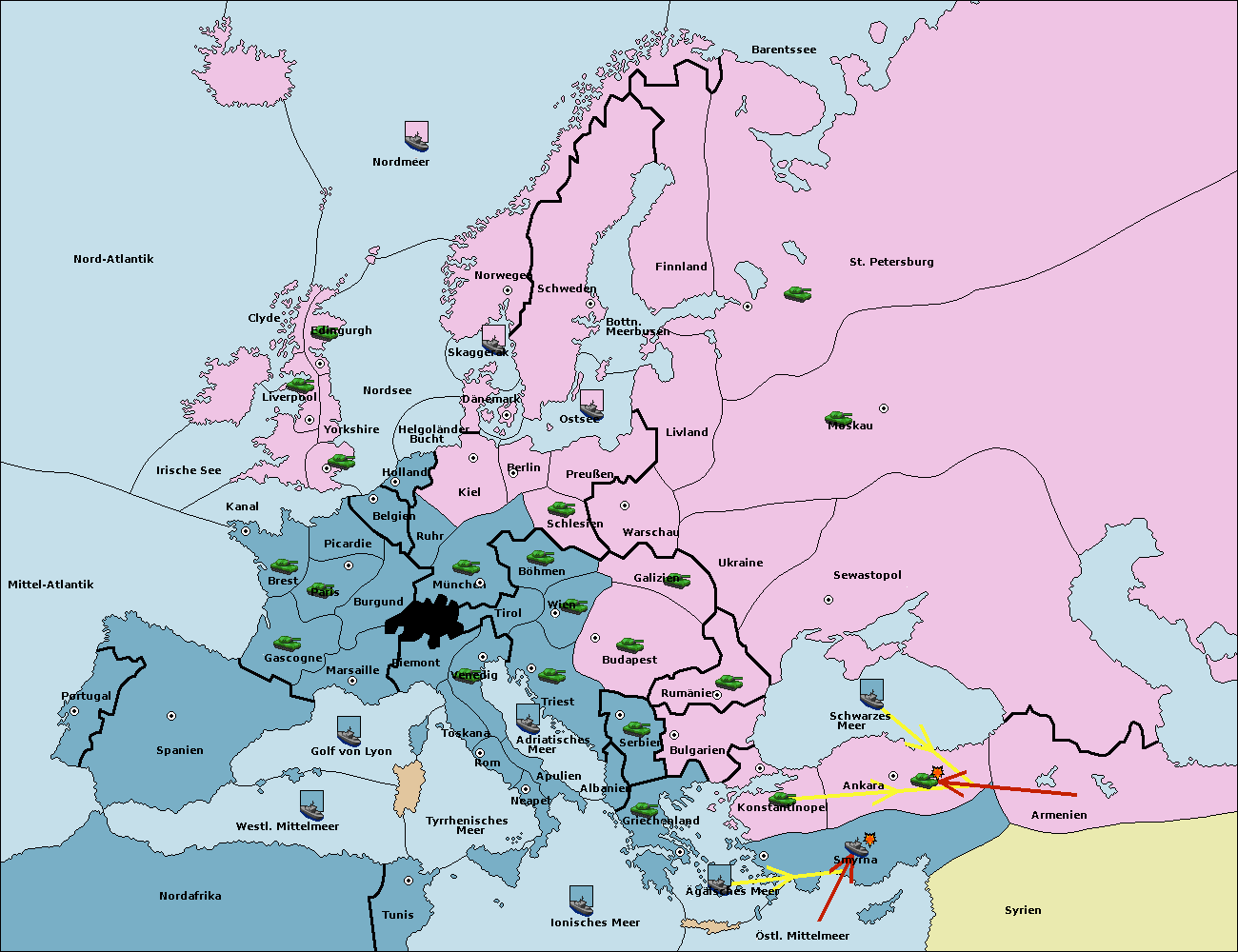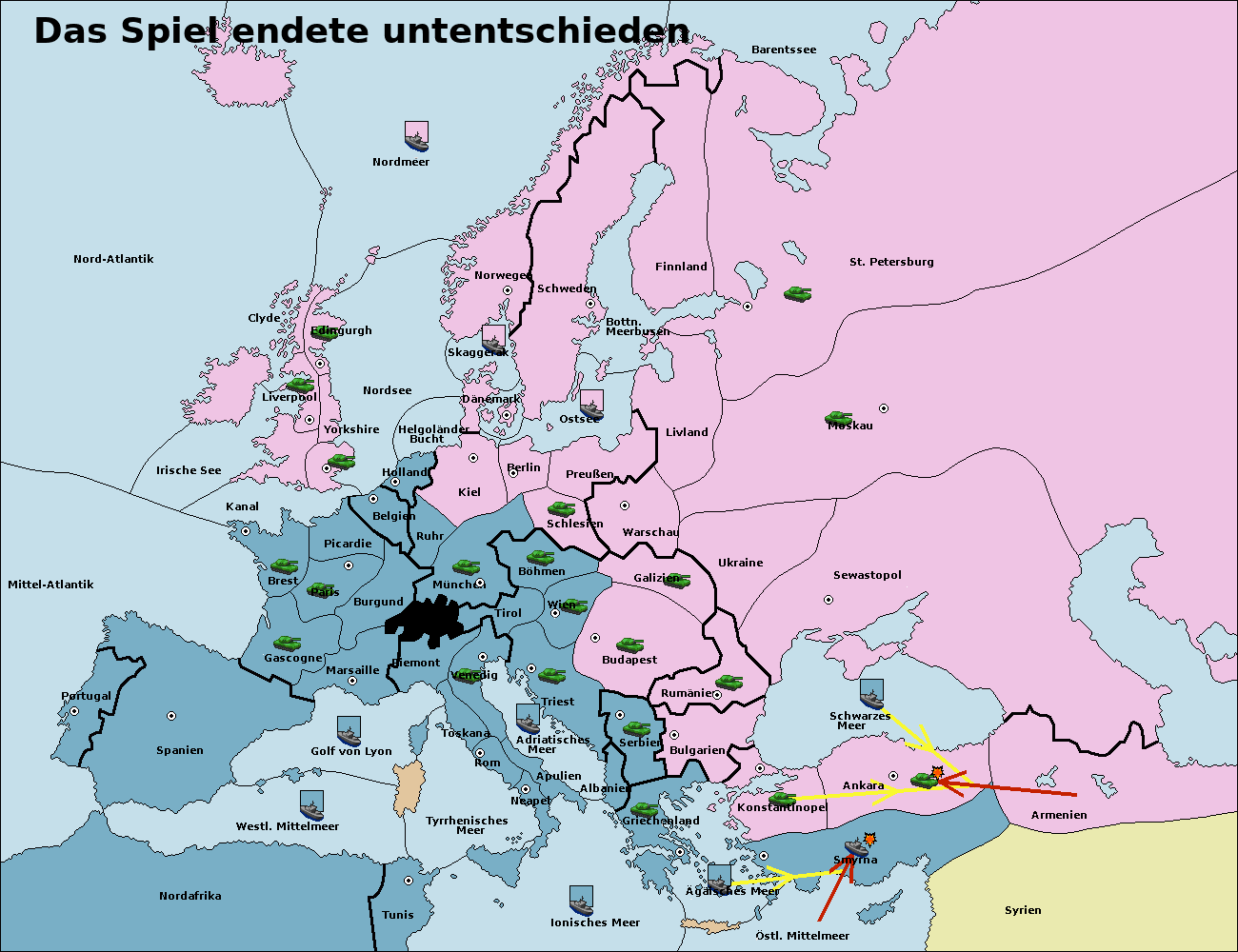 • Die Armee in Ankara wird zerstörtFlotte in Ankara gebaut.