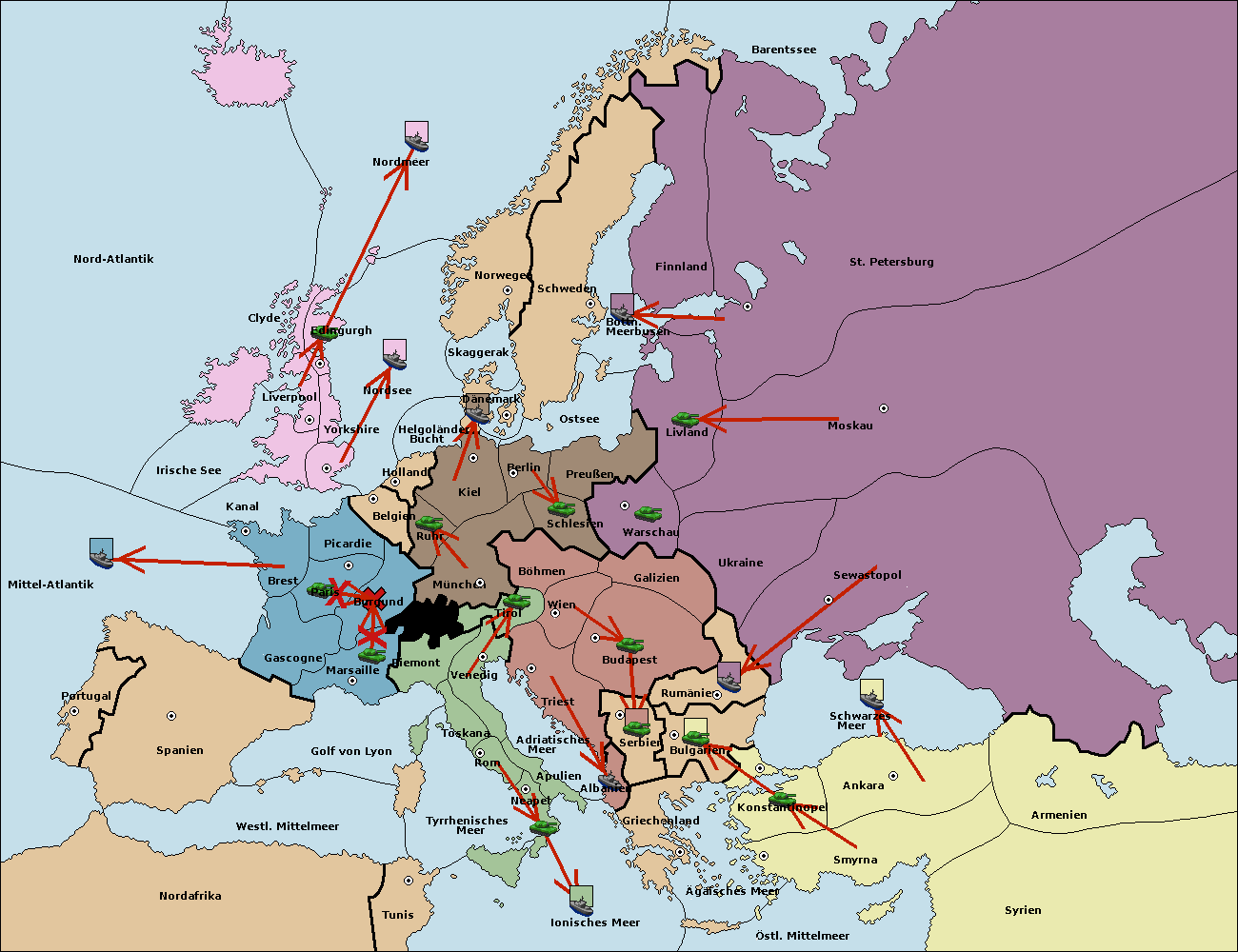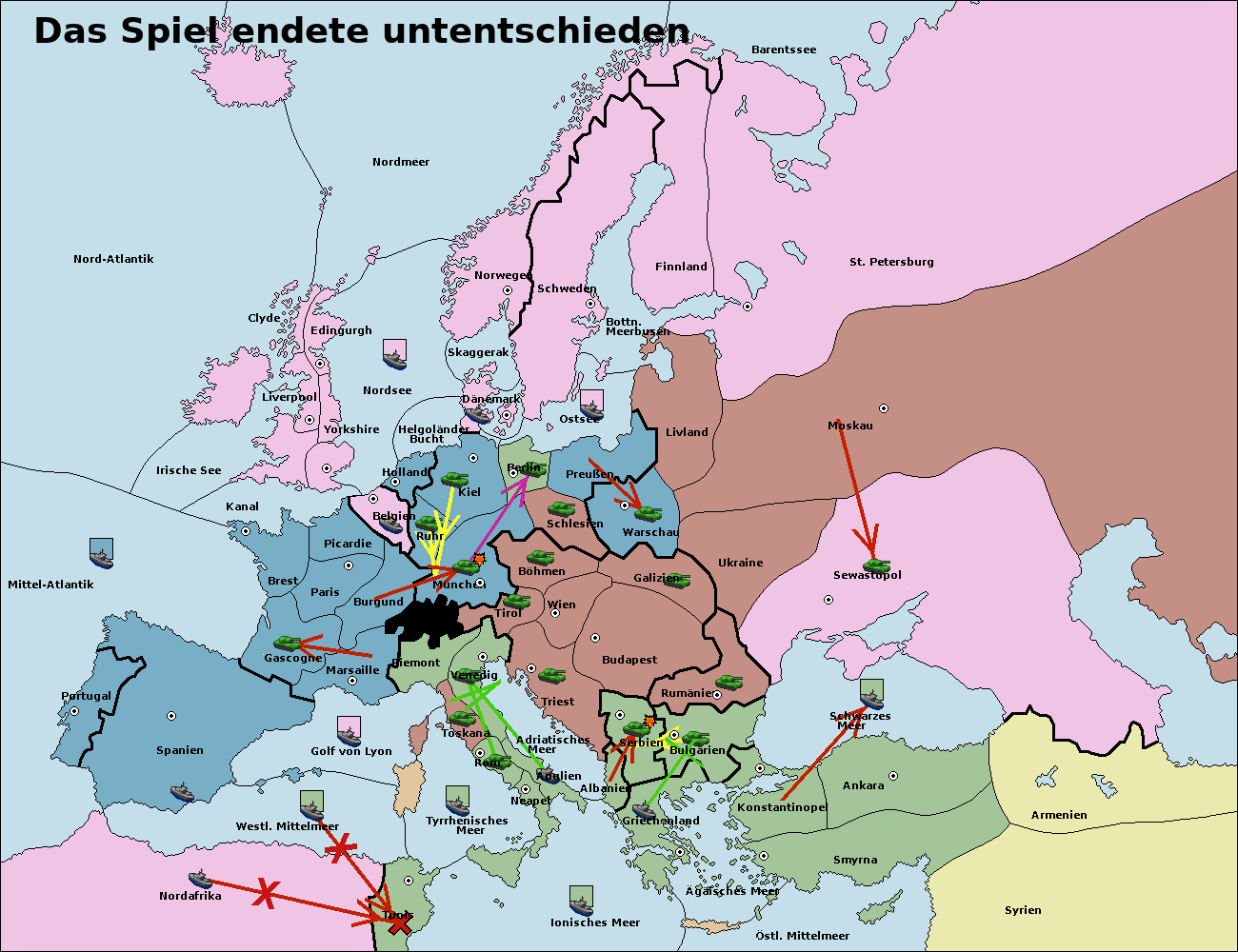 • Die Armee in Kiel support move nach München von Burgund.