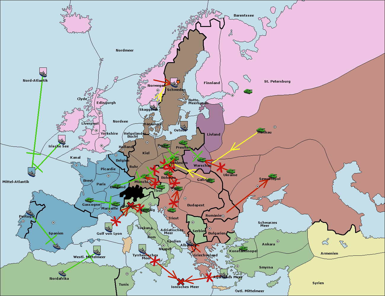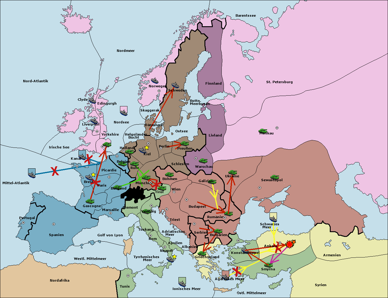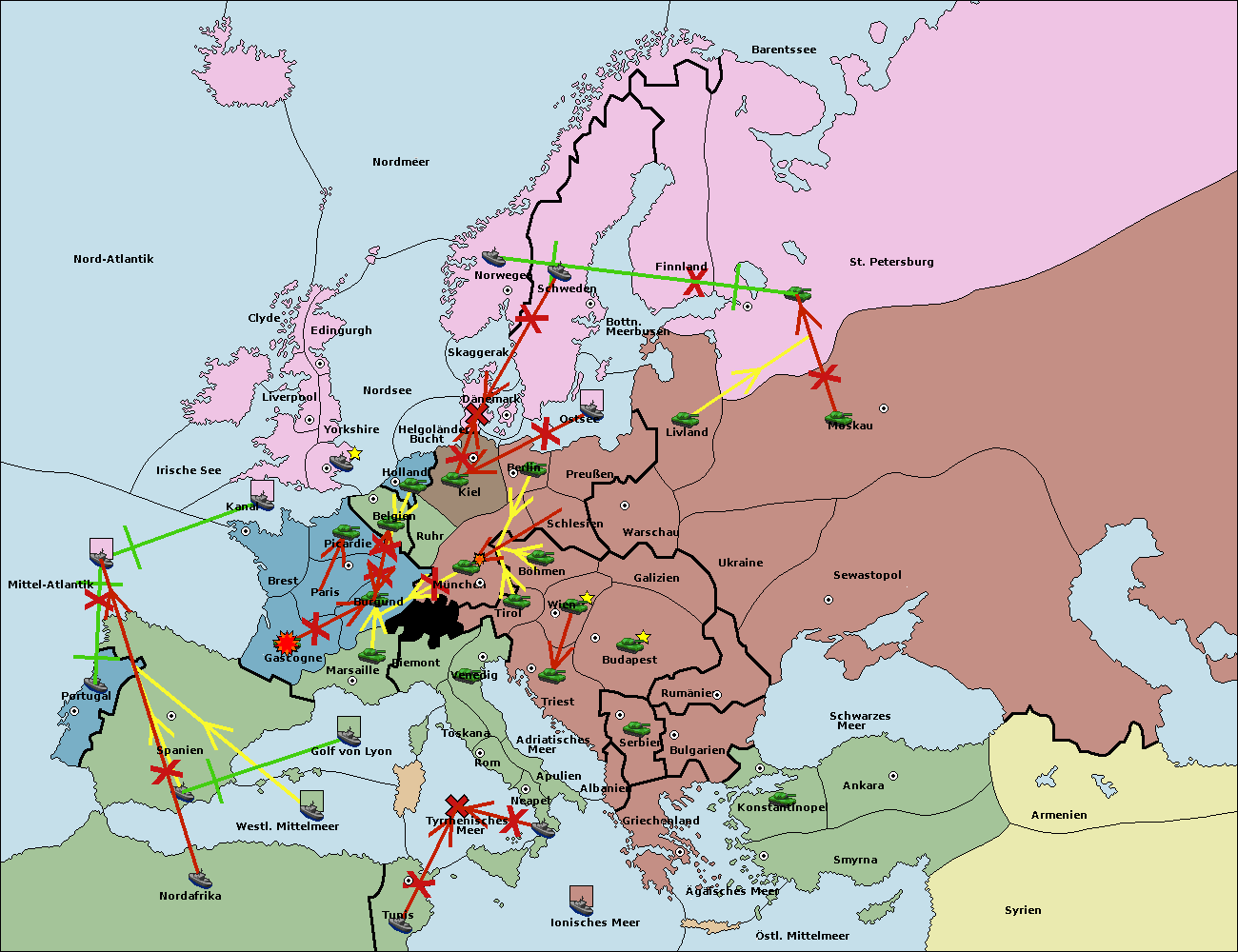 • Die Flotte in Nord Afrika move nach Tunis. (gescheitert)