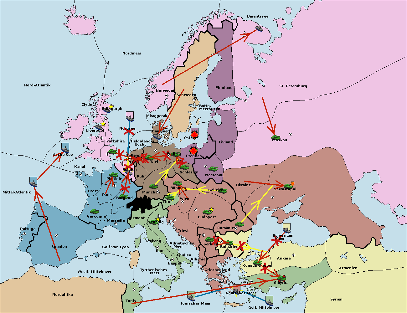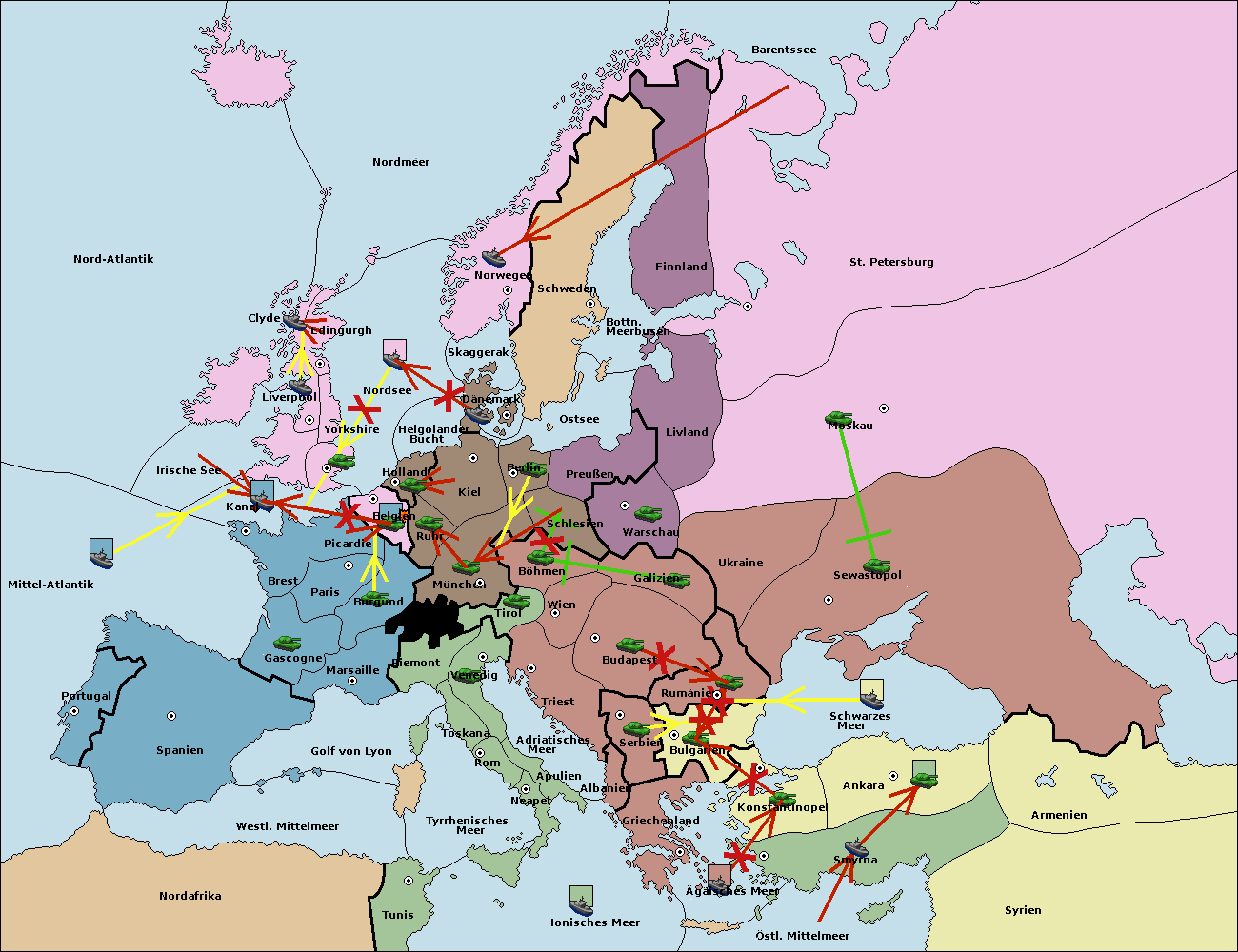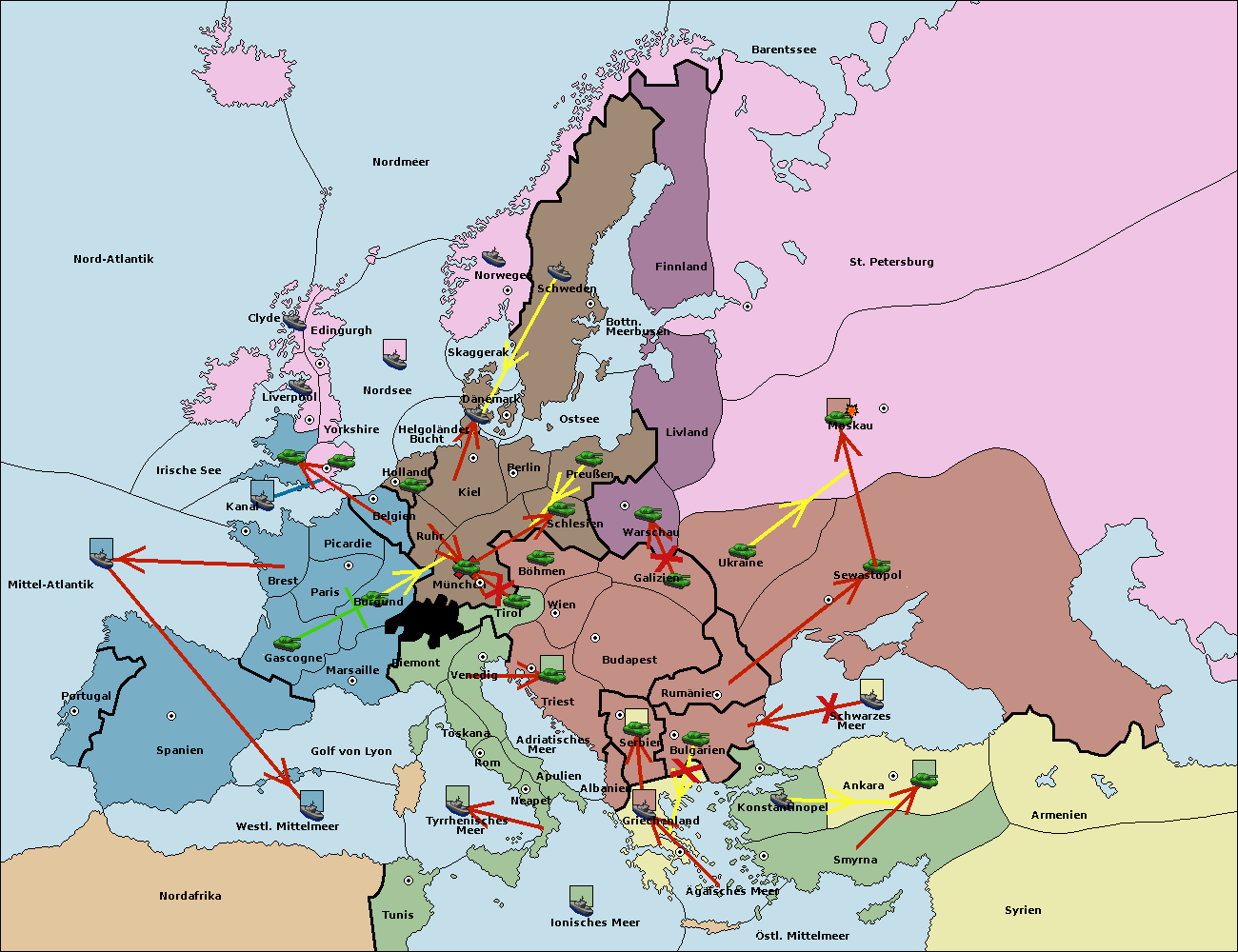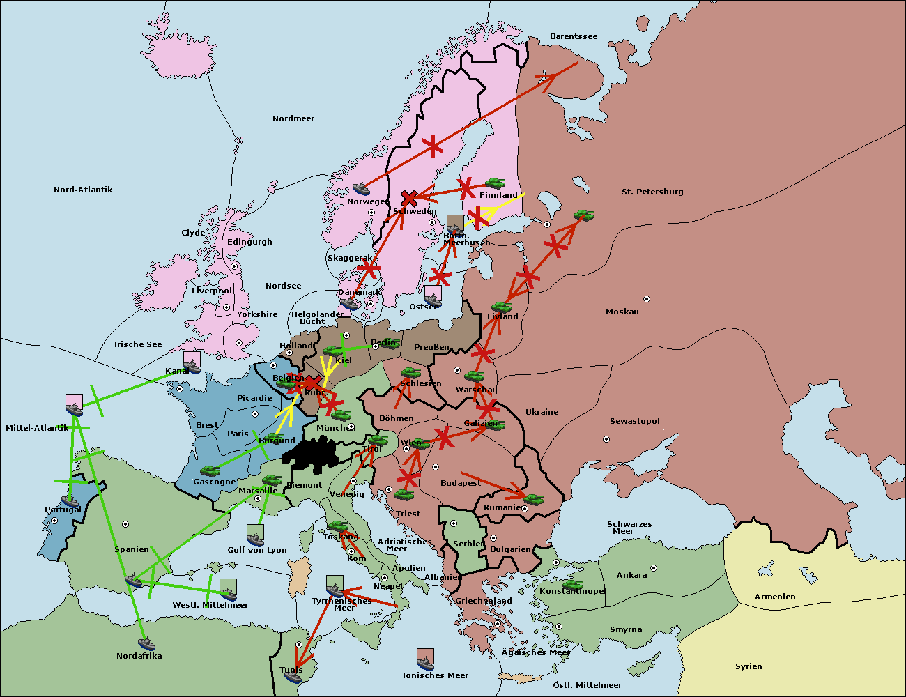 • Die Flotte in Nord Afrika move nach Tunis. (gescheitert)