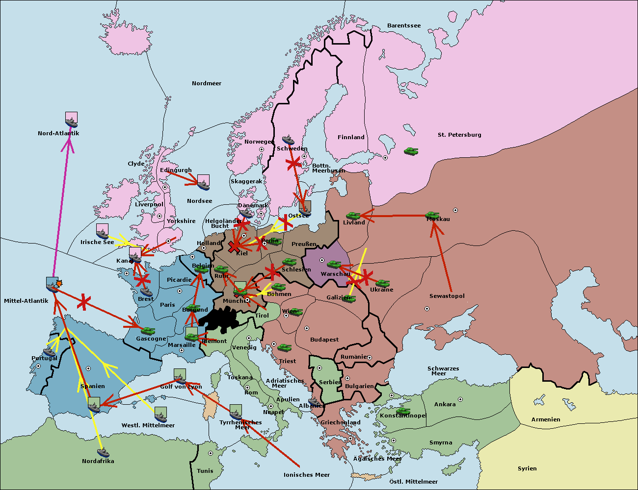 • Die Flotte in Dänemark support move nach Kiel von Ostsee. (gescheitert)