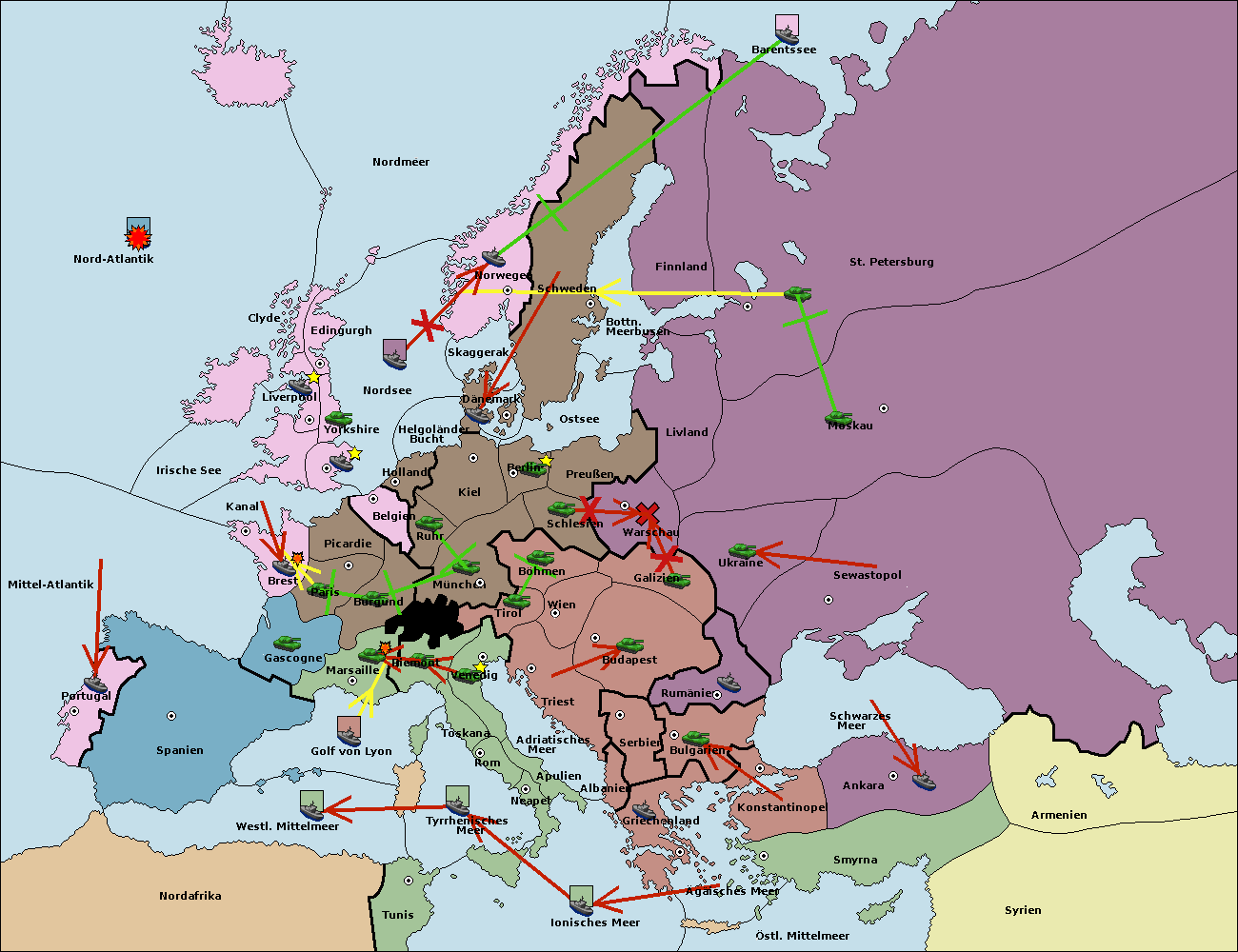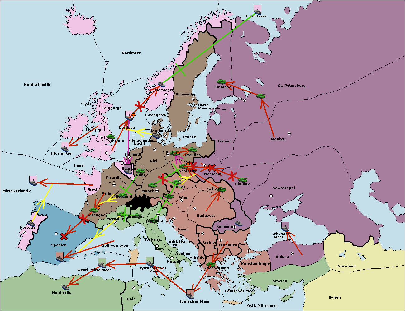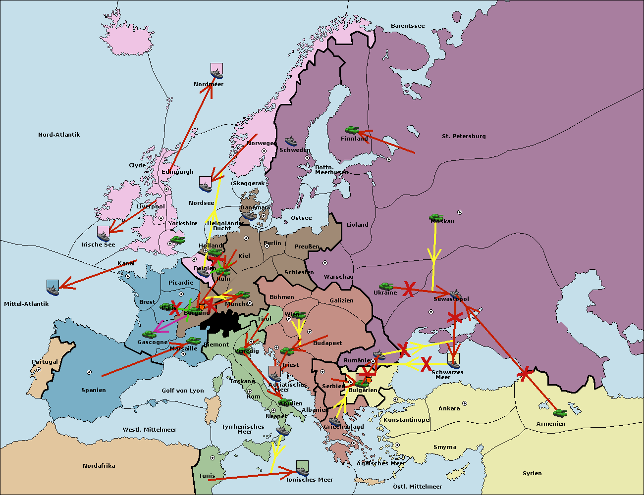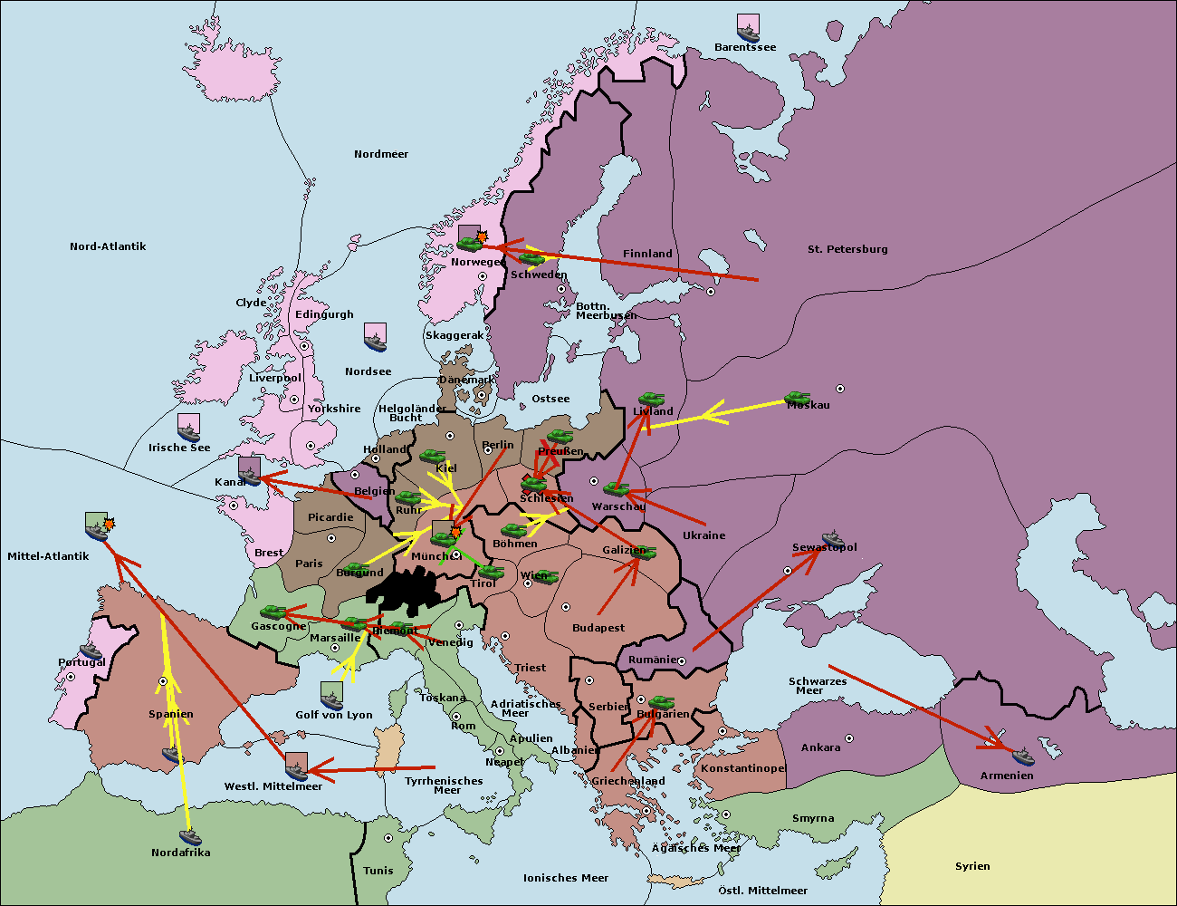 • Die Armee in Bulgarien wird zerstörtFlotte in Bulgarien gebaut.