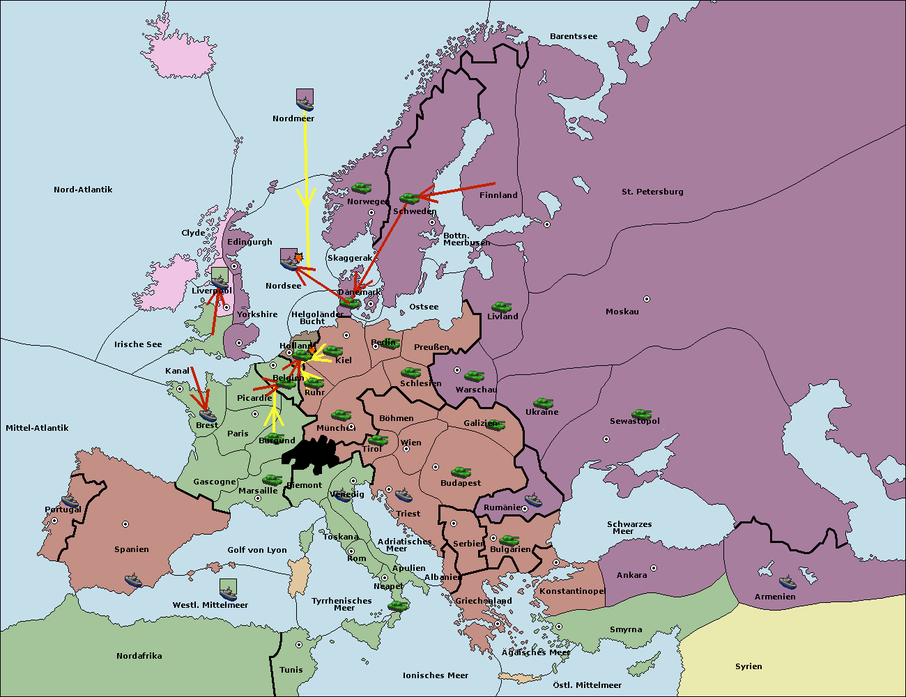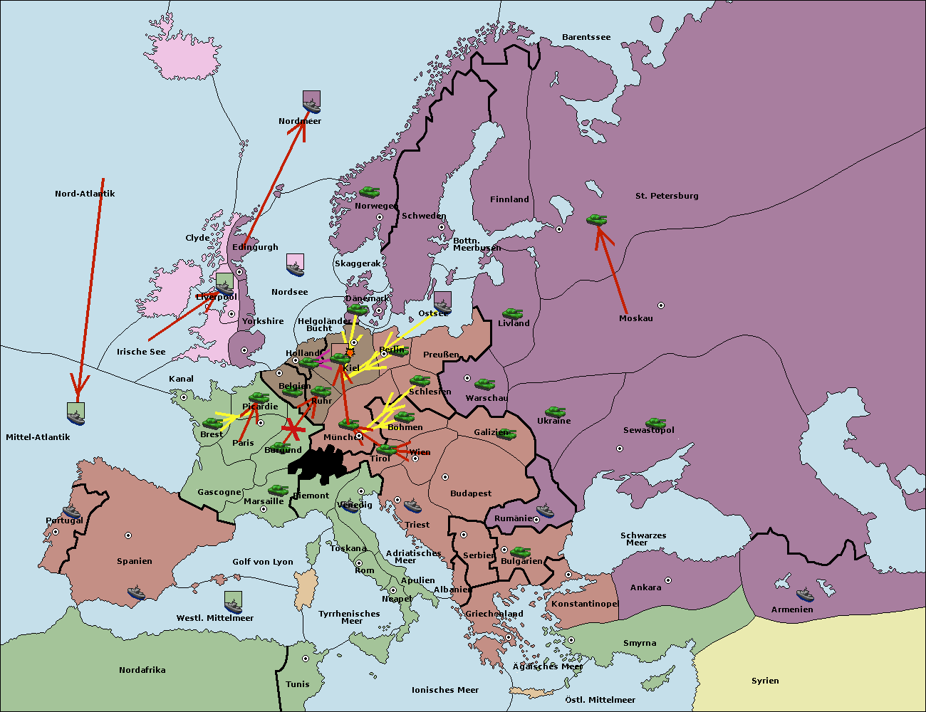 • Die Armee in Ruhr wird zerstörtFlotte in Ruhr gebaut.