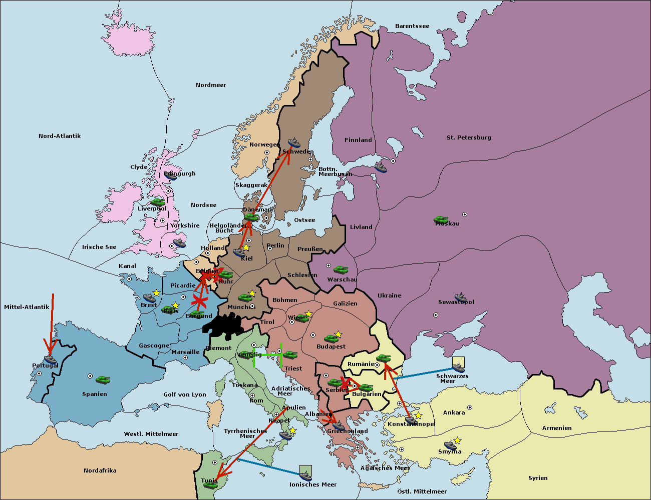 • Die Flotte in Rumänien support hold nach Bulgarien. (gescheitert)