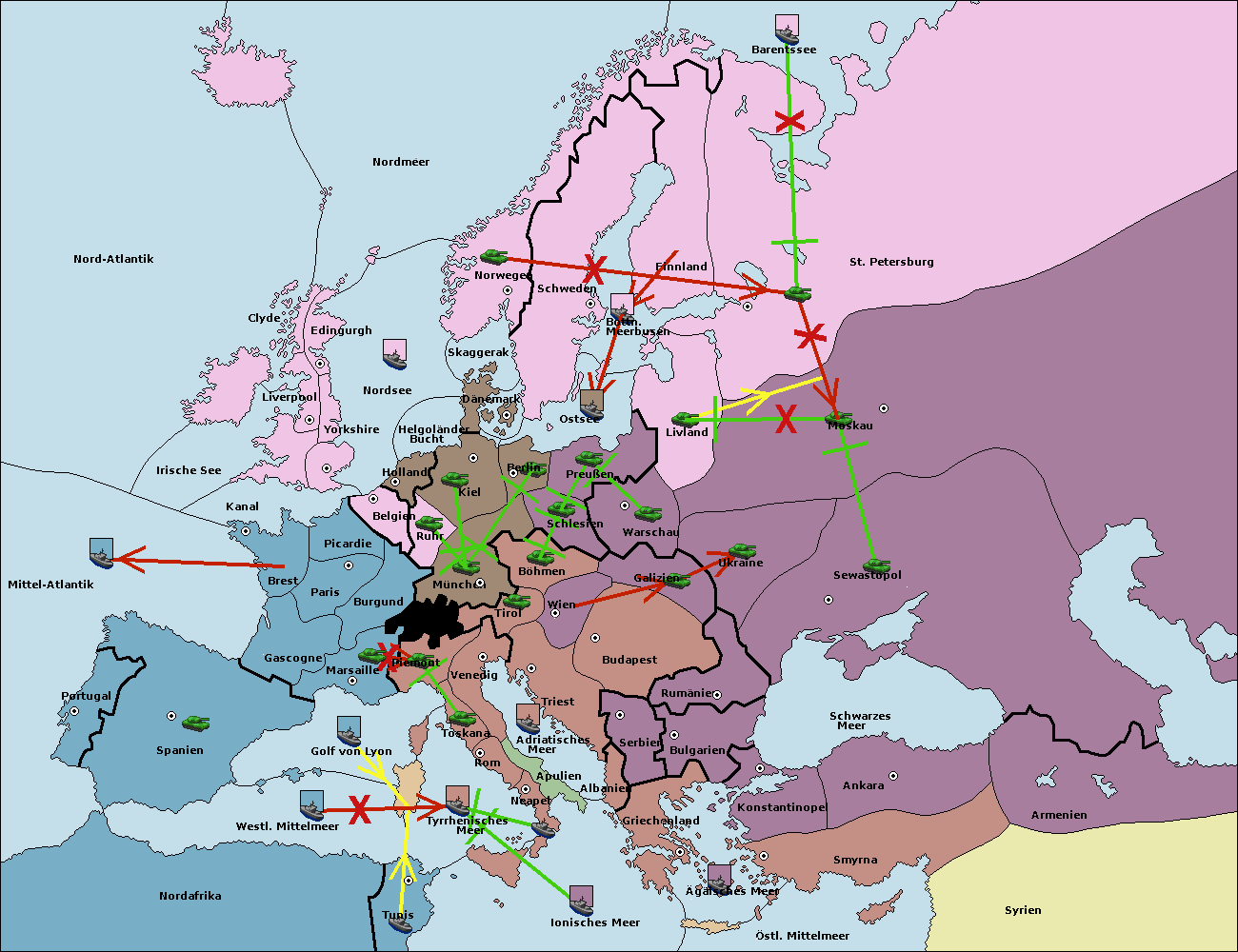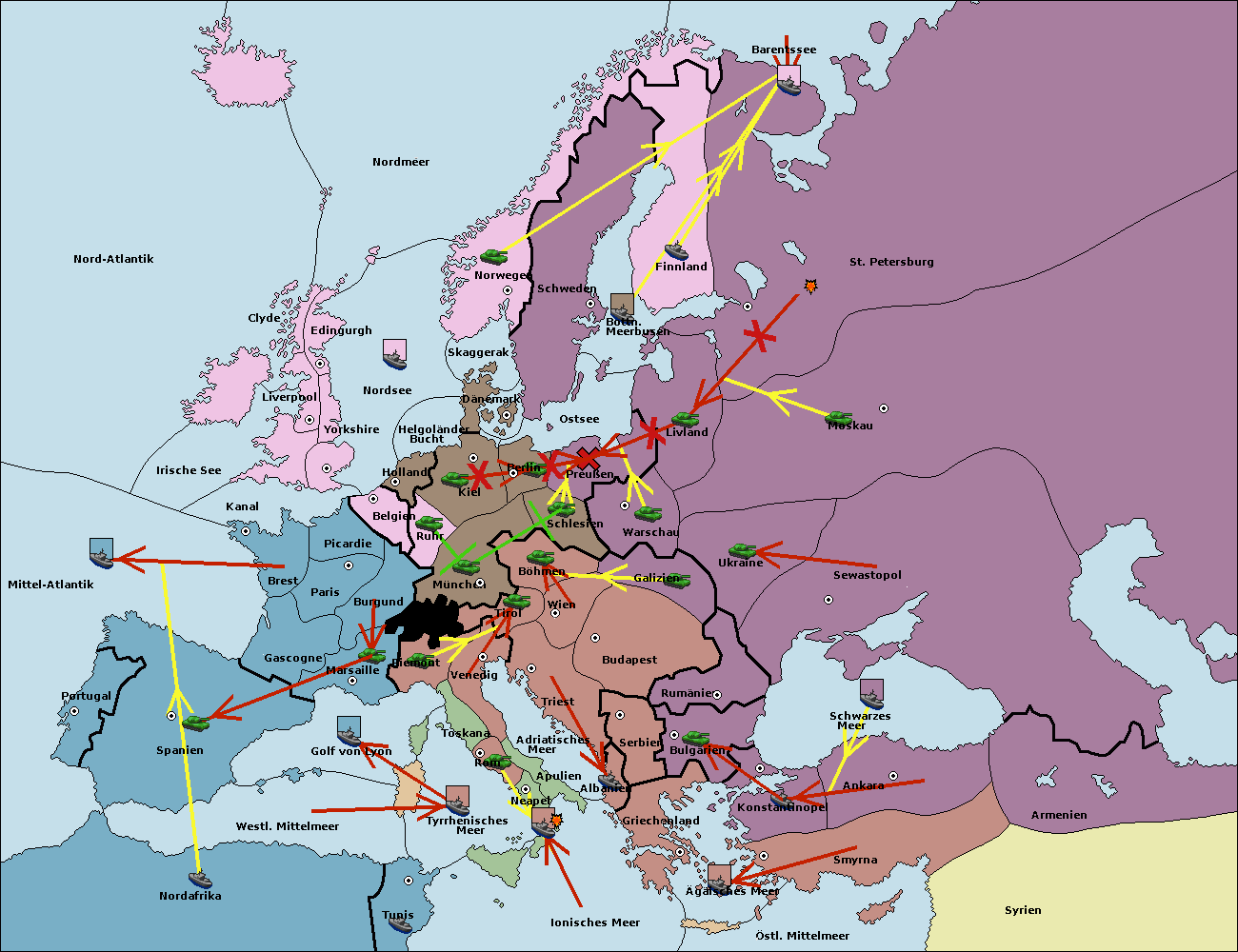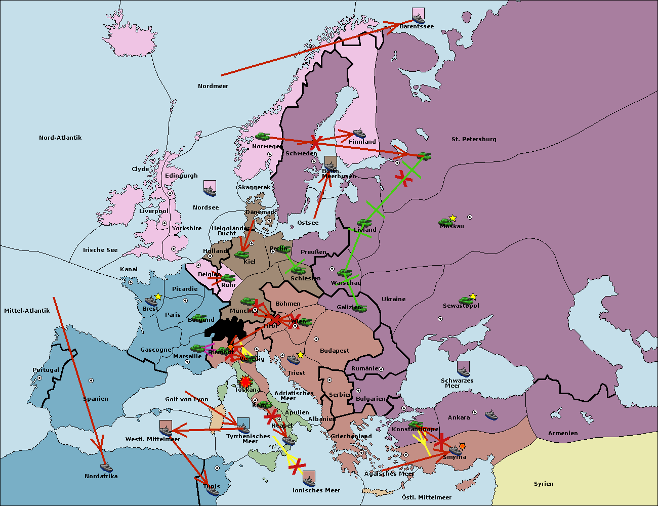 • Die Flotte in St. Petersburg (Nordküste) move nach Barentssee.