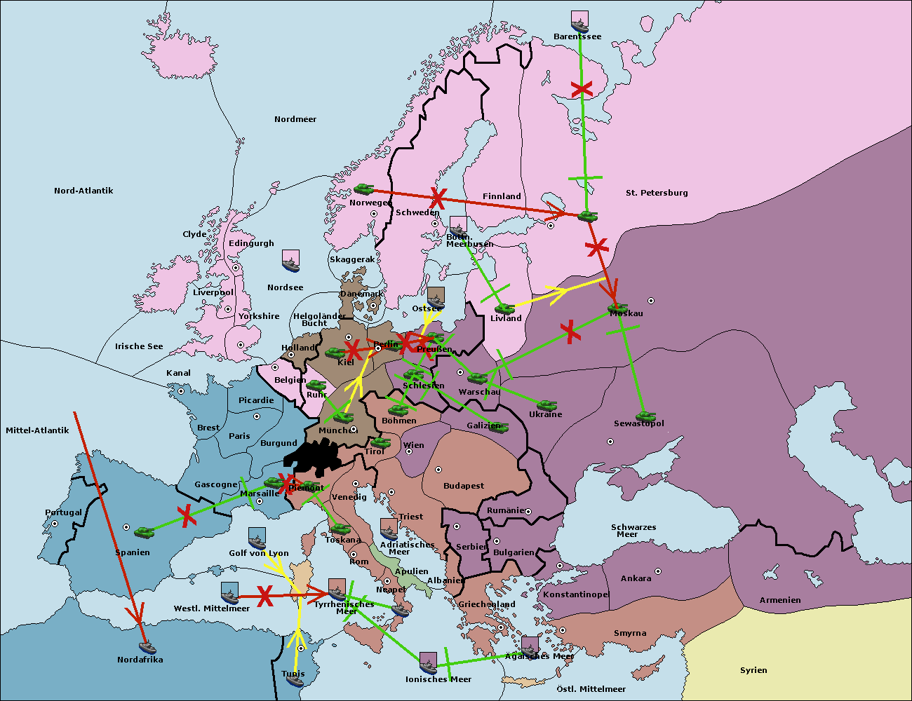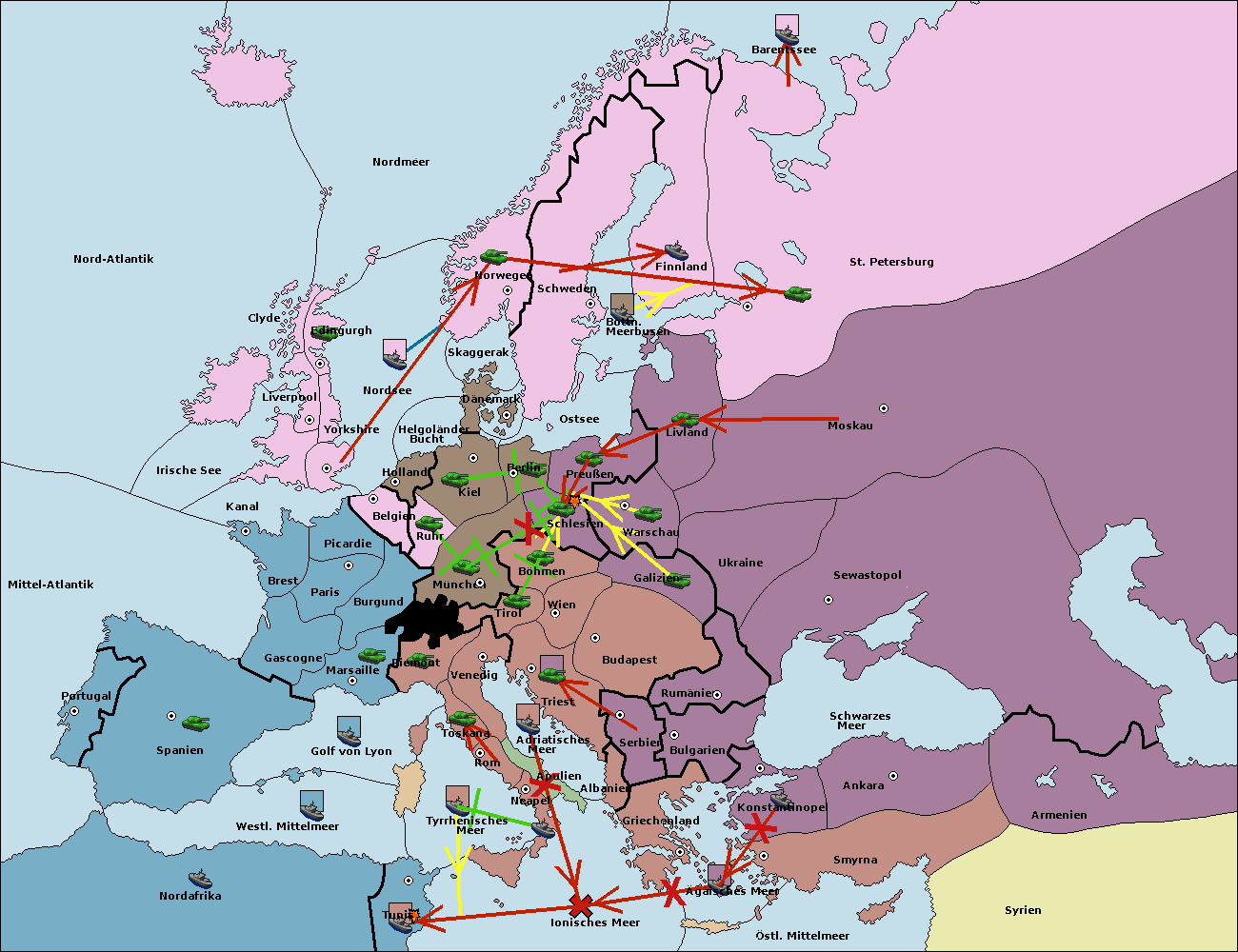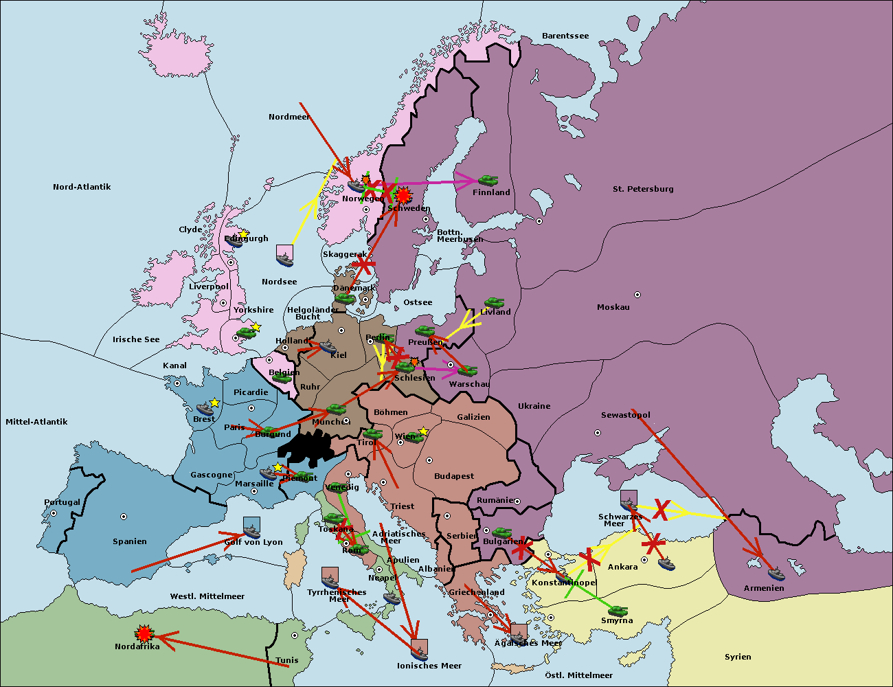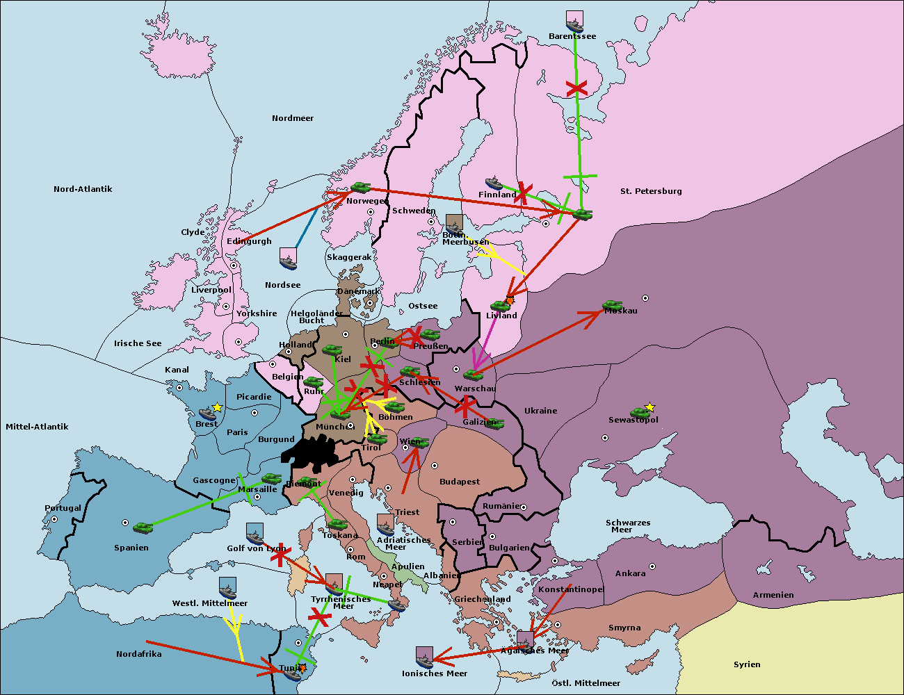 • Die Flotte in St. Petersburg (Nordküste) move nach Barentssee.