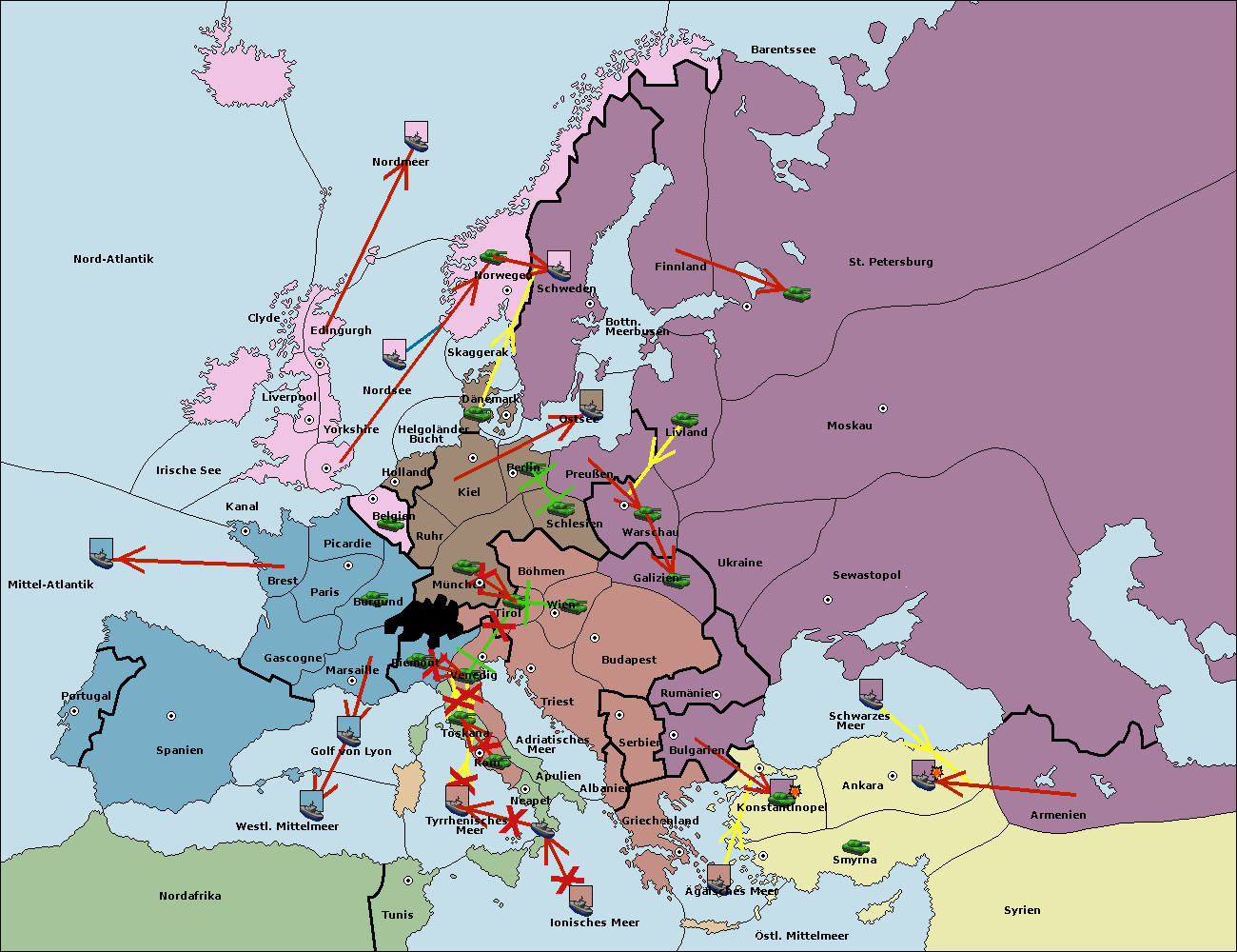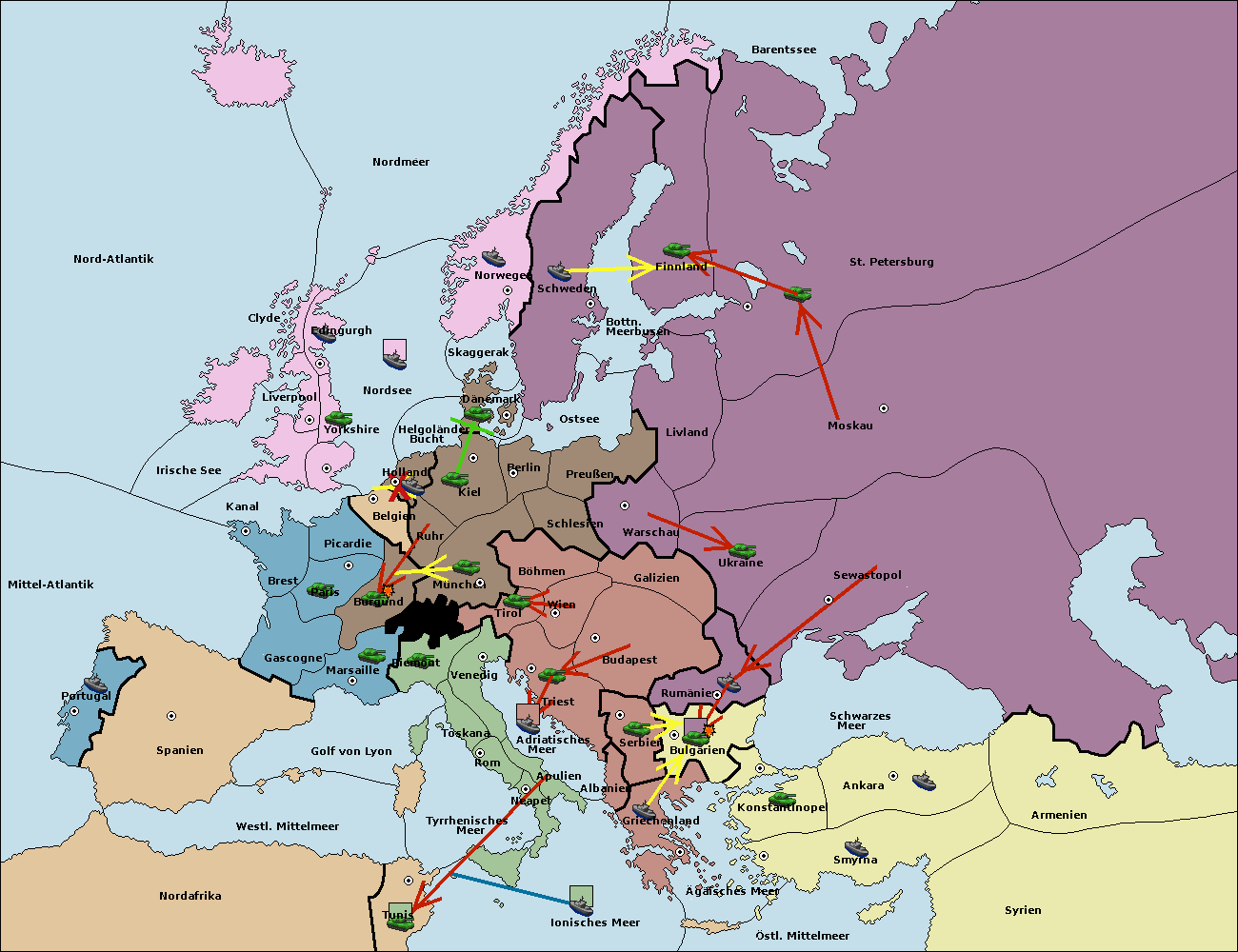 • Die Armee in Bulgarien wird zerstörtFlotte in Bulgarien gebaut.