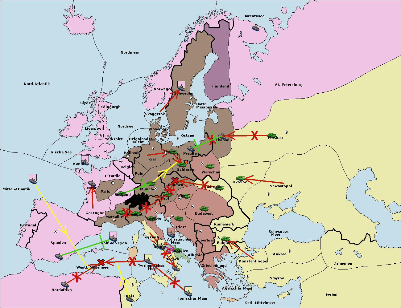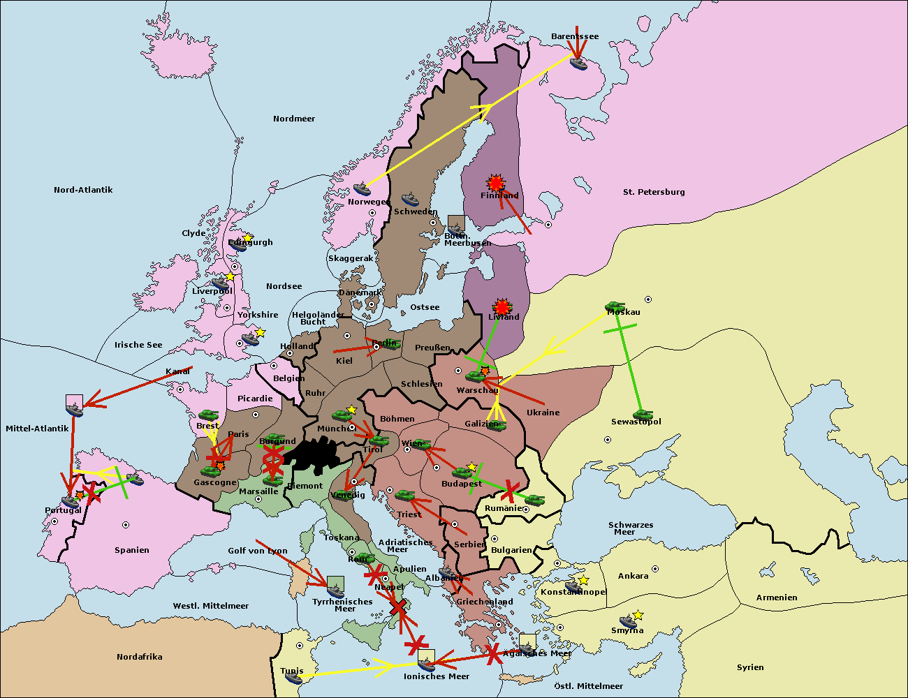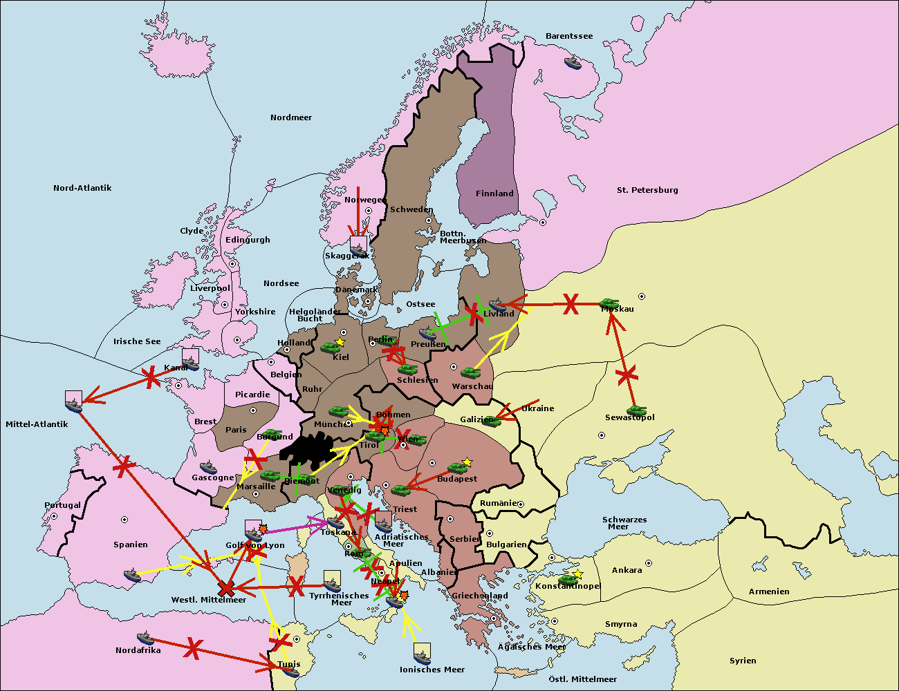 • Die Flotte in Nord Afrika move nach Tunis. (gescheitert)