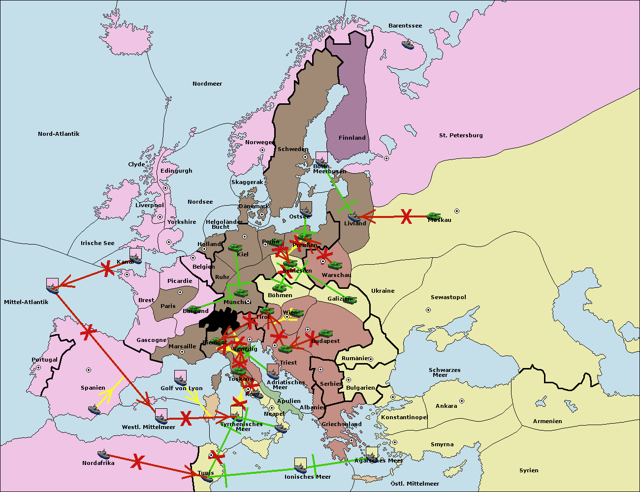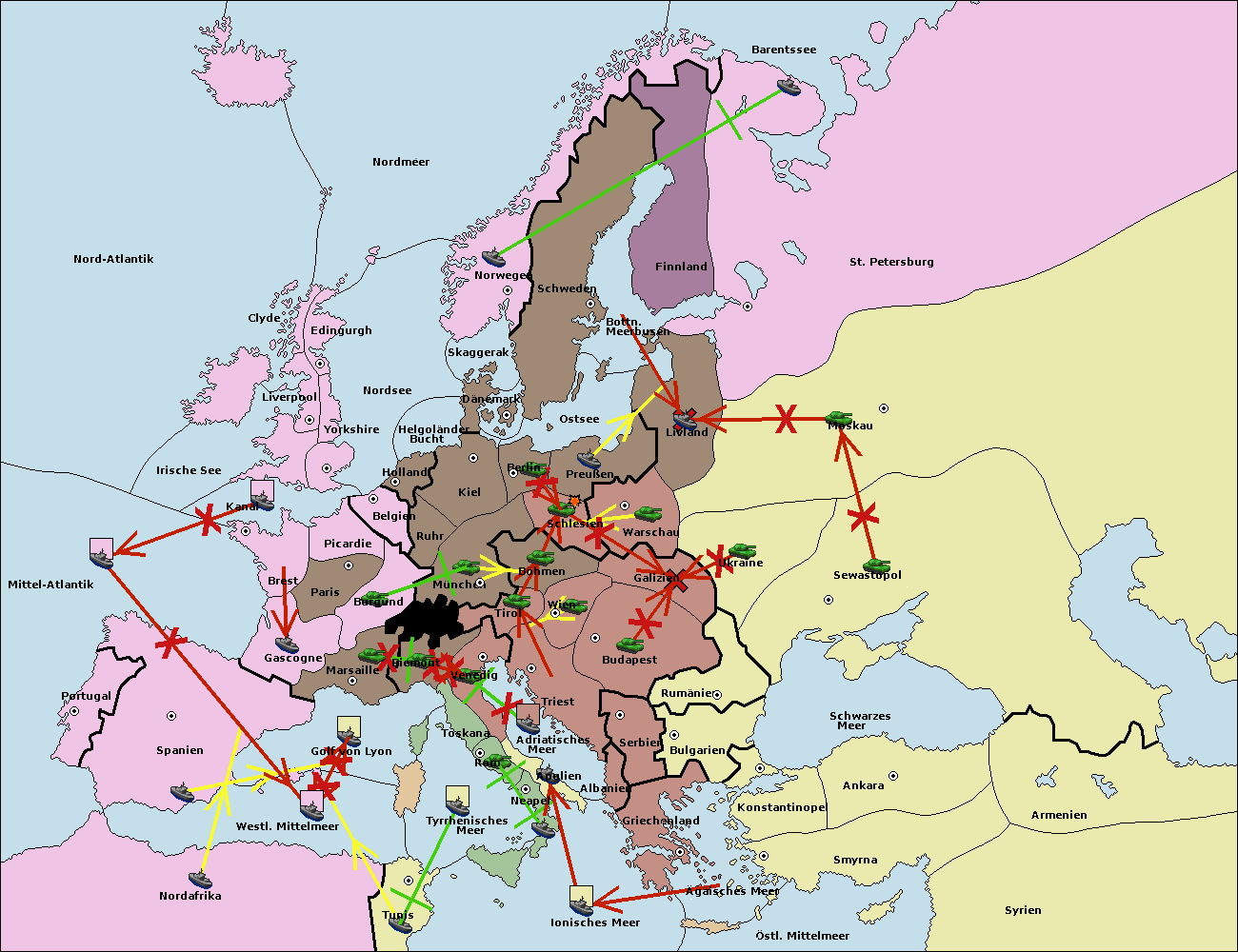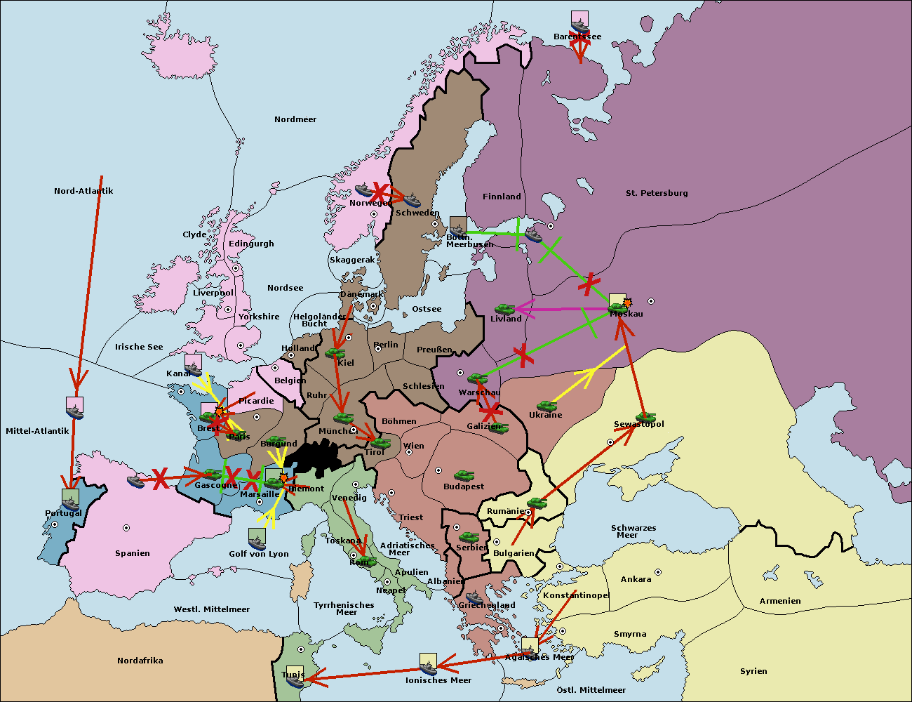 • Die Flotte in Nord Afrika move nach Tunis. (gescheitert)