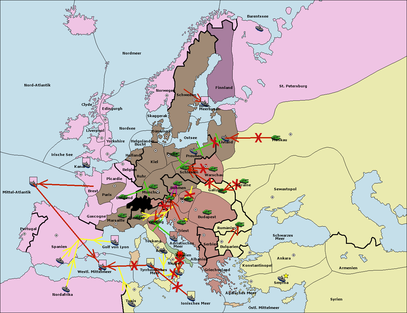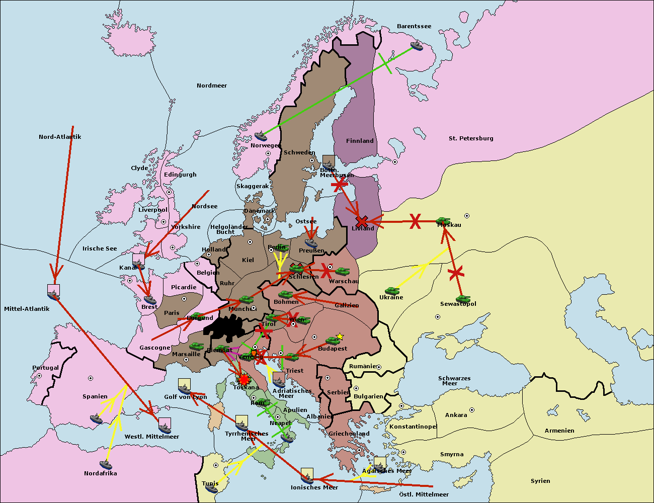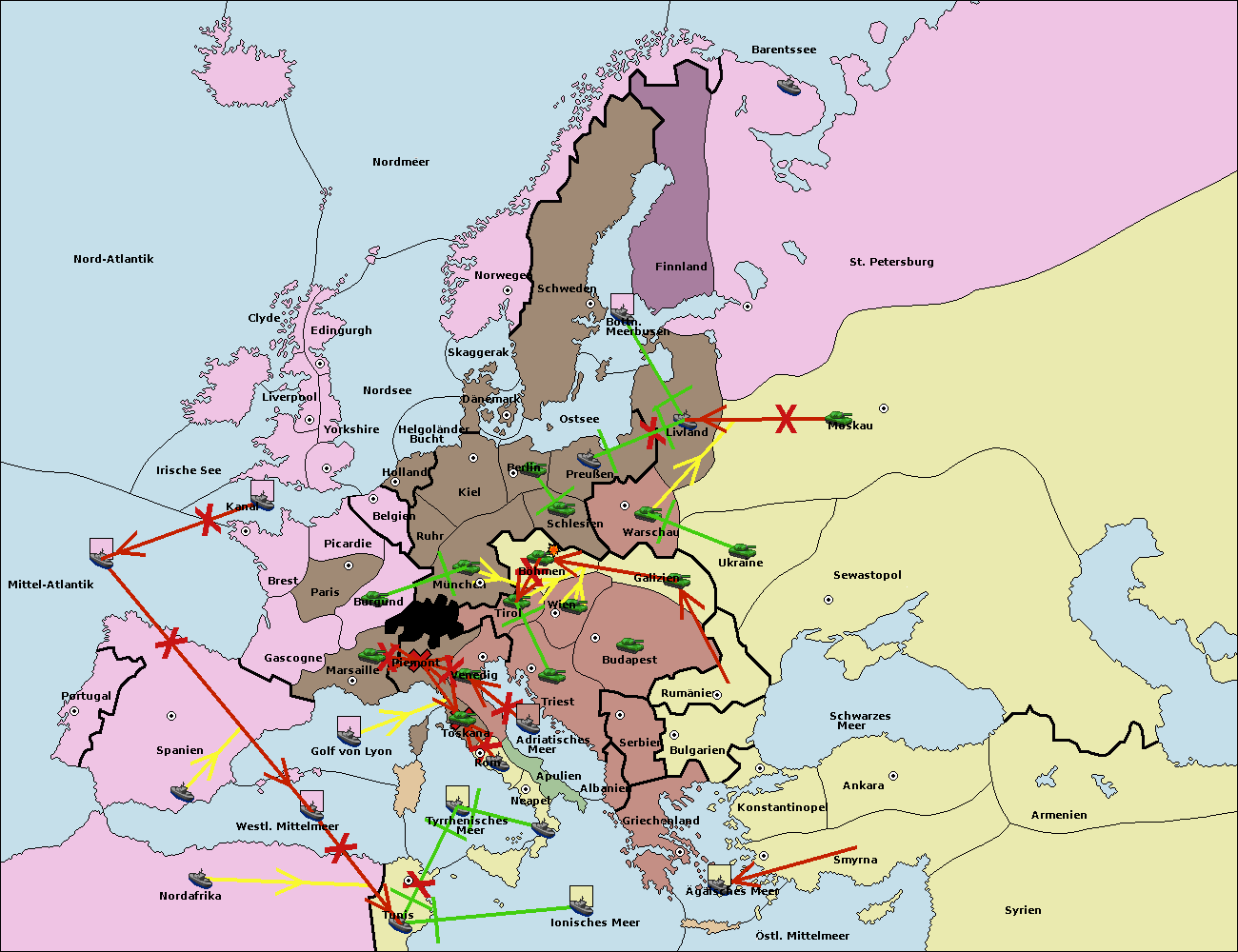 • Die Flotte in Nord Afrika support move nach Tunis von westl. Mittelmeer.