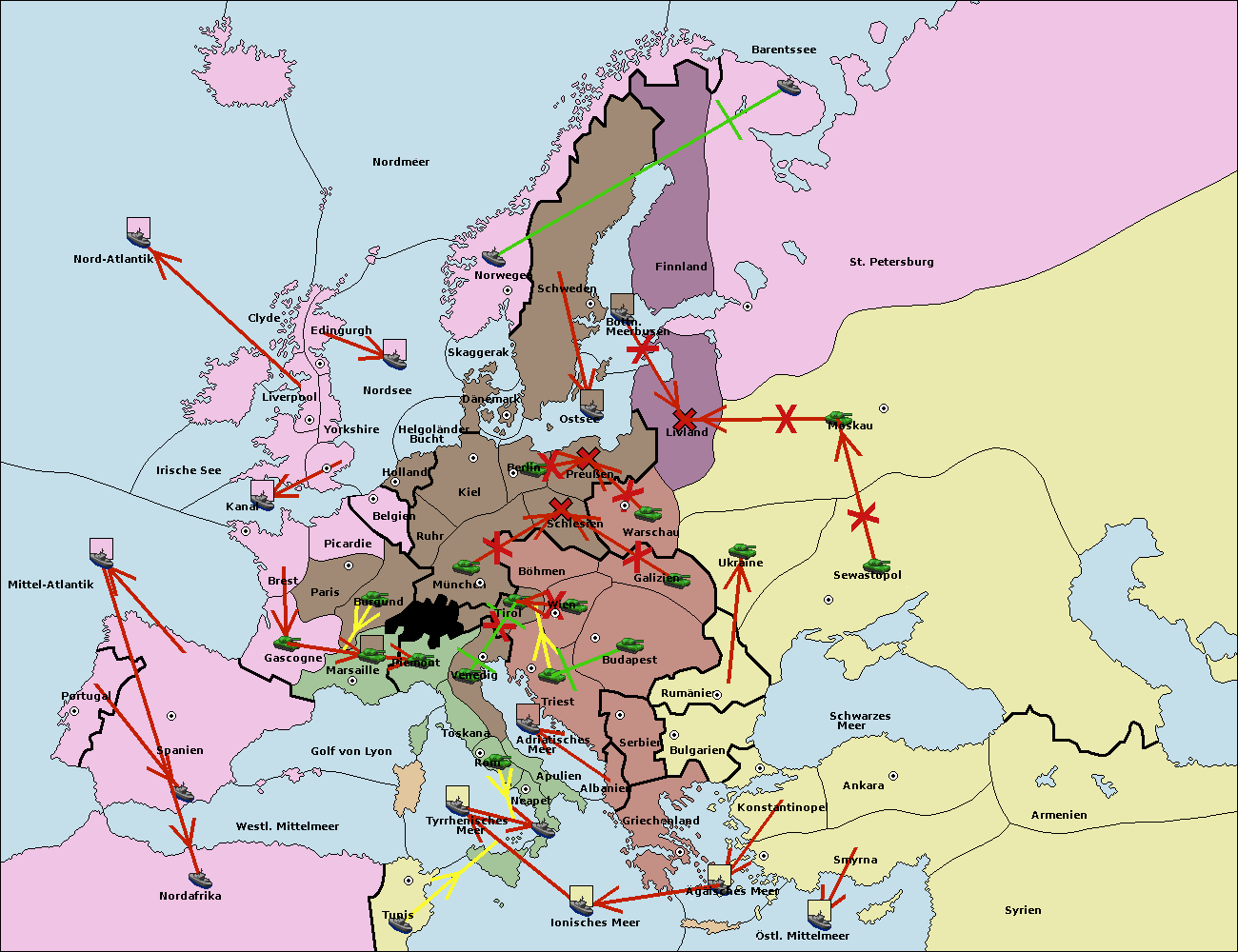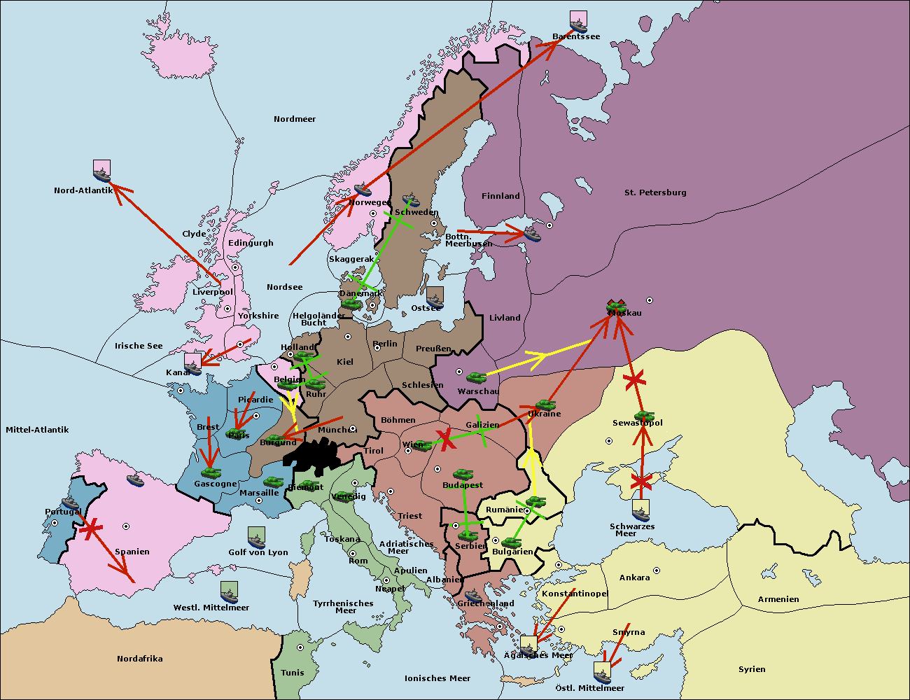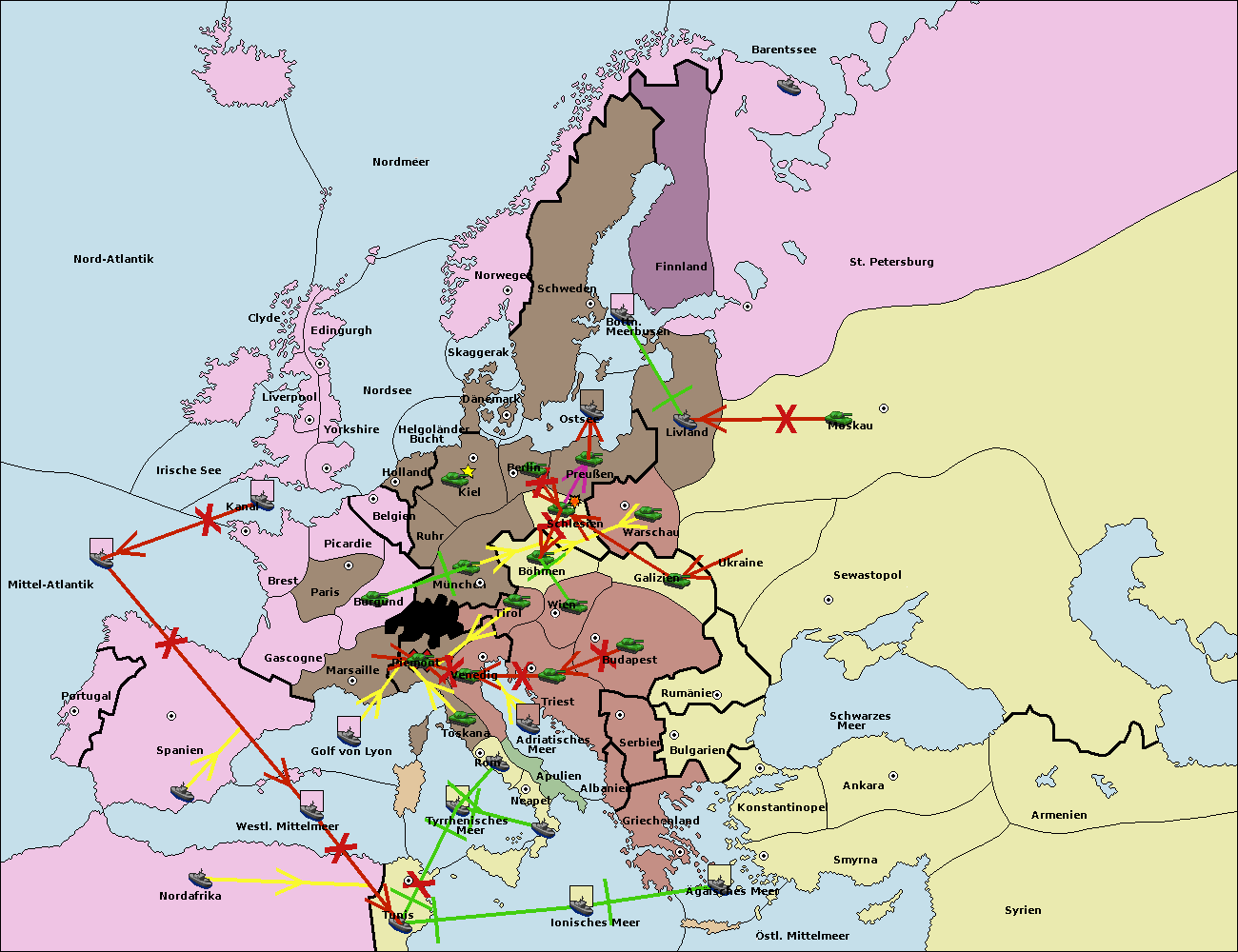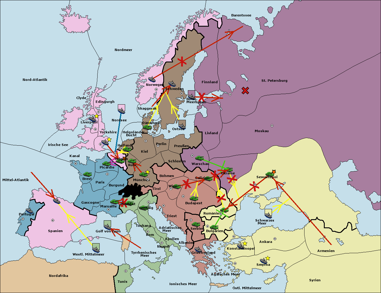 • Die Flotte in Nord Afrika support move nach Tunis von westl. Mittelmeer.