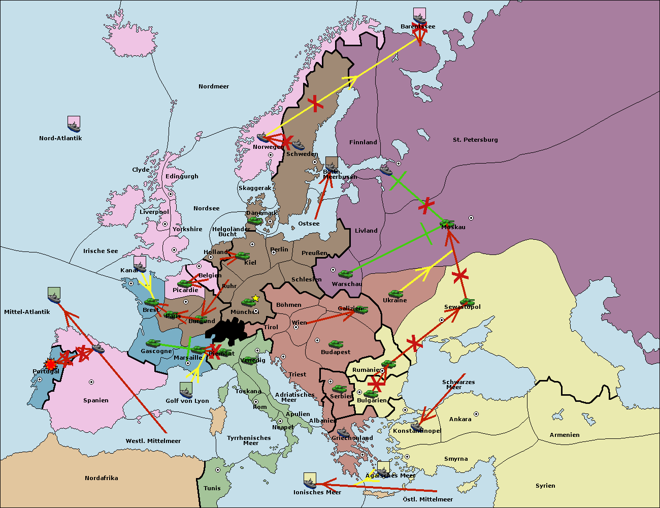 • Die Flotte in Spanien (Südküste) support move nach westl. Mittelmeer von Mittel-Atlantik.