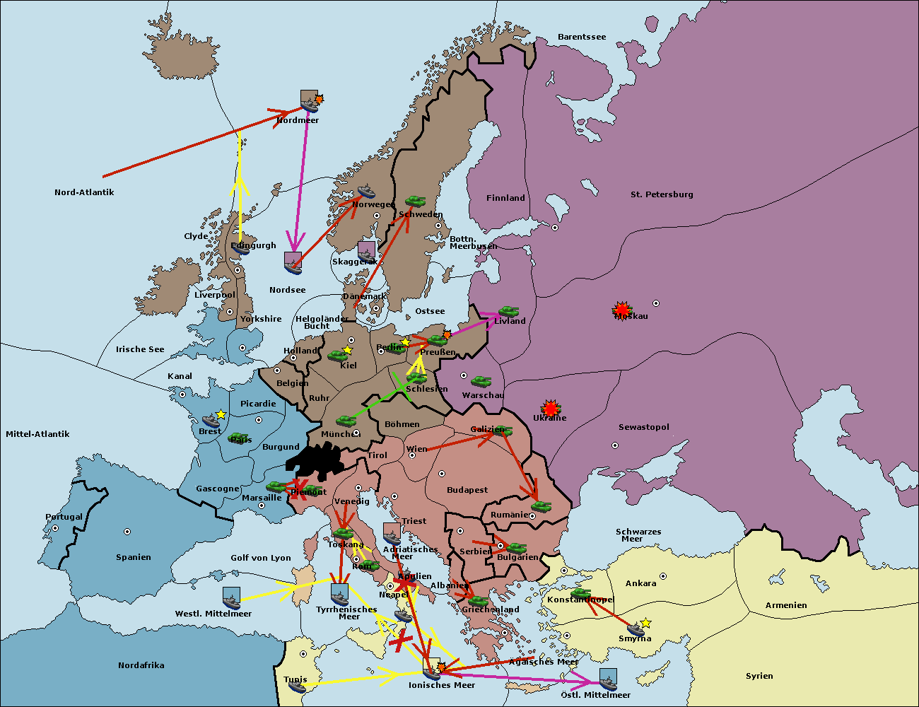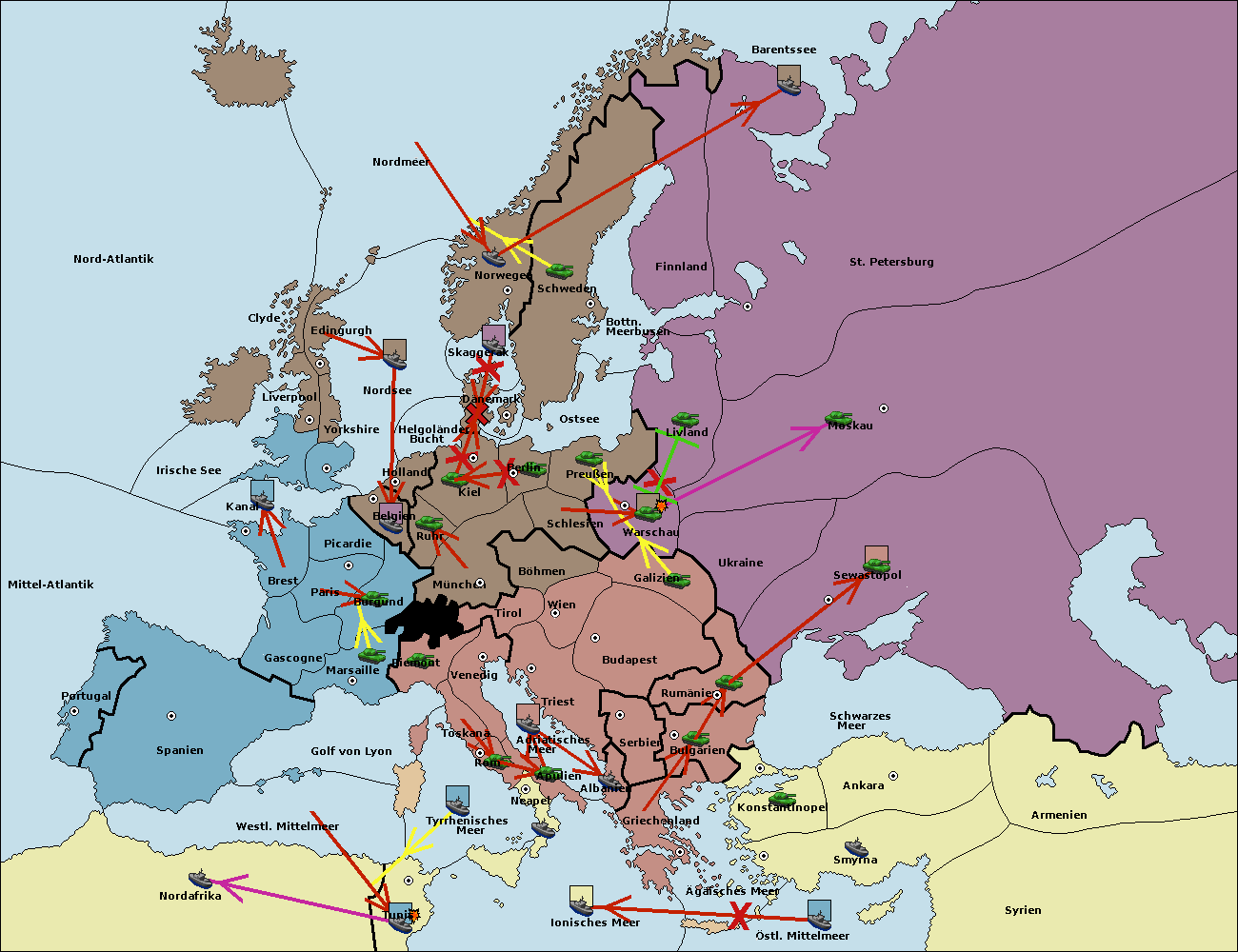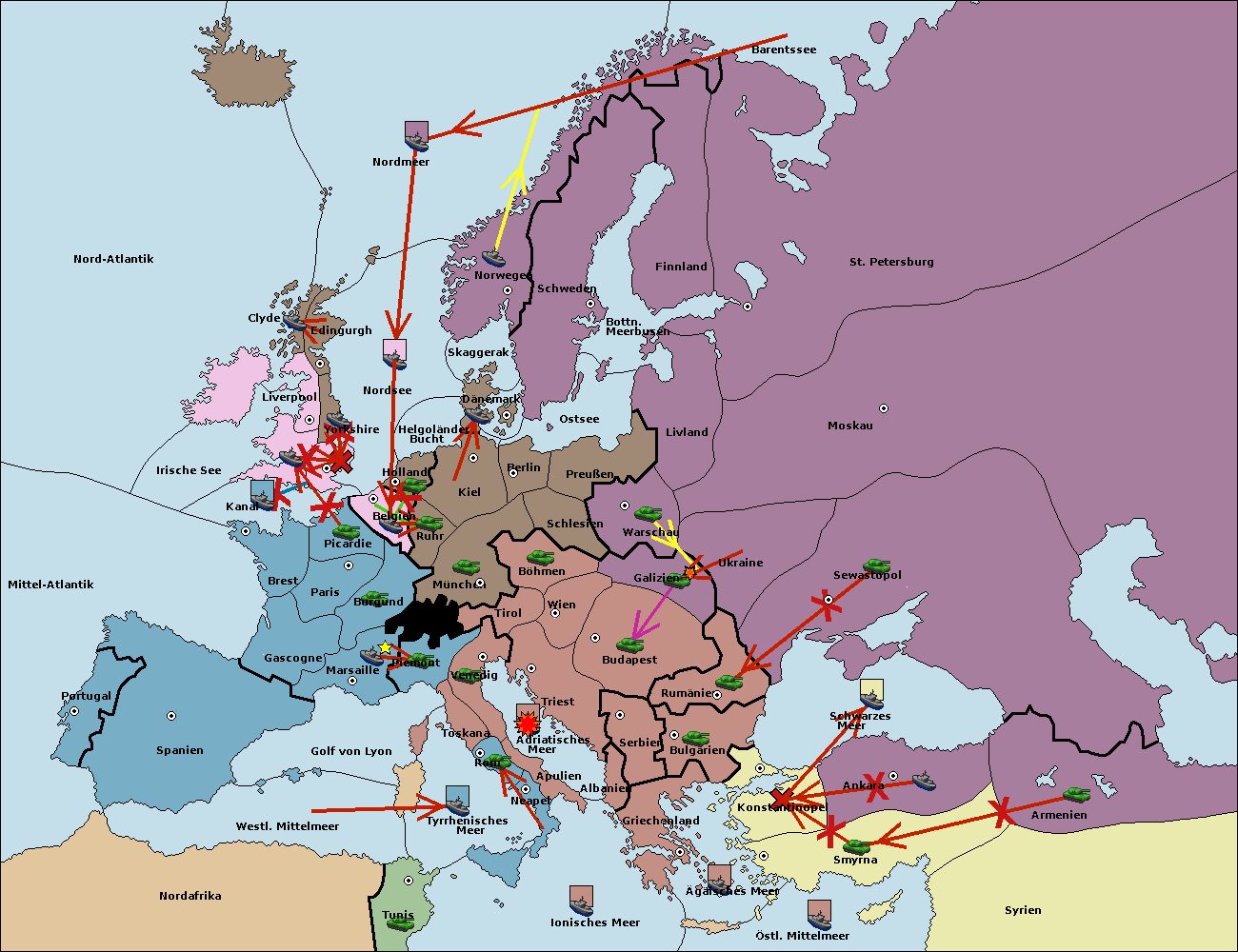 • Die Armee in Warschau support move nach Moskau von Sewastopol.