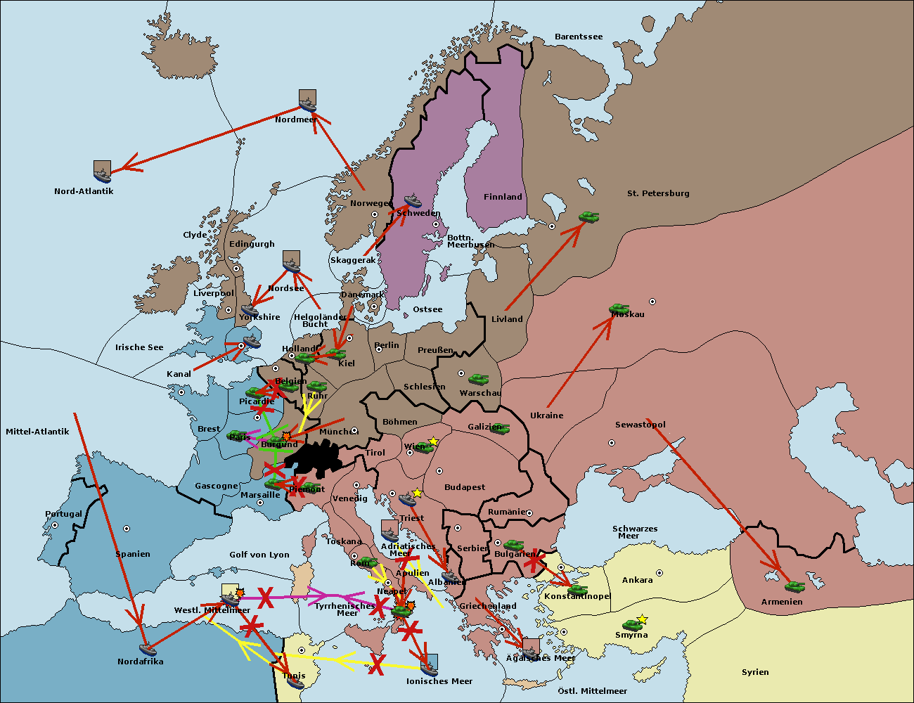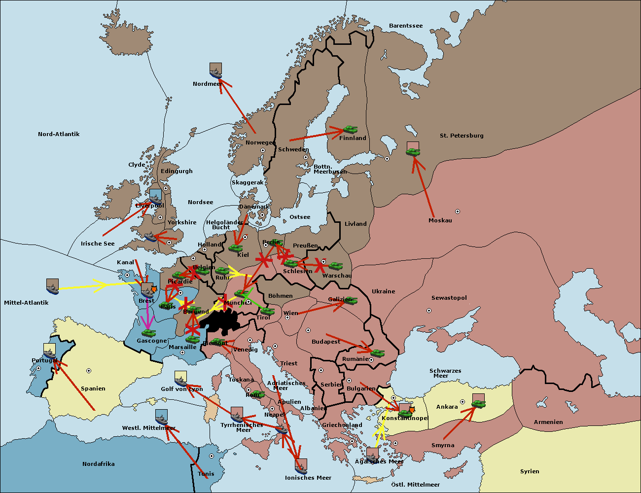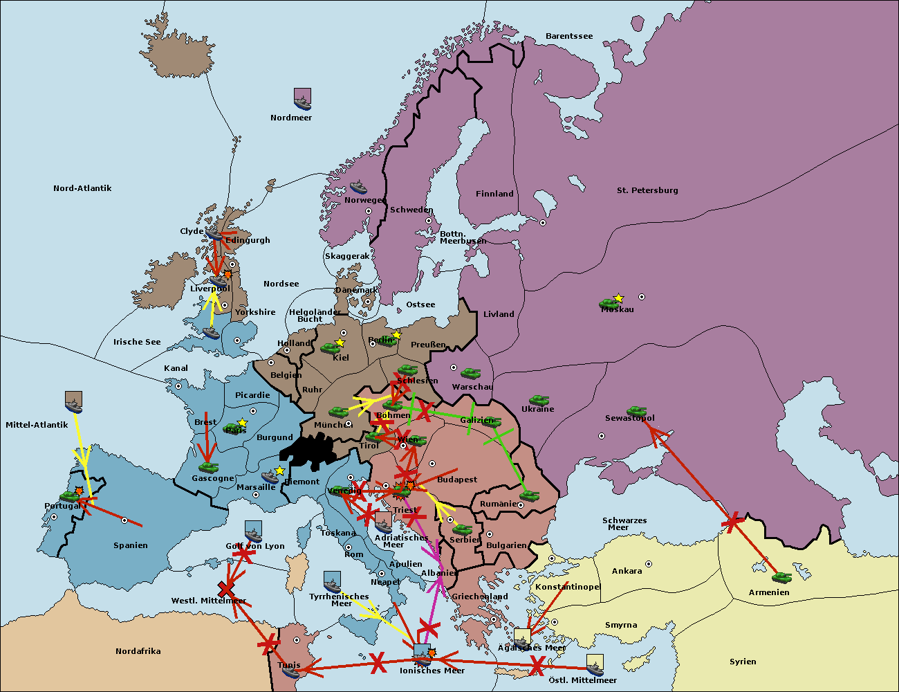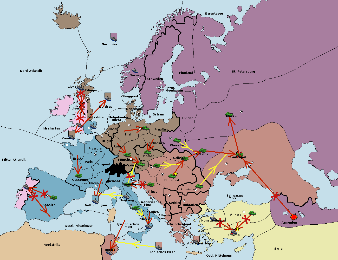 • Die Armee in Warschau support move nach Moskau von Sewastopol.