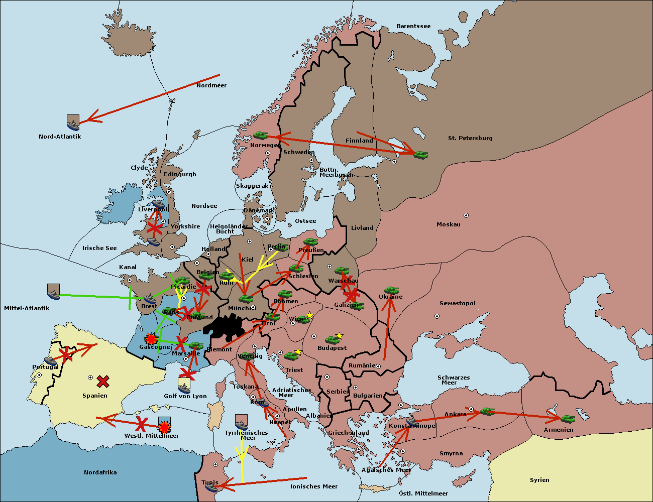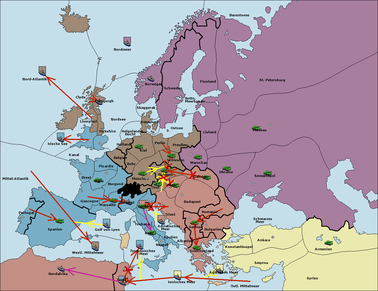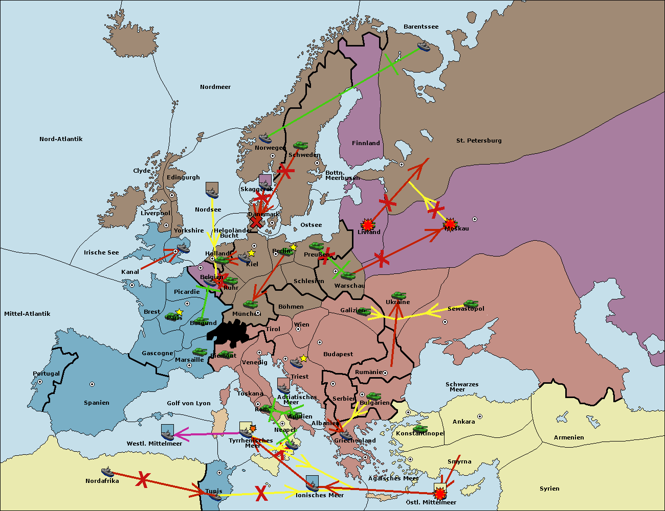 • Die Flotte in Spanien (Südküste) move nach westl. Mittelmeer.