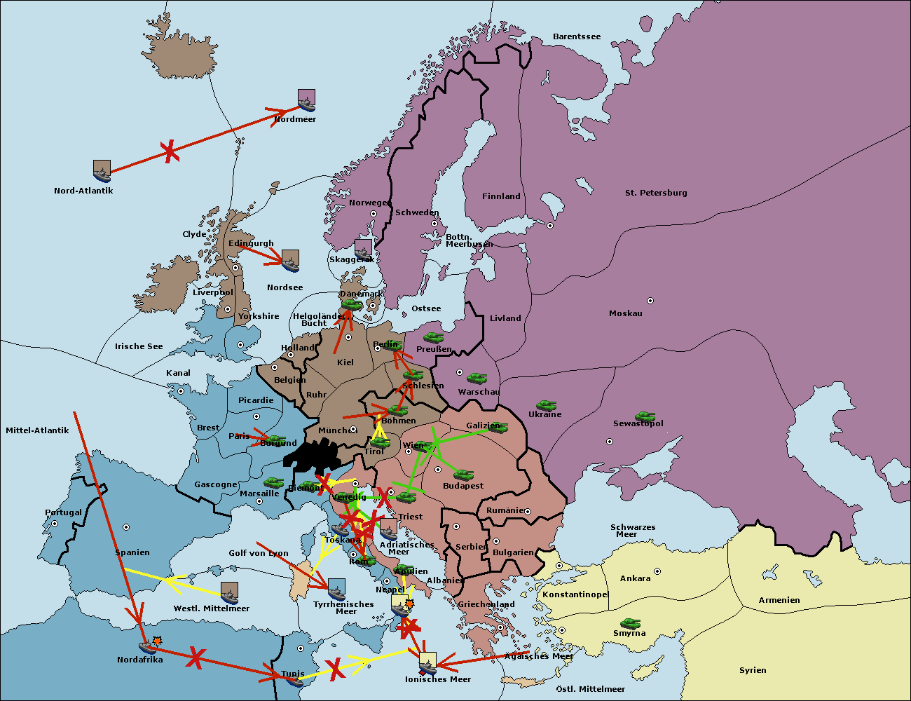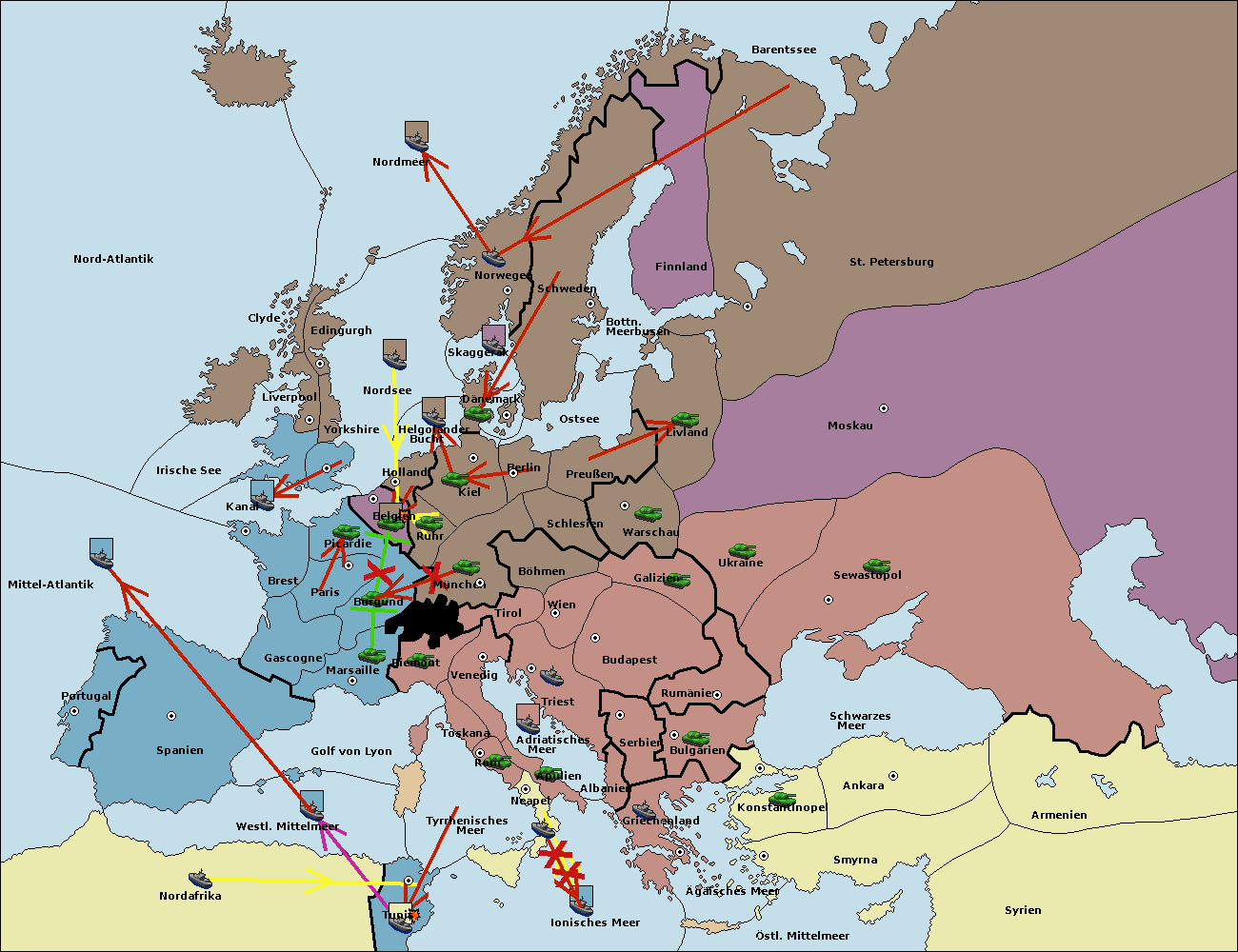• Die Armee in Ruhr support move nach München von Burgund. (gescheitert)