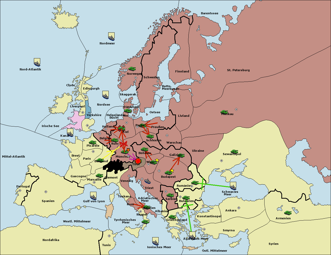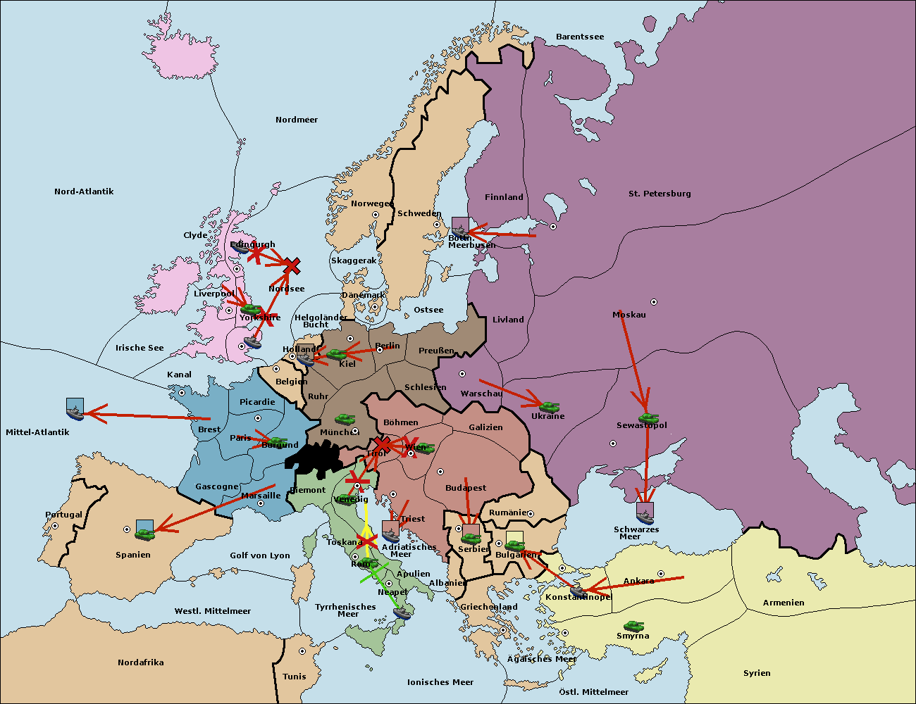 • Die Armee in Piemont support move nach Tirol von München. (gescheitert)